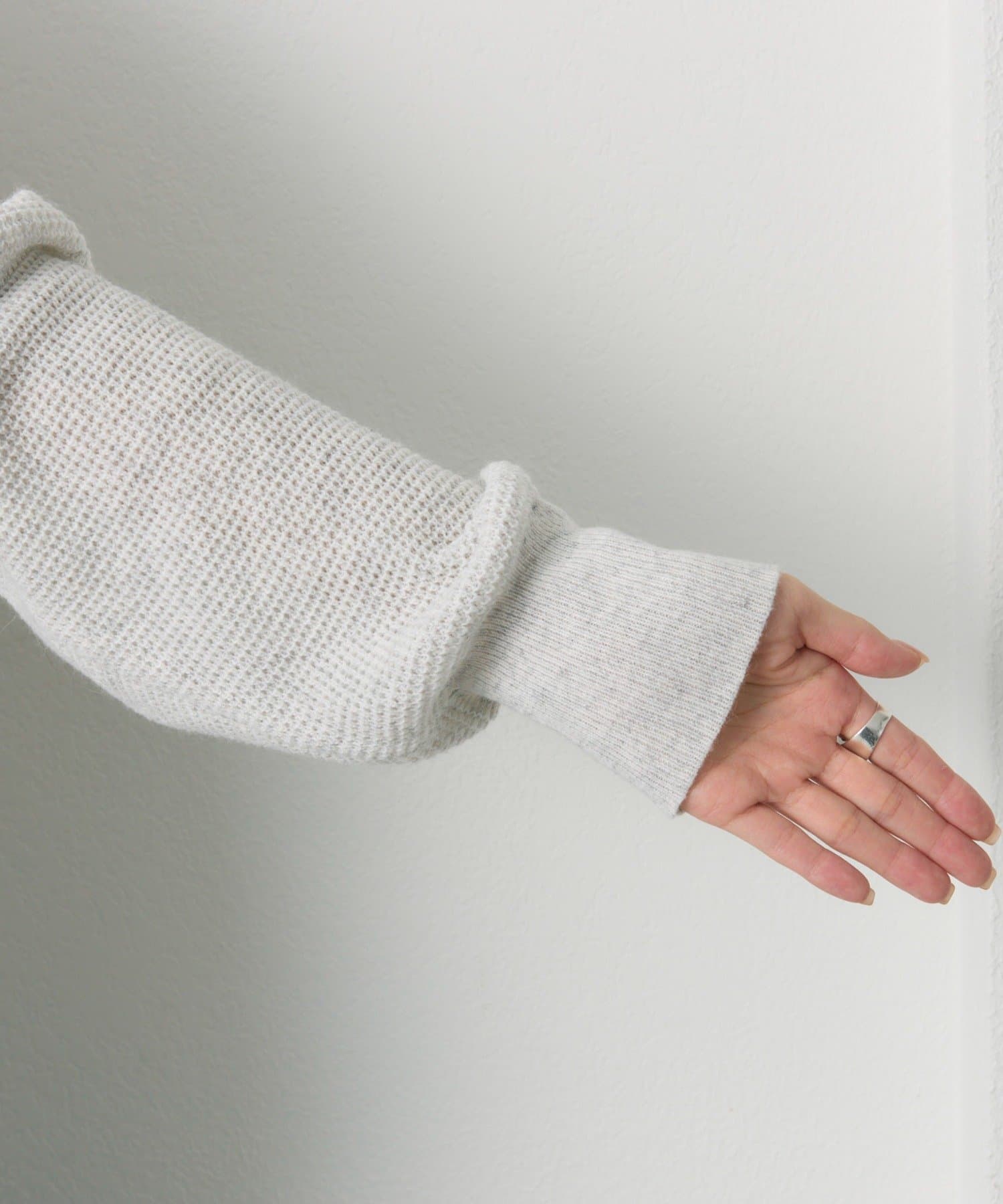 ワッフルのような凹凸感が出るように編まれたニット生地。