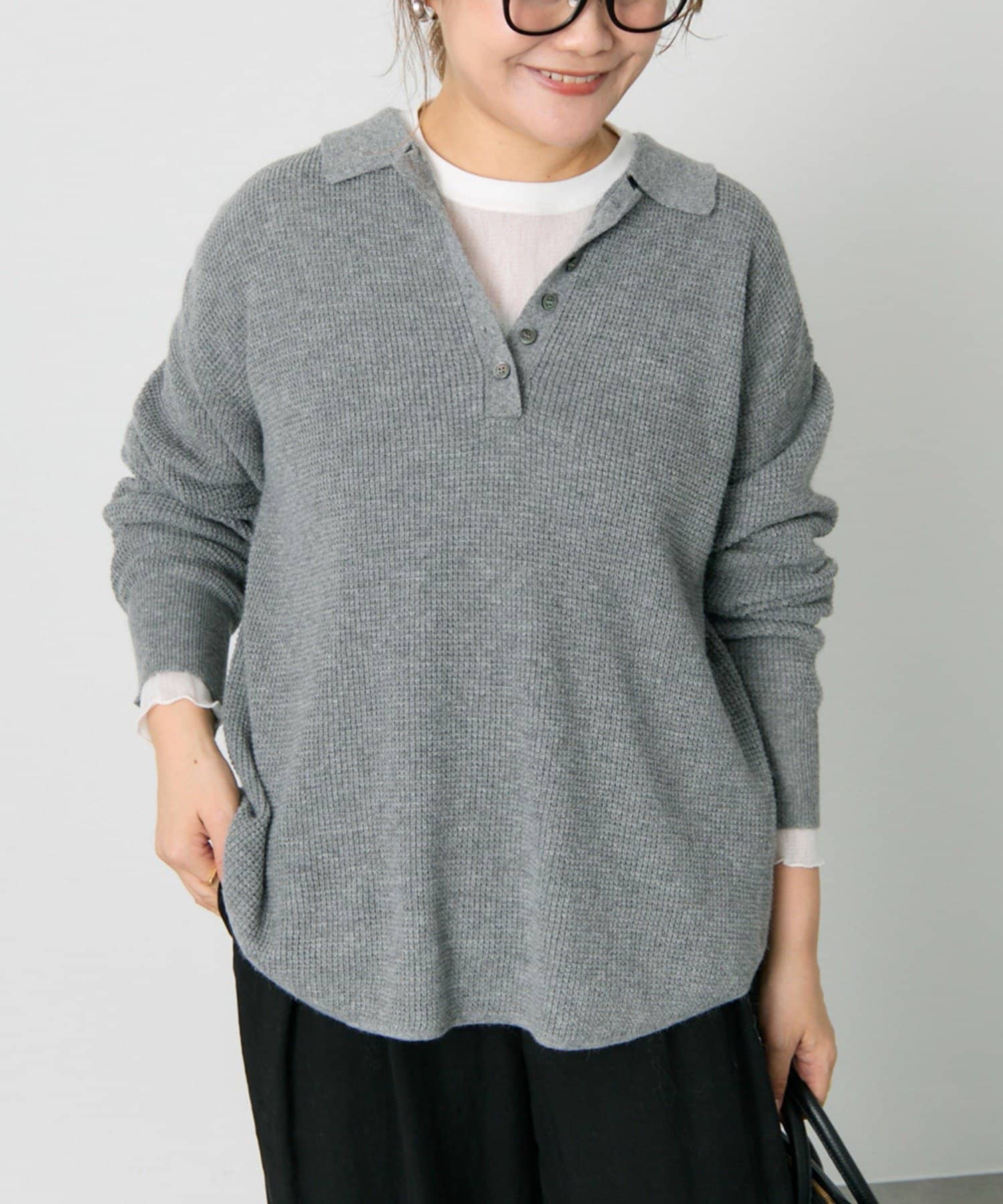 ◇シンプルなデザインで着回しが楽しめるワッフルニット◇