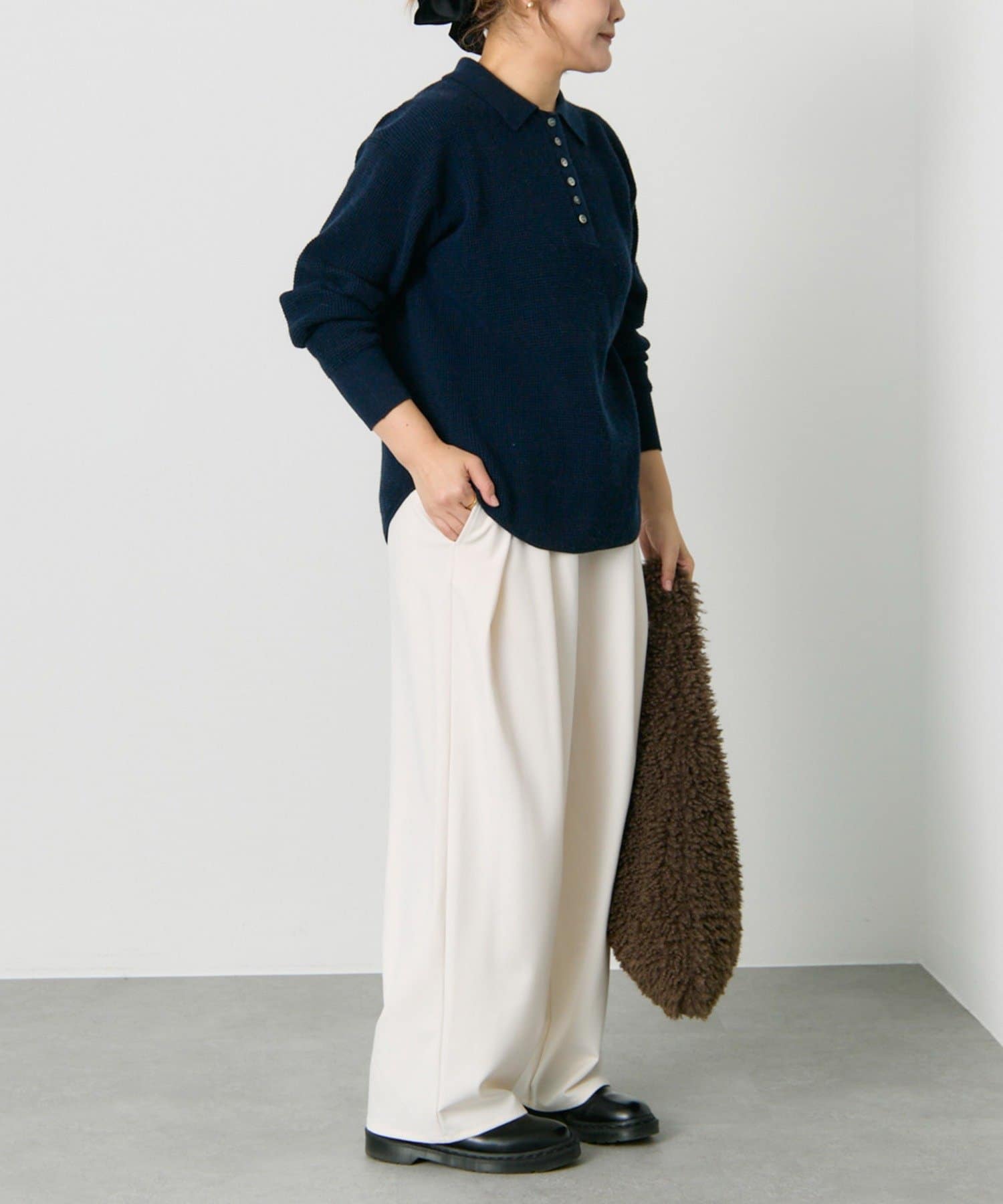 ポロ襟できちんと感があり上品なスタイルに仕上げてくれる大人のデイリースタイルにぴったりな1枚です。