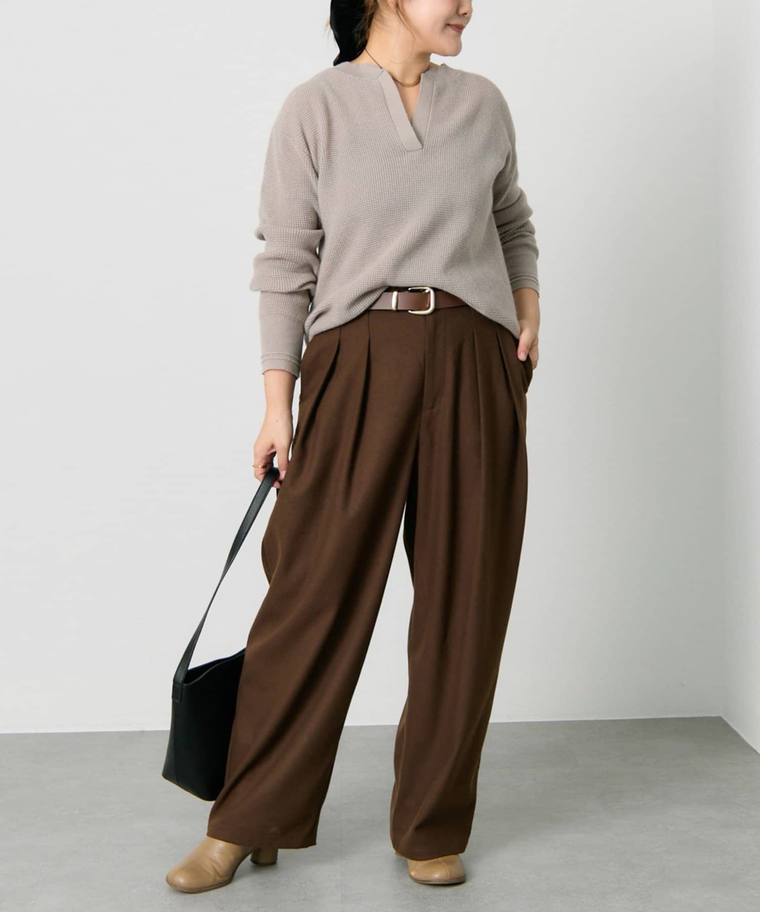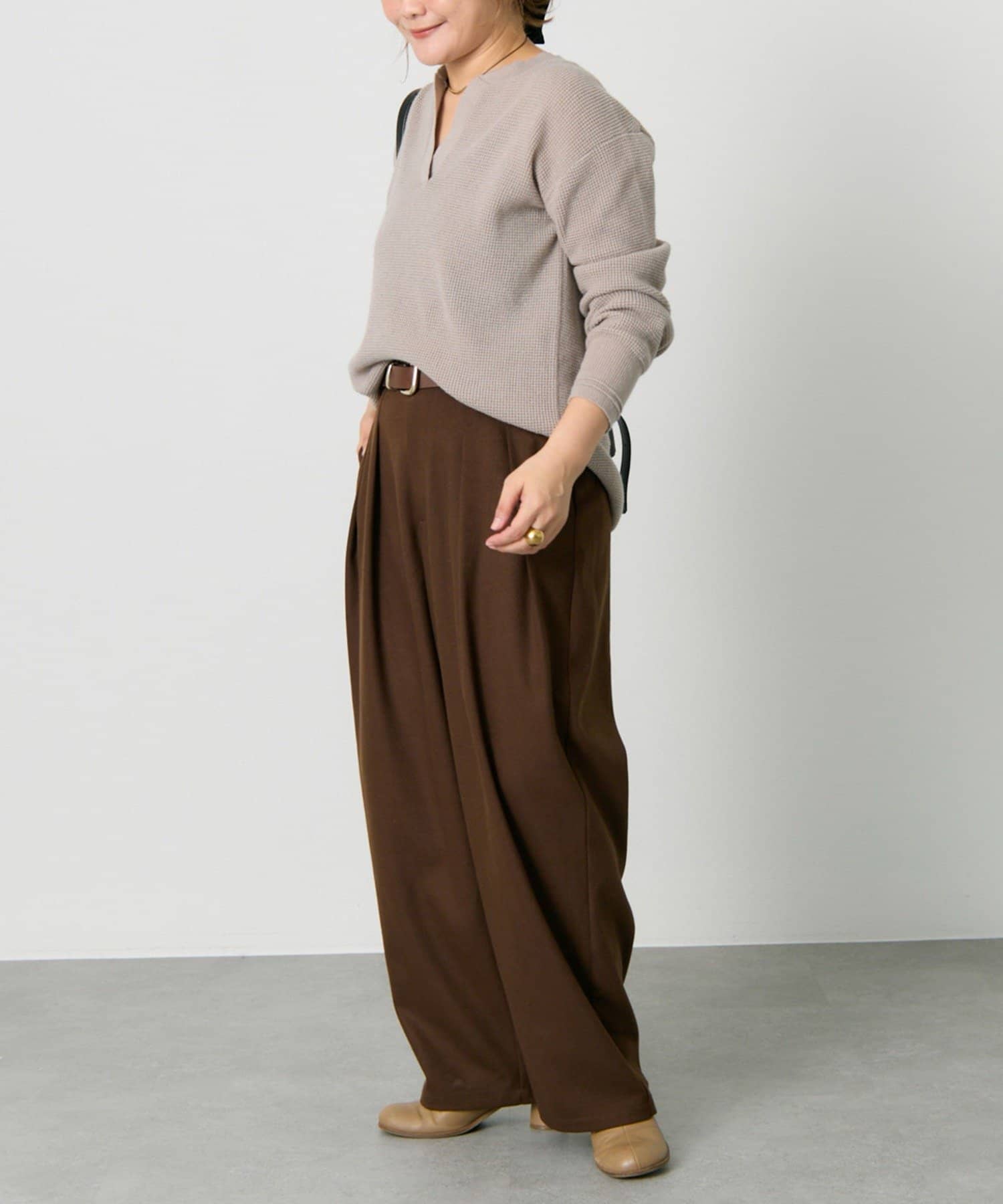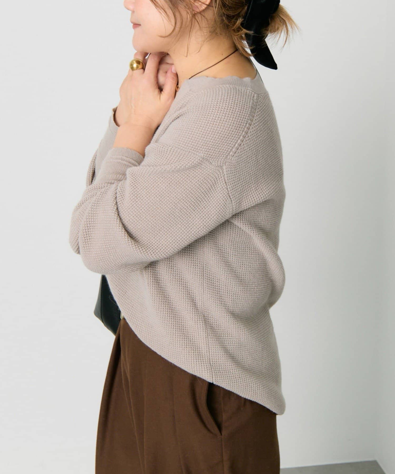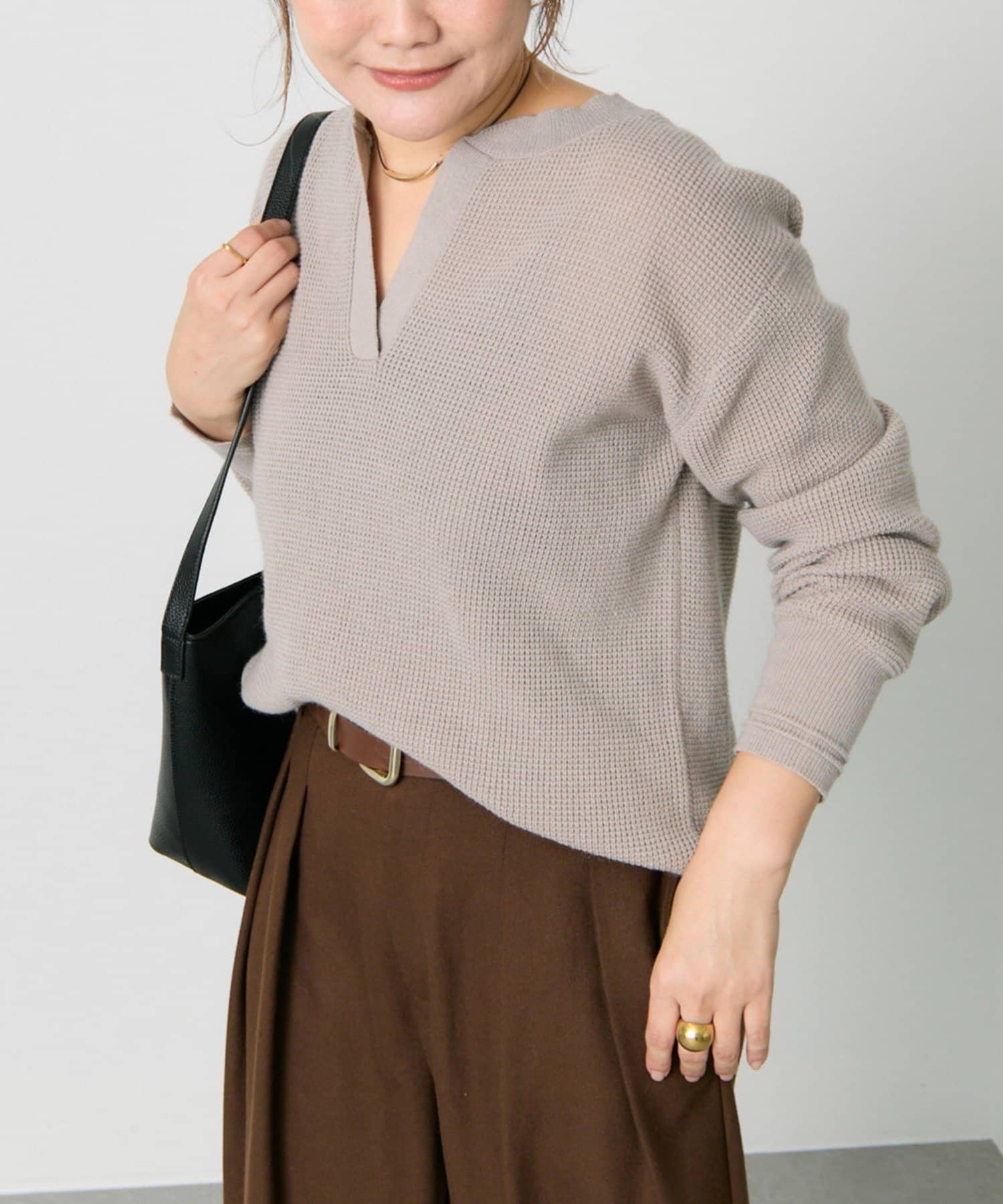 ◇表情豊かなワッフル編みで大人カジュアルを楽しめるニット◇