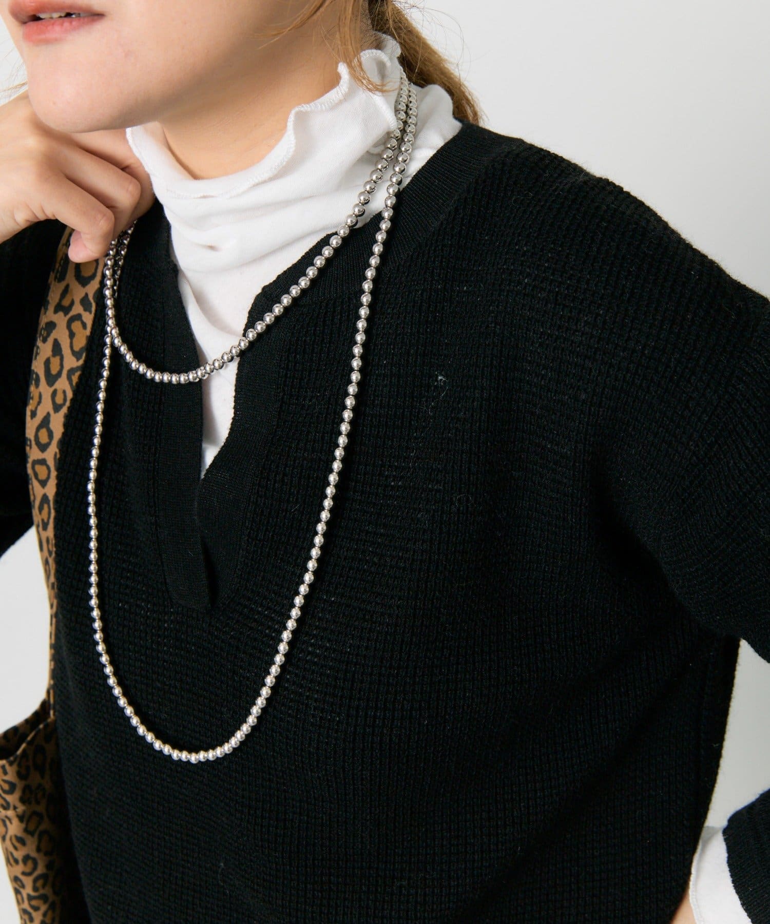 深めのV開きになるキーネックラインは、大人の上品な抜け感を演出。