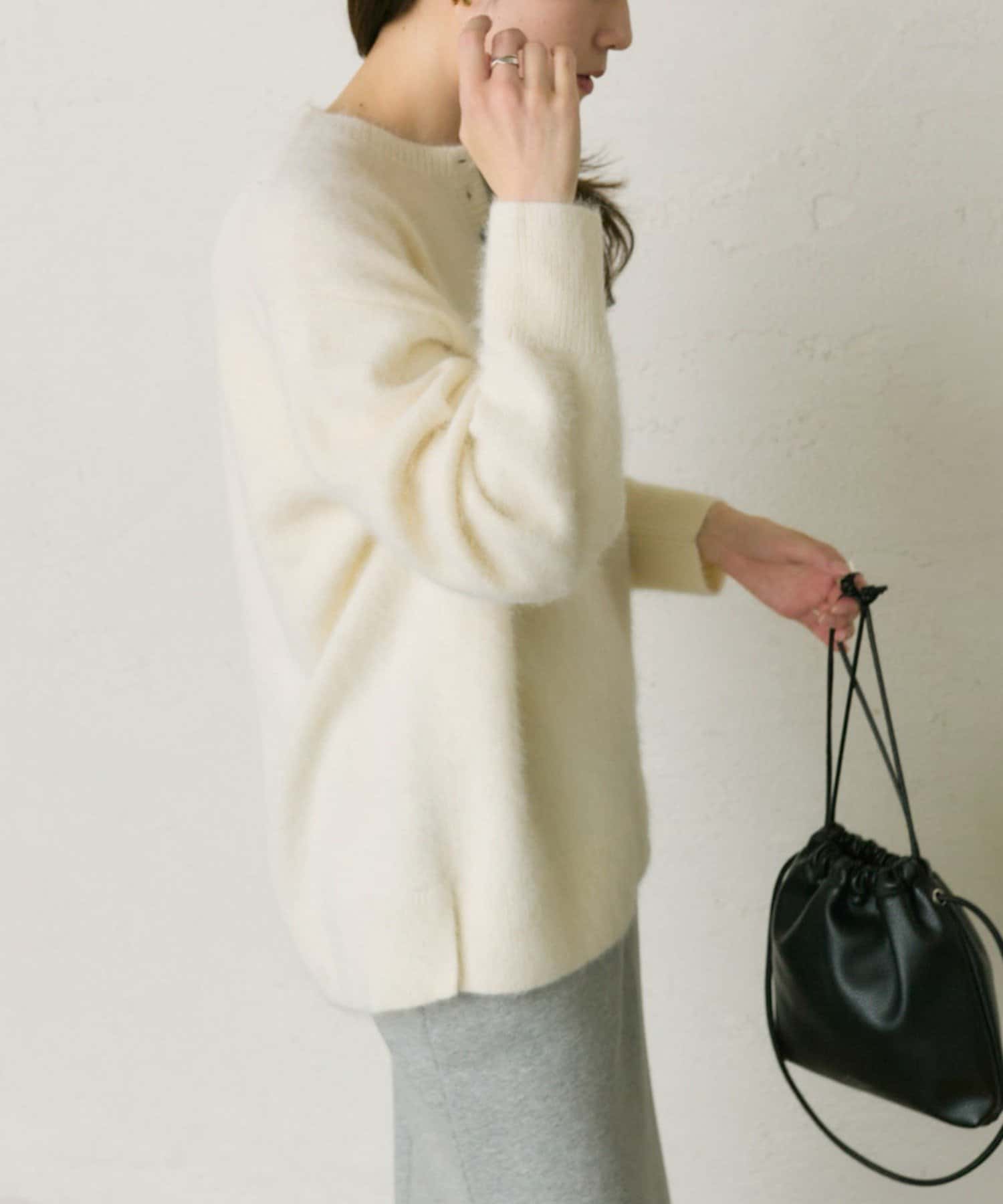 温かみある風合いが魅力的なFOXヤーンを取り入れた素材が、シーズンムードを高める1枚です。
