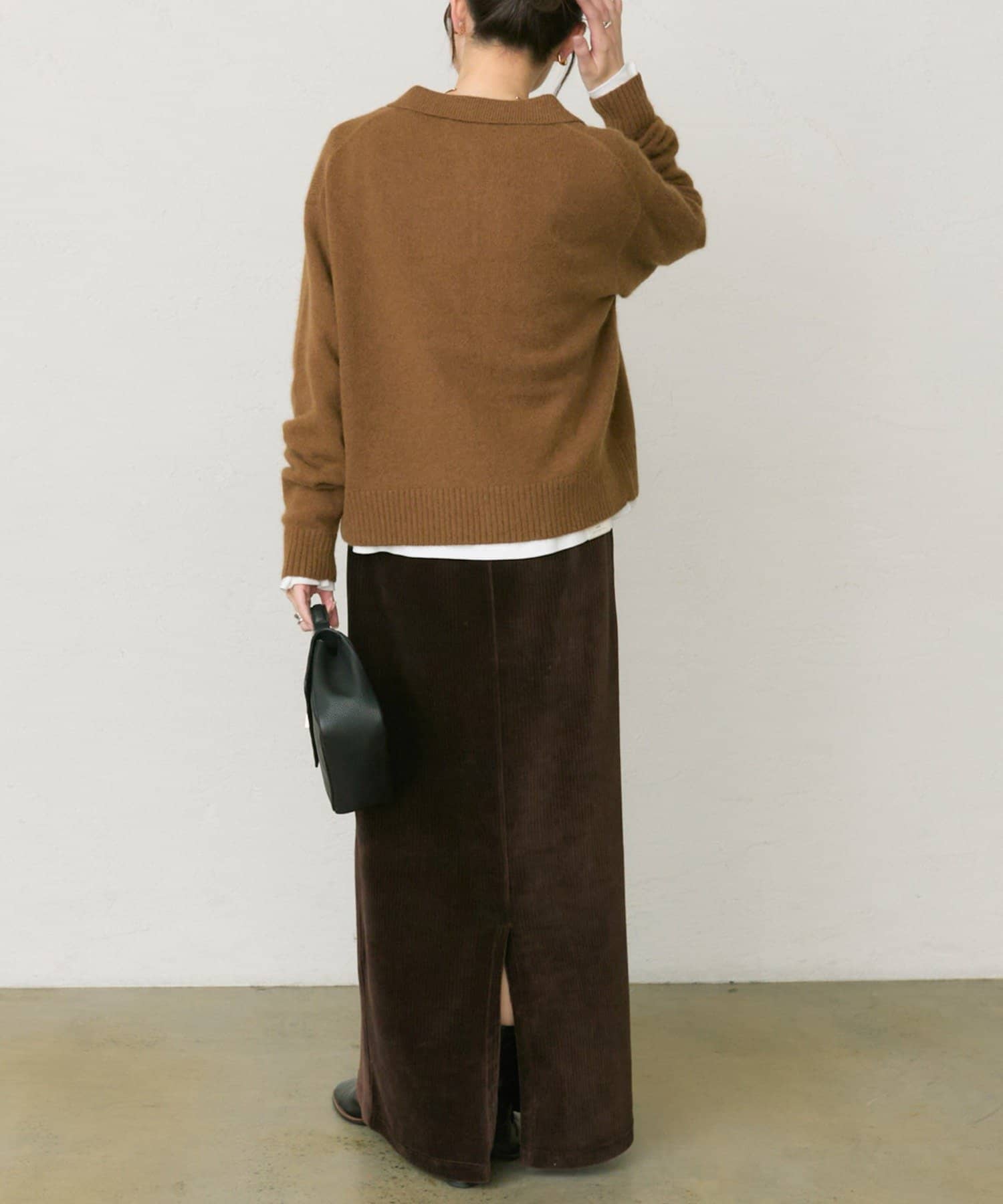 ニットスカートや起毛感あるのボトムとのスタイリングで、シーズンムード溢れる着こなしがオススメ。