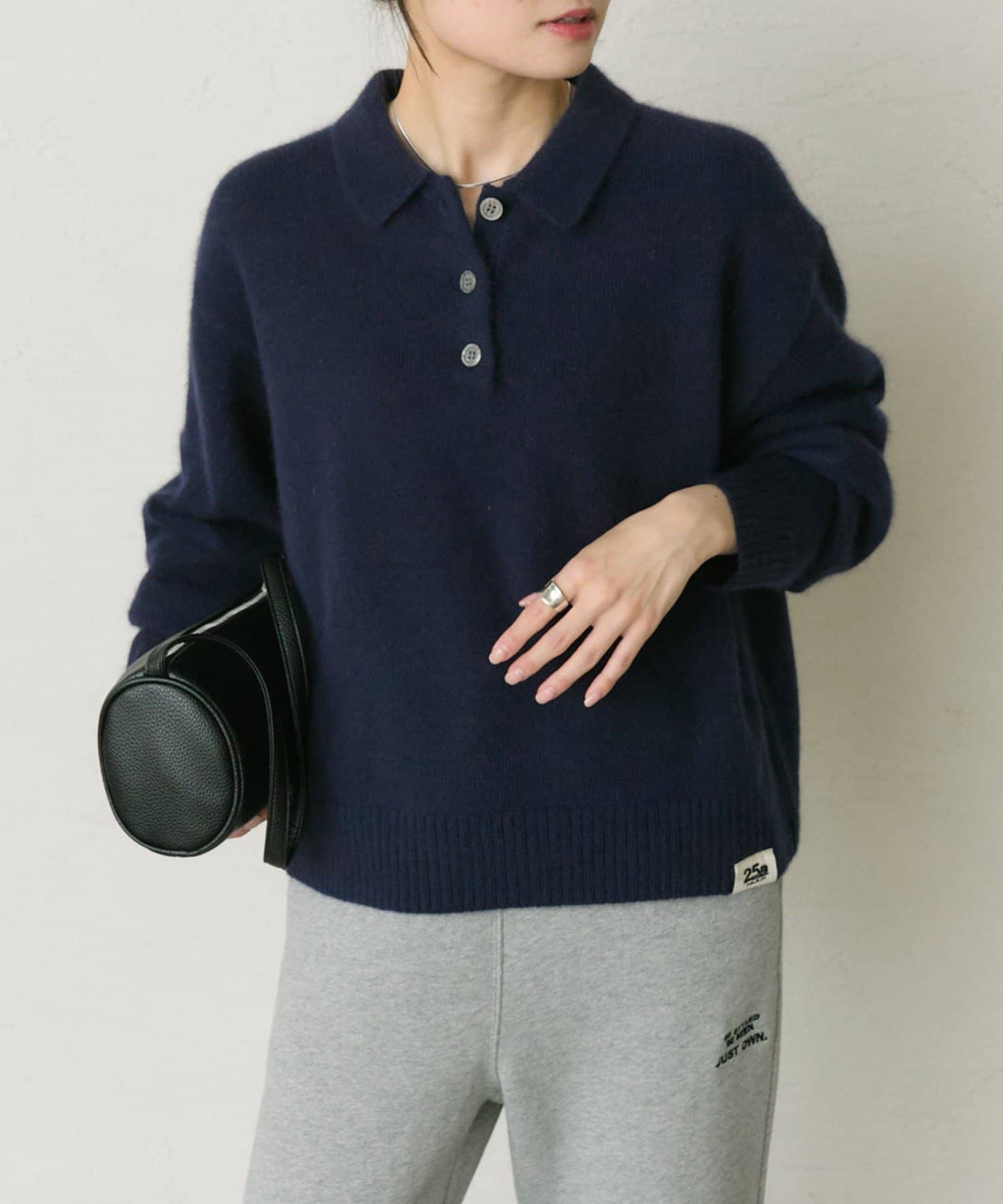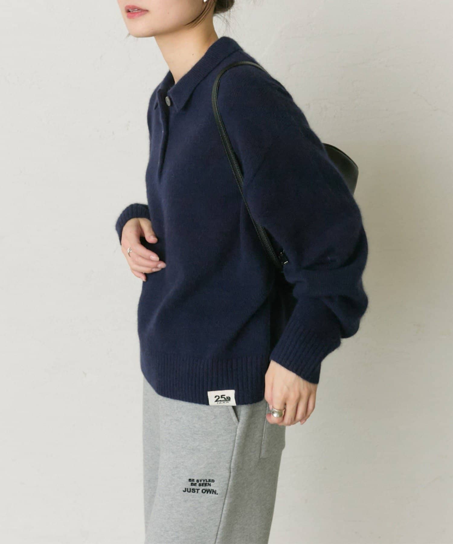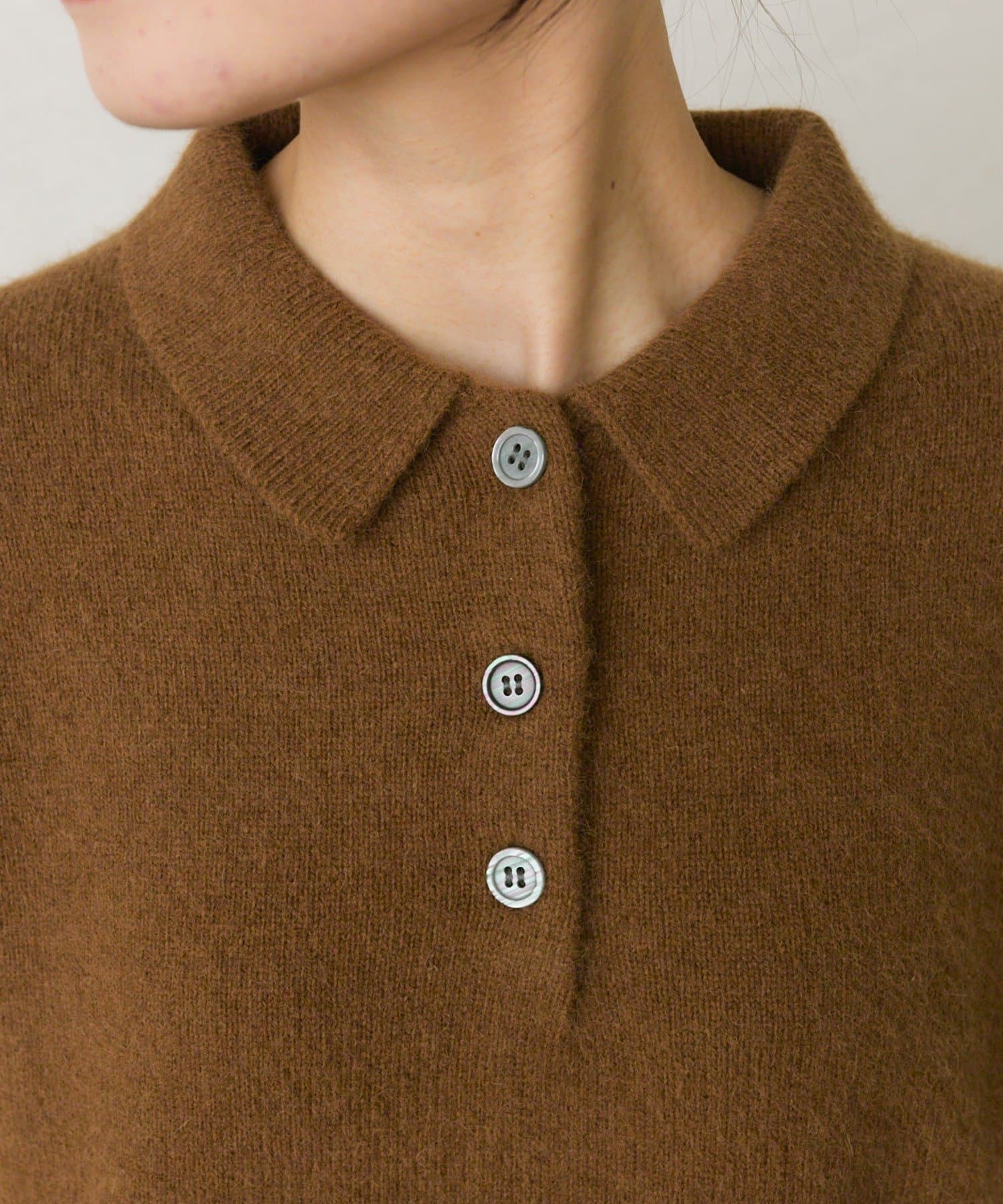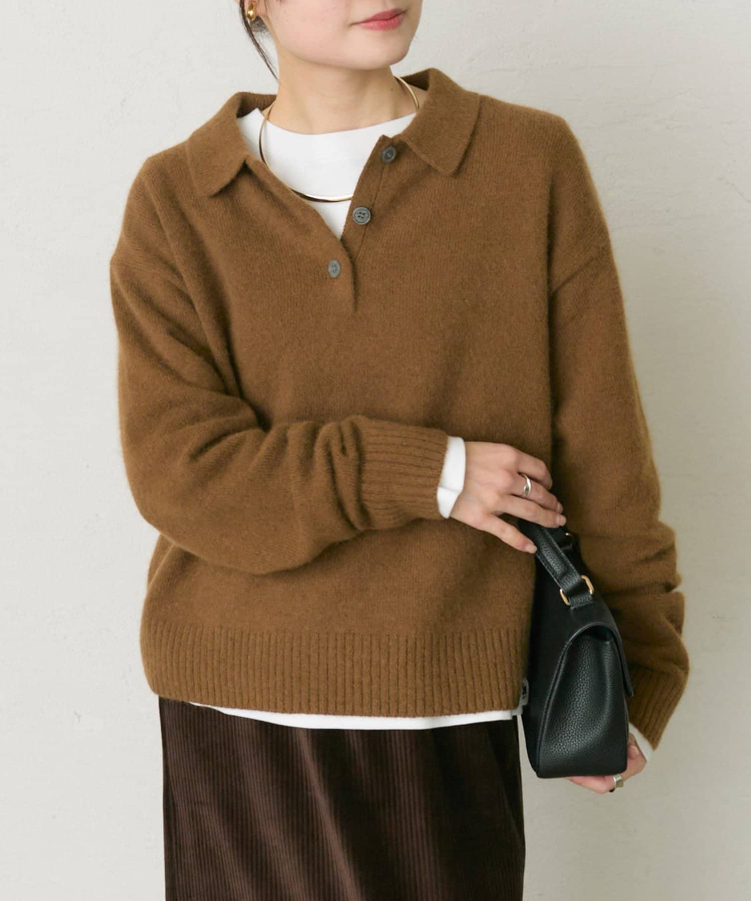 ◇上品に着られるマニッシュなふんわりポロニット◇