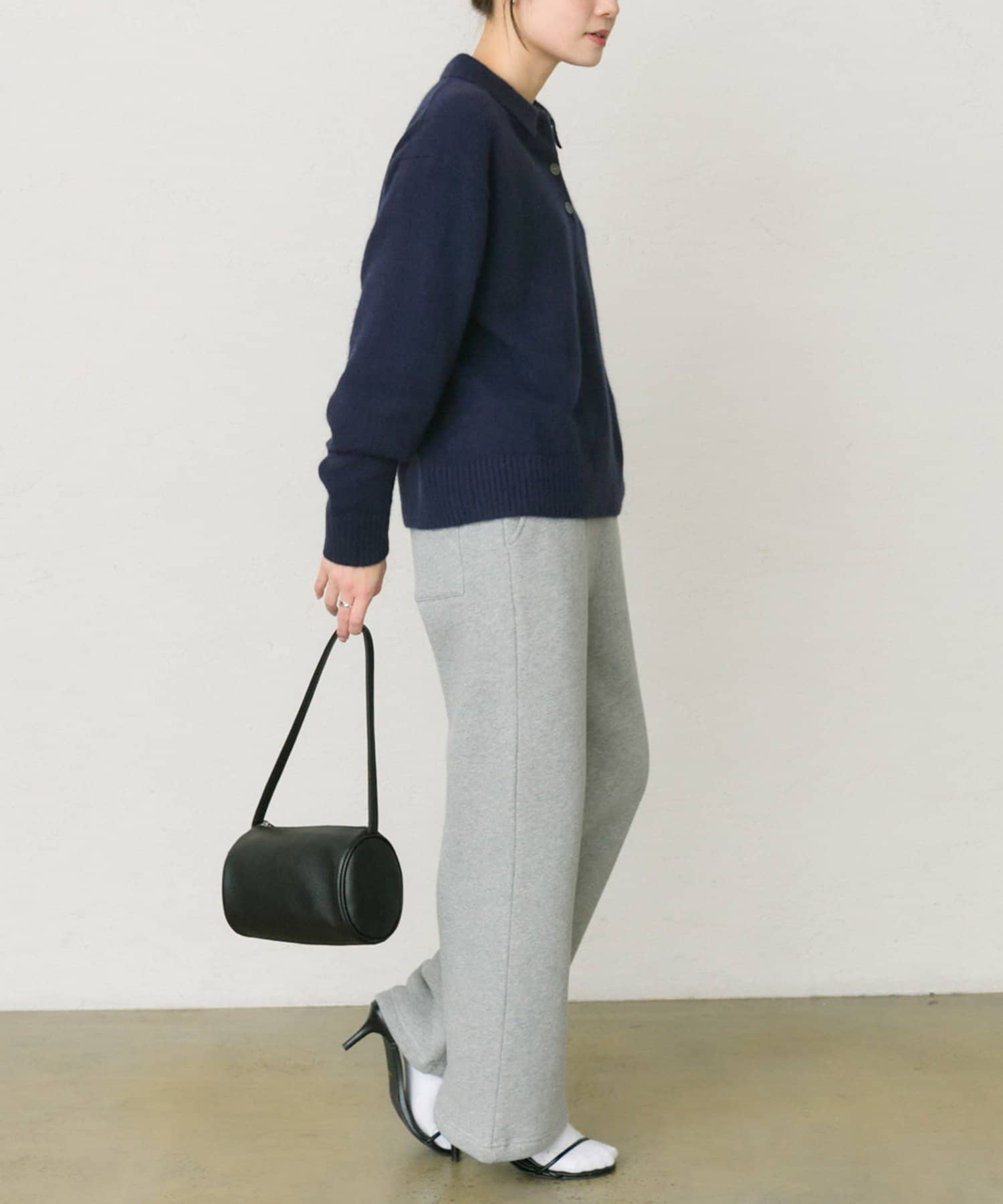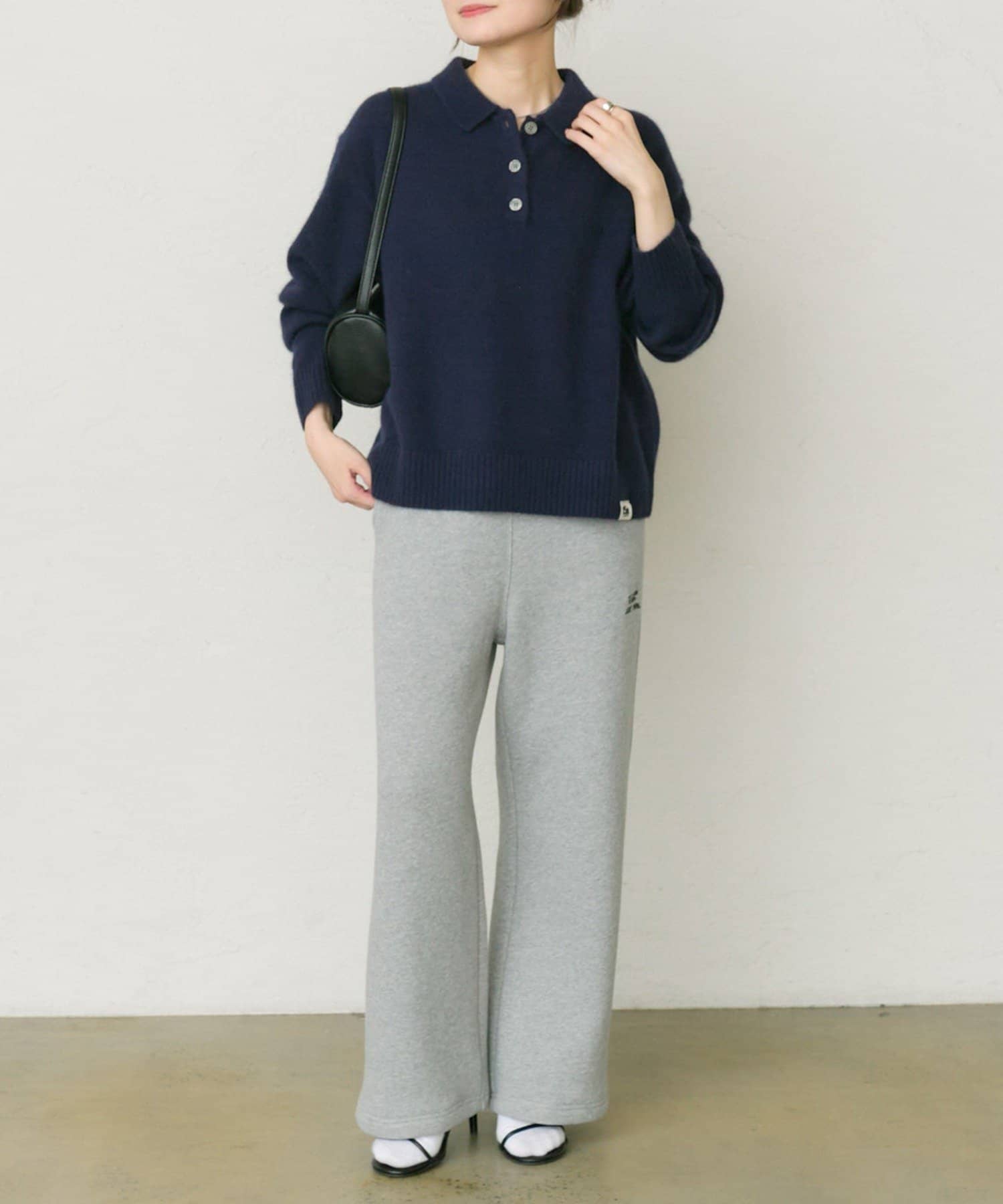 ラフなスウェットパンツ合わせも清潔感のあるワンマイルコーデに仕上がります。​​​​​​​
