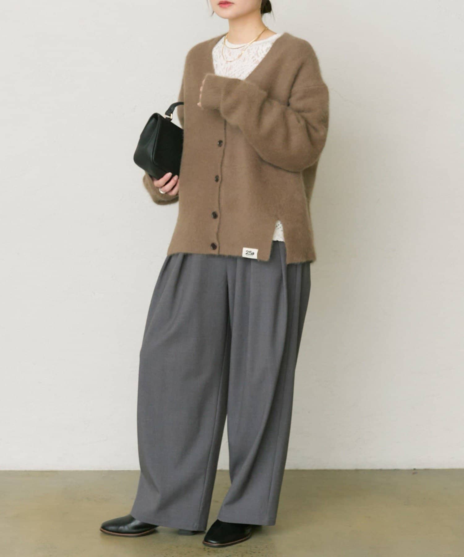 秋が深まった時期から春先まで長くお使いいただけるシンプルなカーディガン。