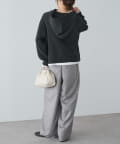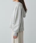 ネックラインは直線になっているので、詰まって重く見えがちなパーカーの首元にゆとりができ、抜け感が出てすっきり見え。