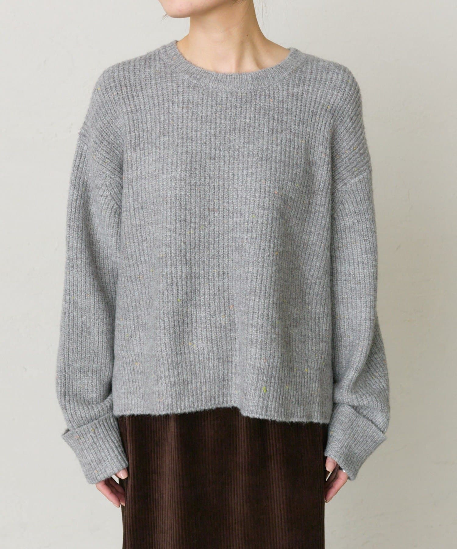 暖かみがあるネップで表情豊かなクルーネックニット。