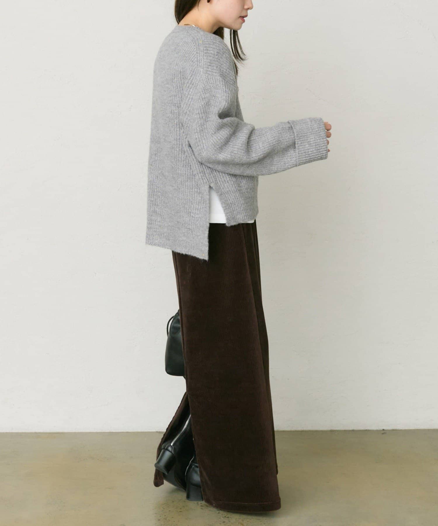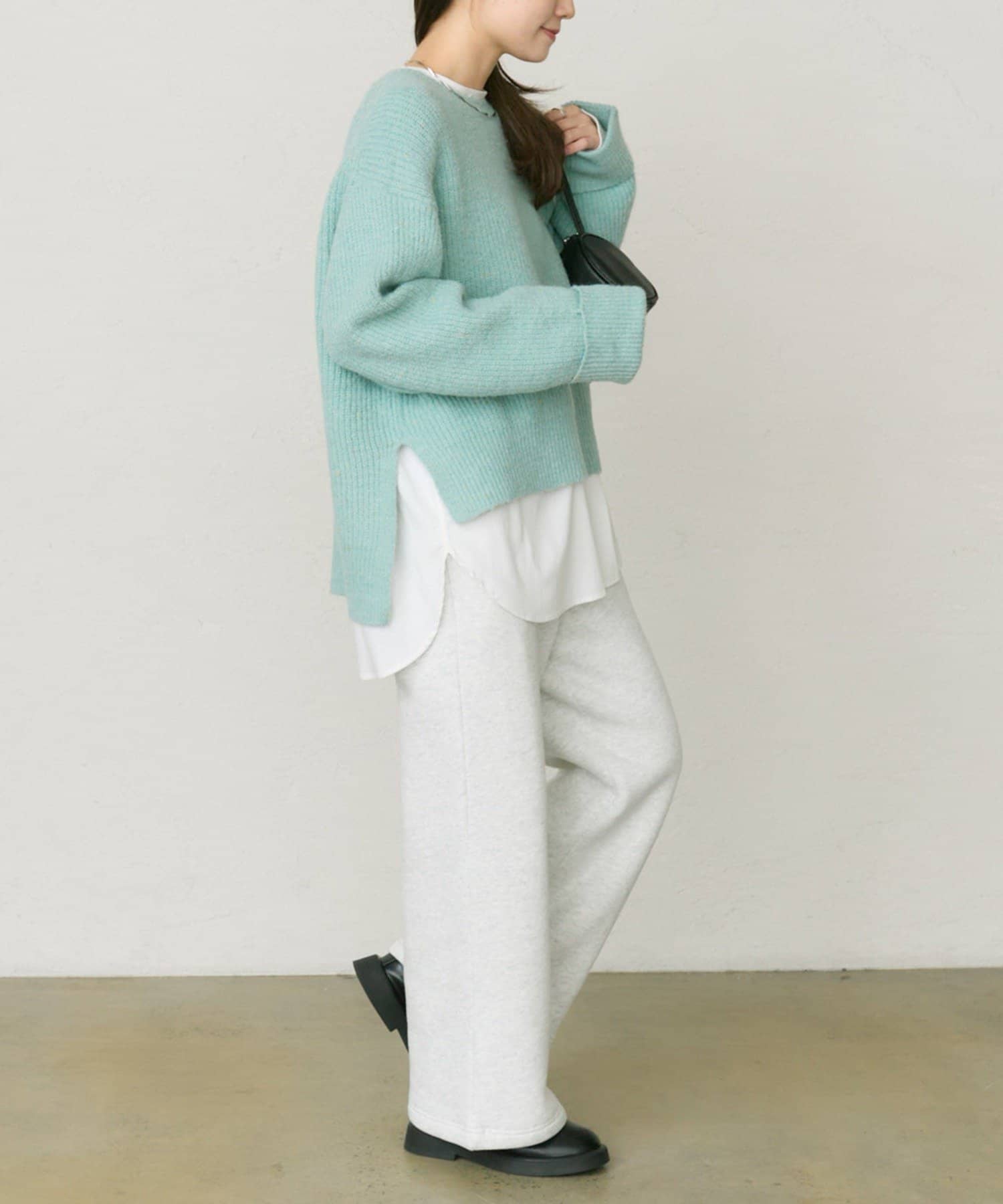 シンプルなデザインのプルオーバーニットは、様々なスタイリングに対応し着回しが楽しめるアイテムです。
