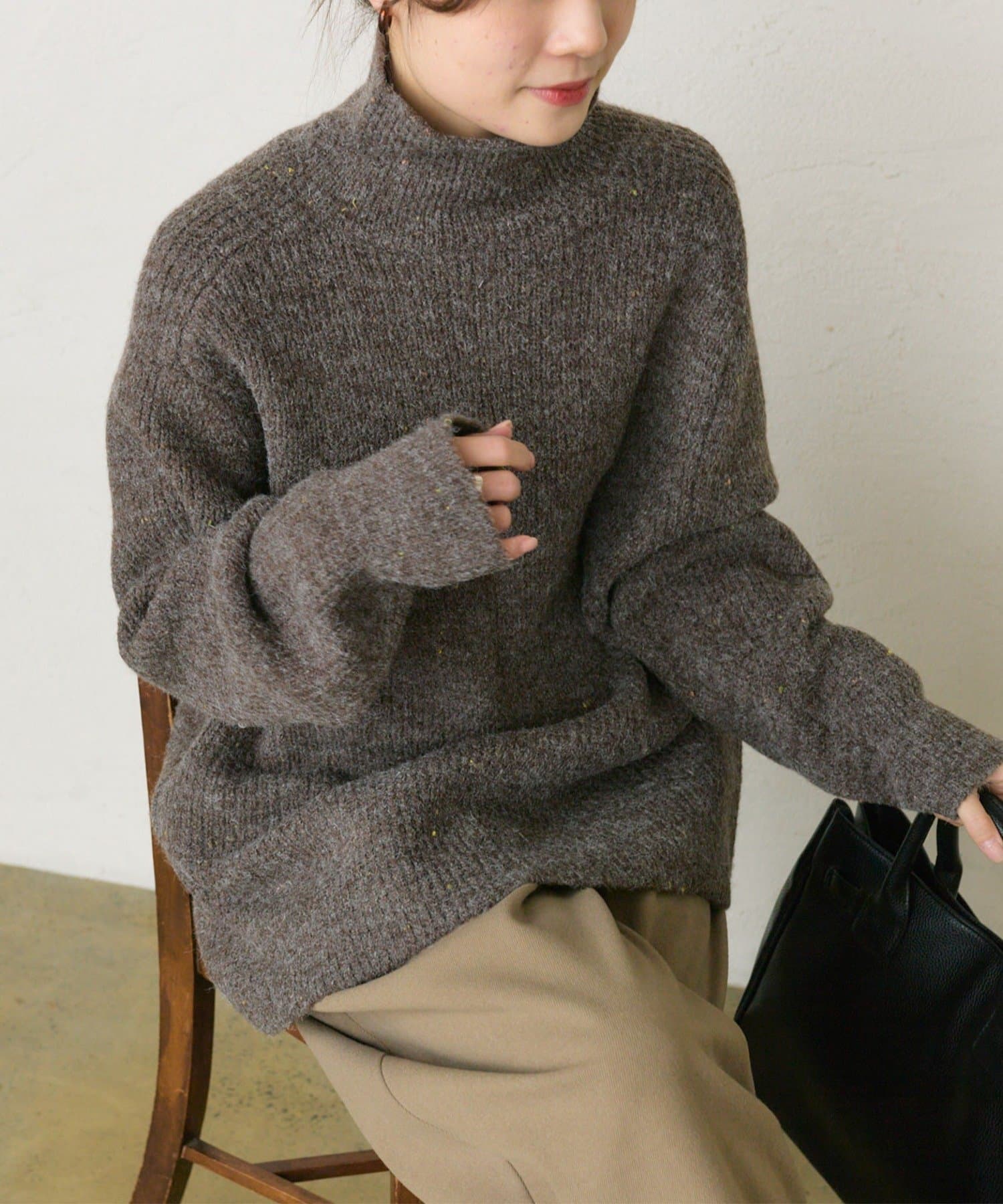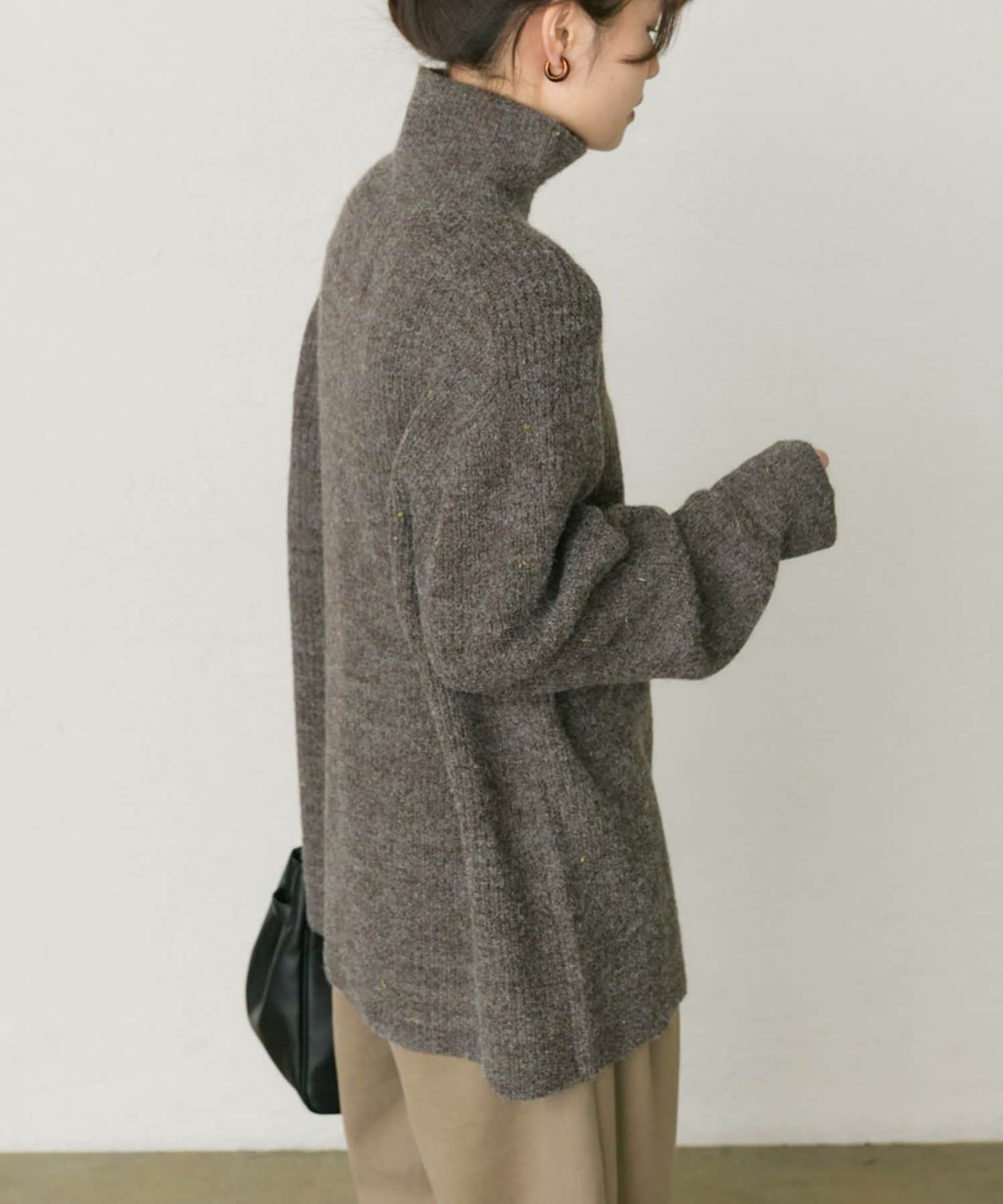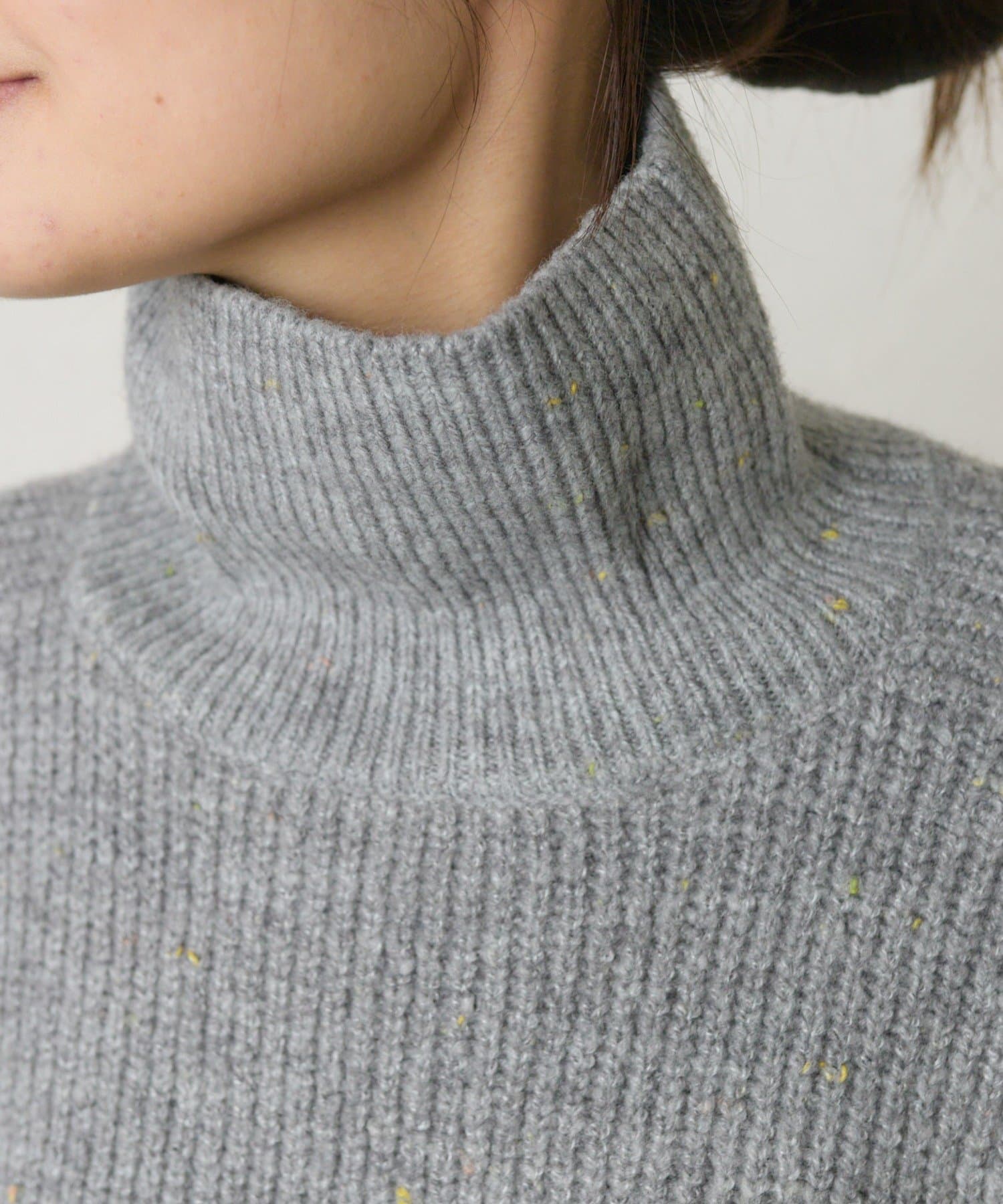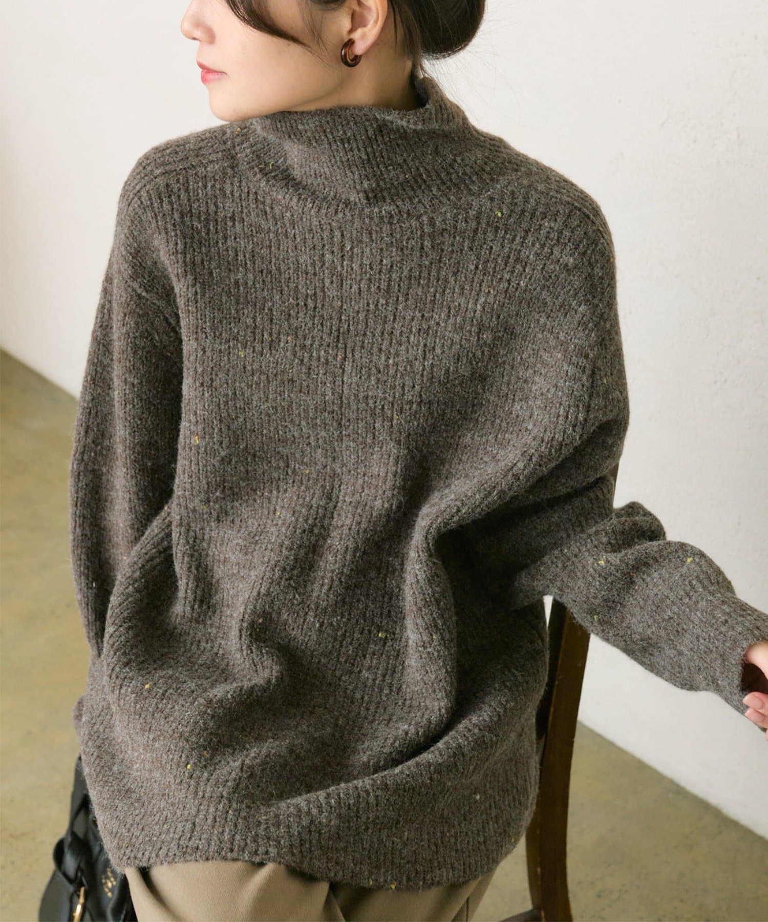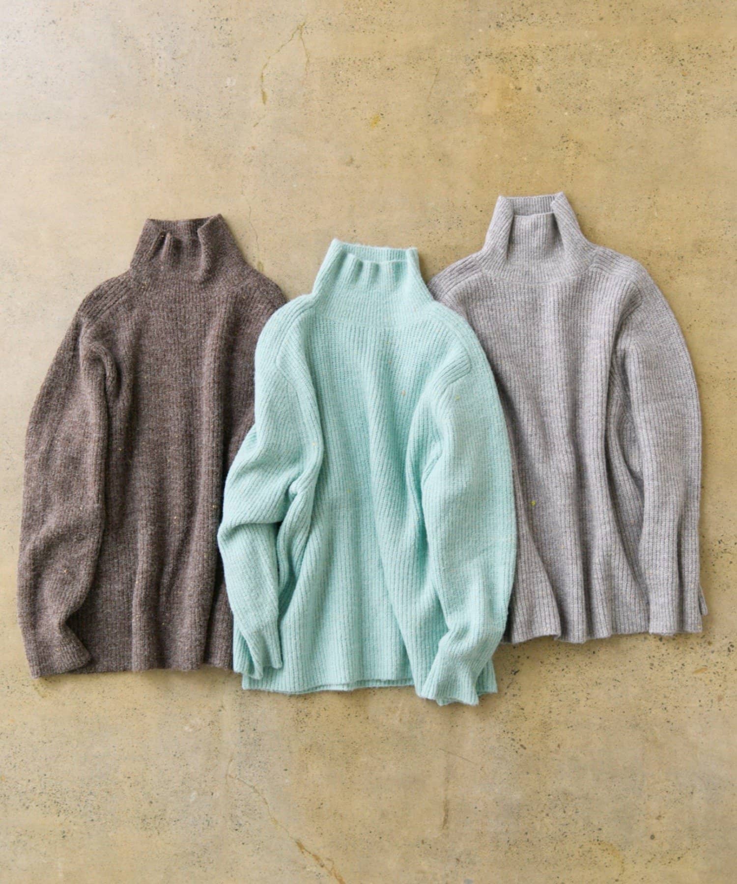 多色カラーのネップが程よくベースカラーに映えるハイネックニットプルオーバー。