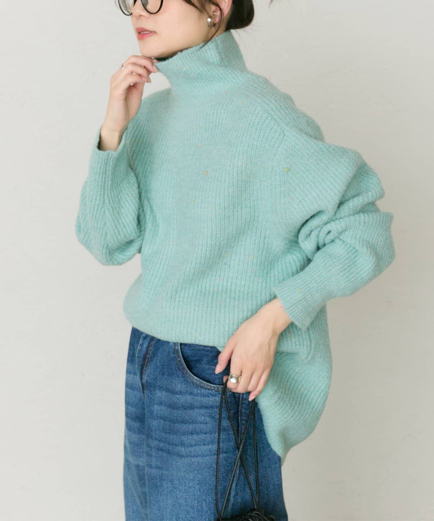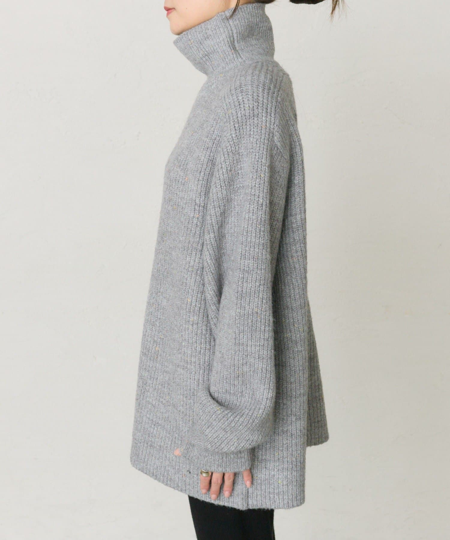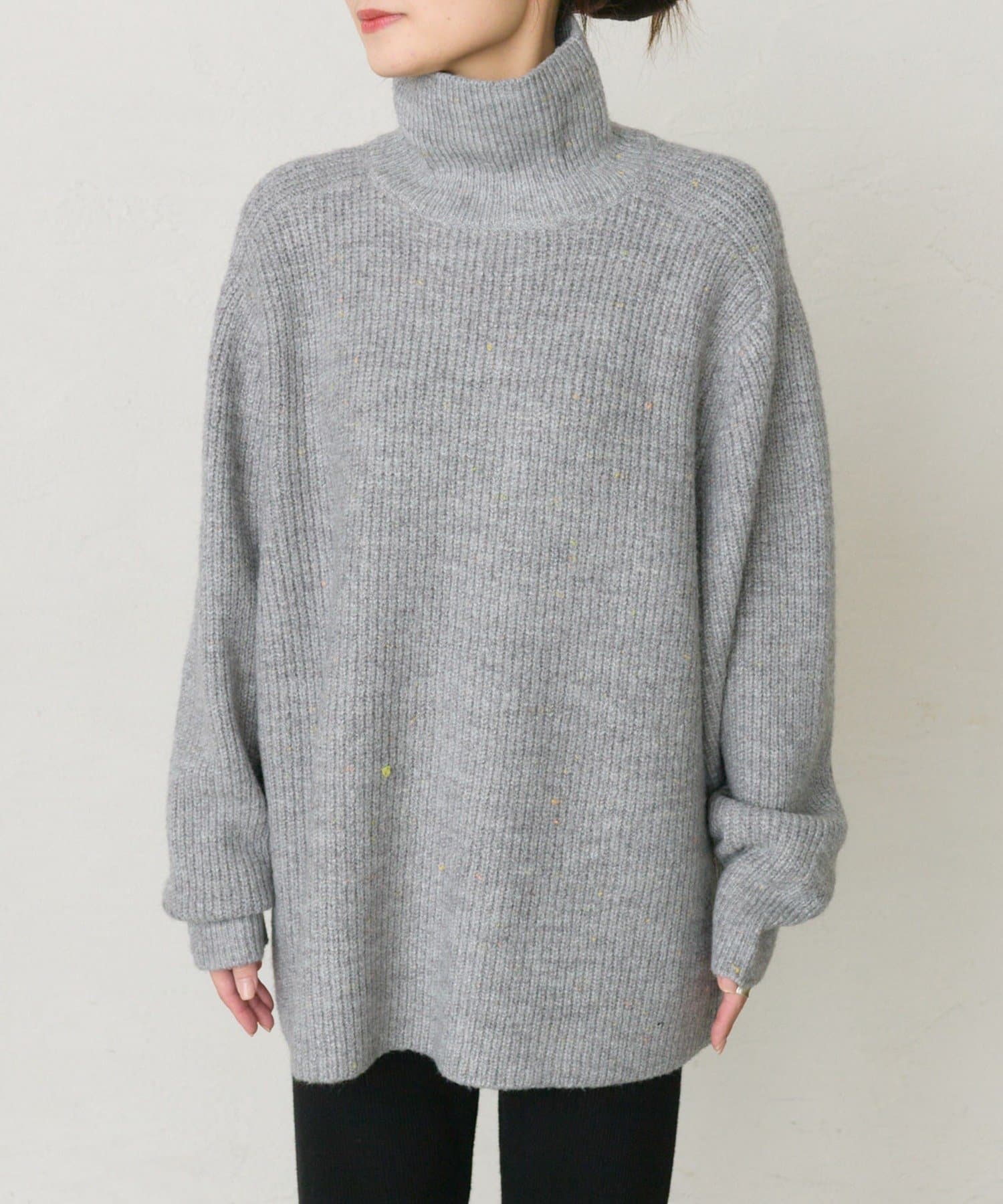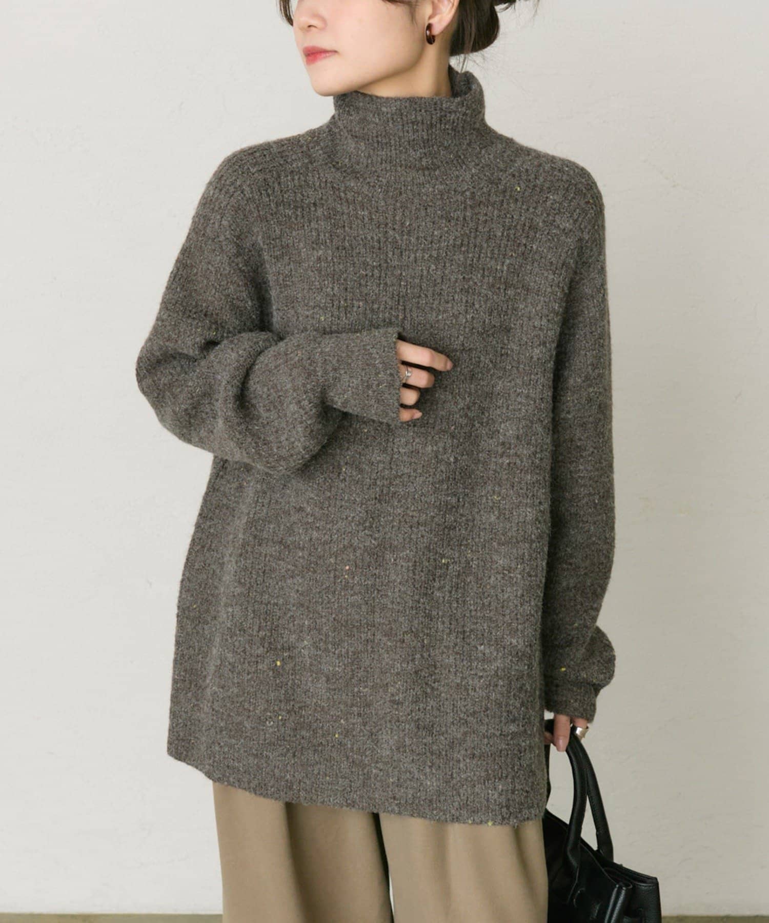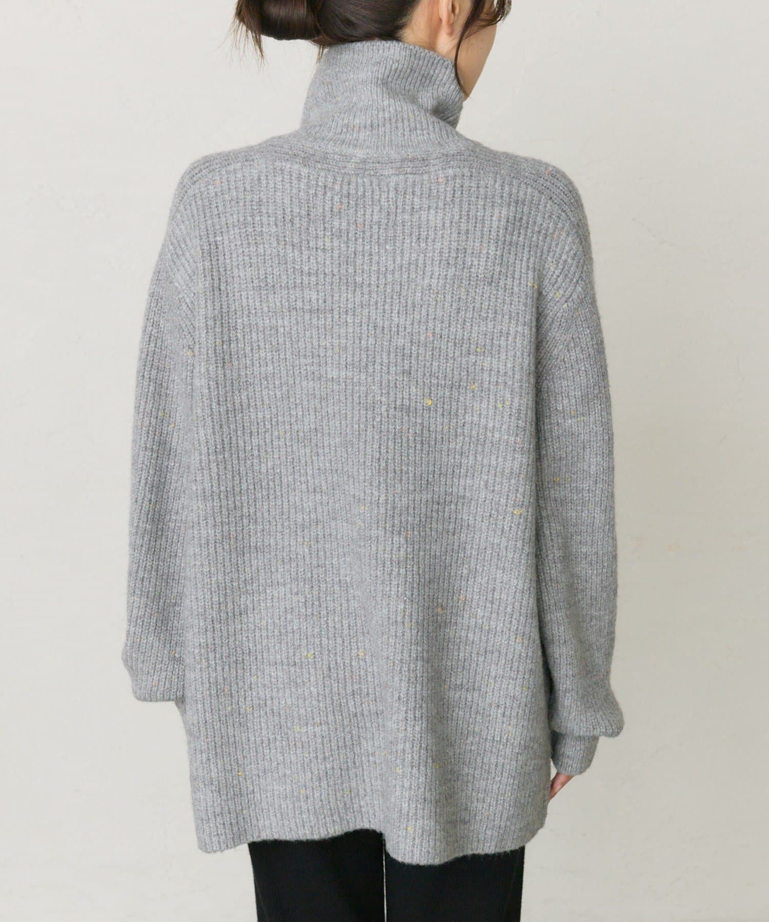 多色カラーのネップが程よくベースカラーに映えるハイネックニットプルオーバー。