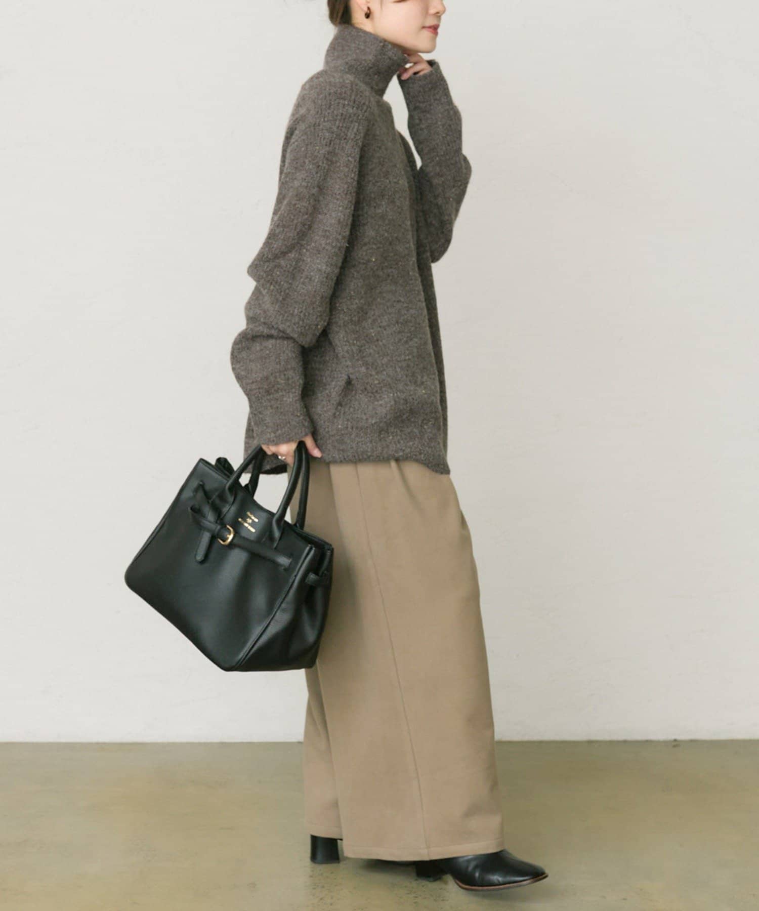 程よい立ち上がりのハイネックが首元を優しく暖かに包み込み、寒い冬もマフラー要らず。