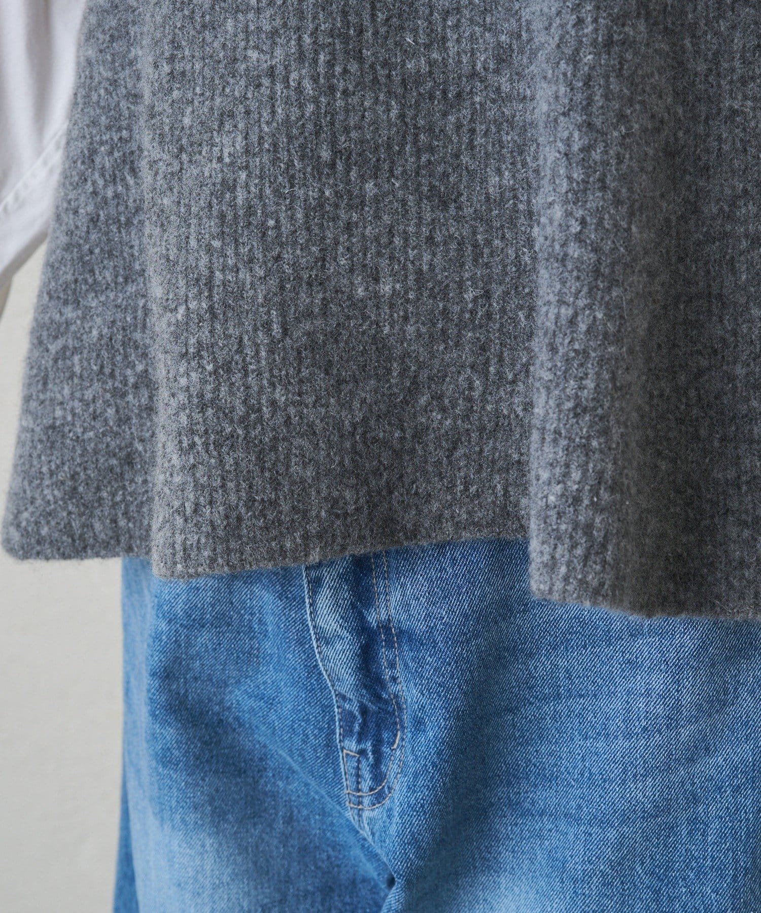 片畦編みの凹凸感とふんわりとした質感で表情豊かなニュアンスと暖かいムードを生み、