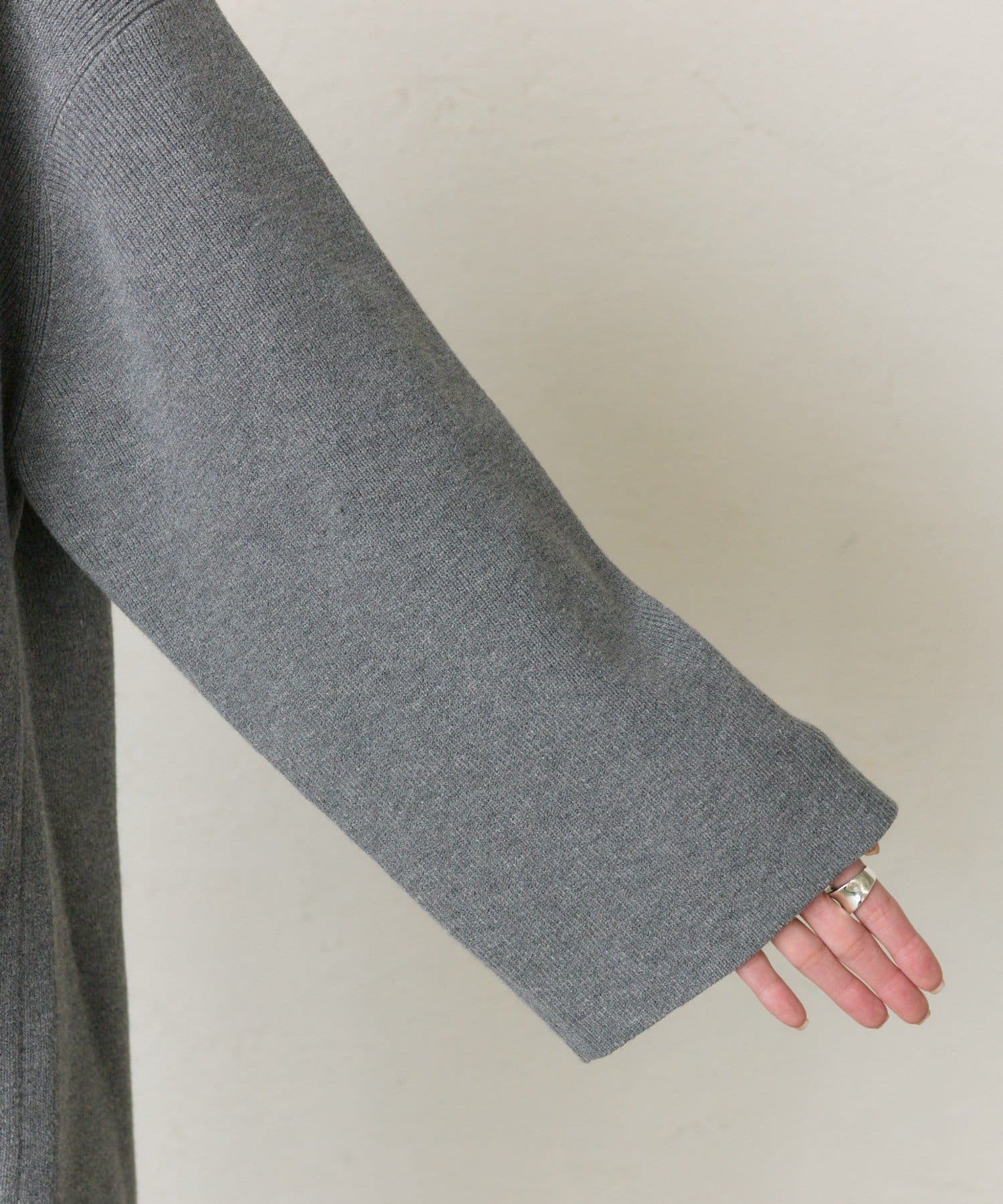 柔らかくドレープ性のあるニット素材が、体のラインに沿って自然に落ち美しい縦ラインを演出。