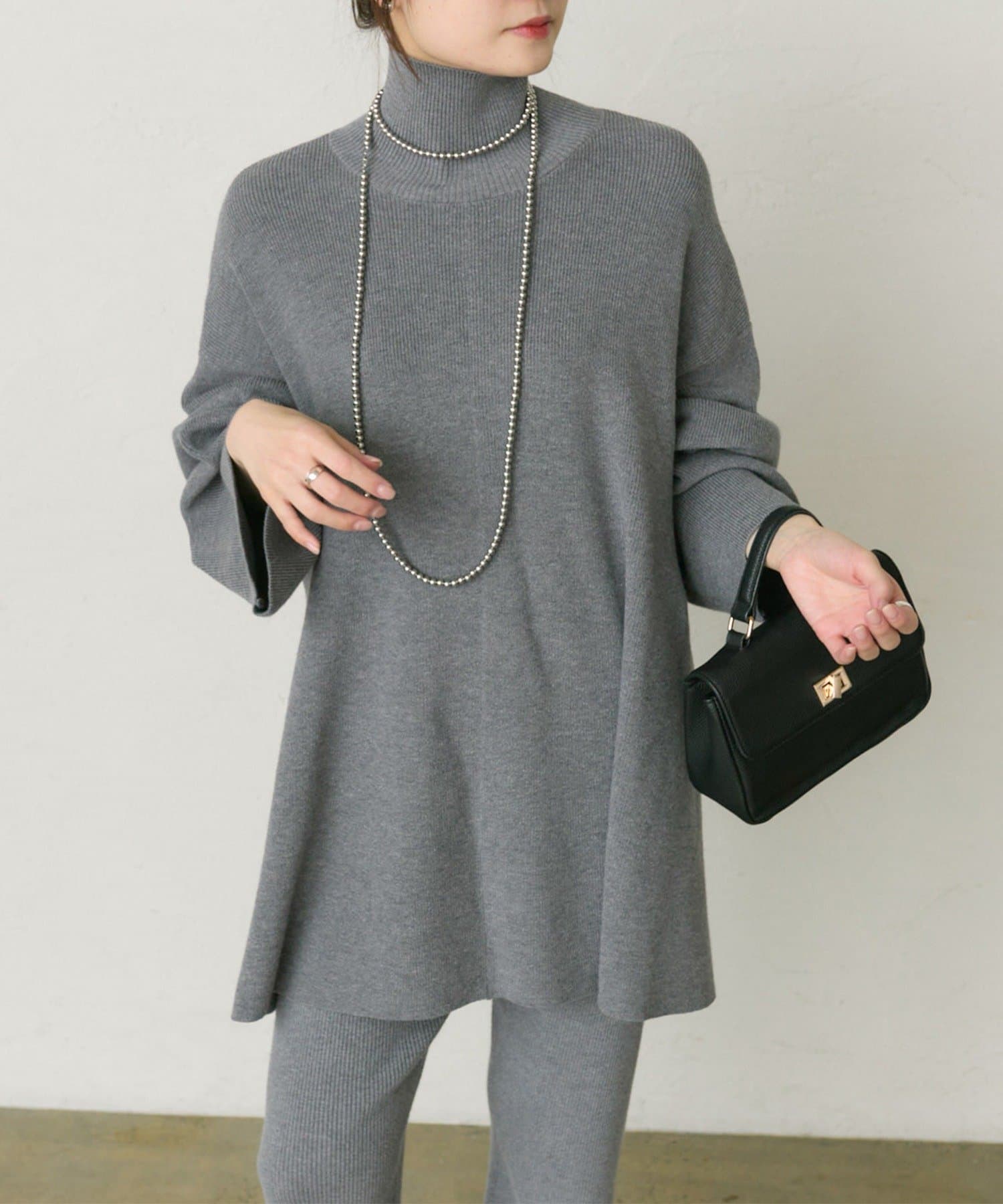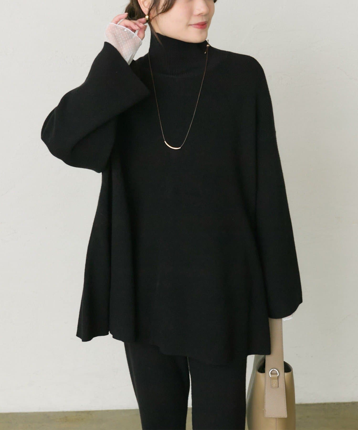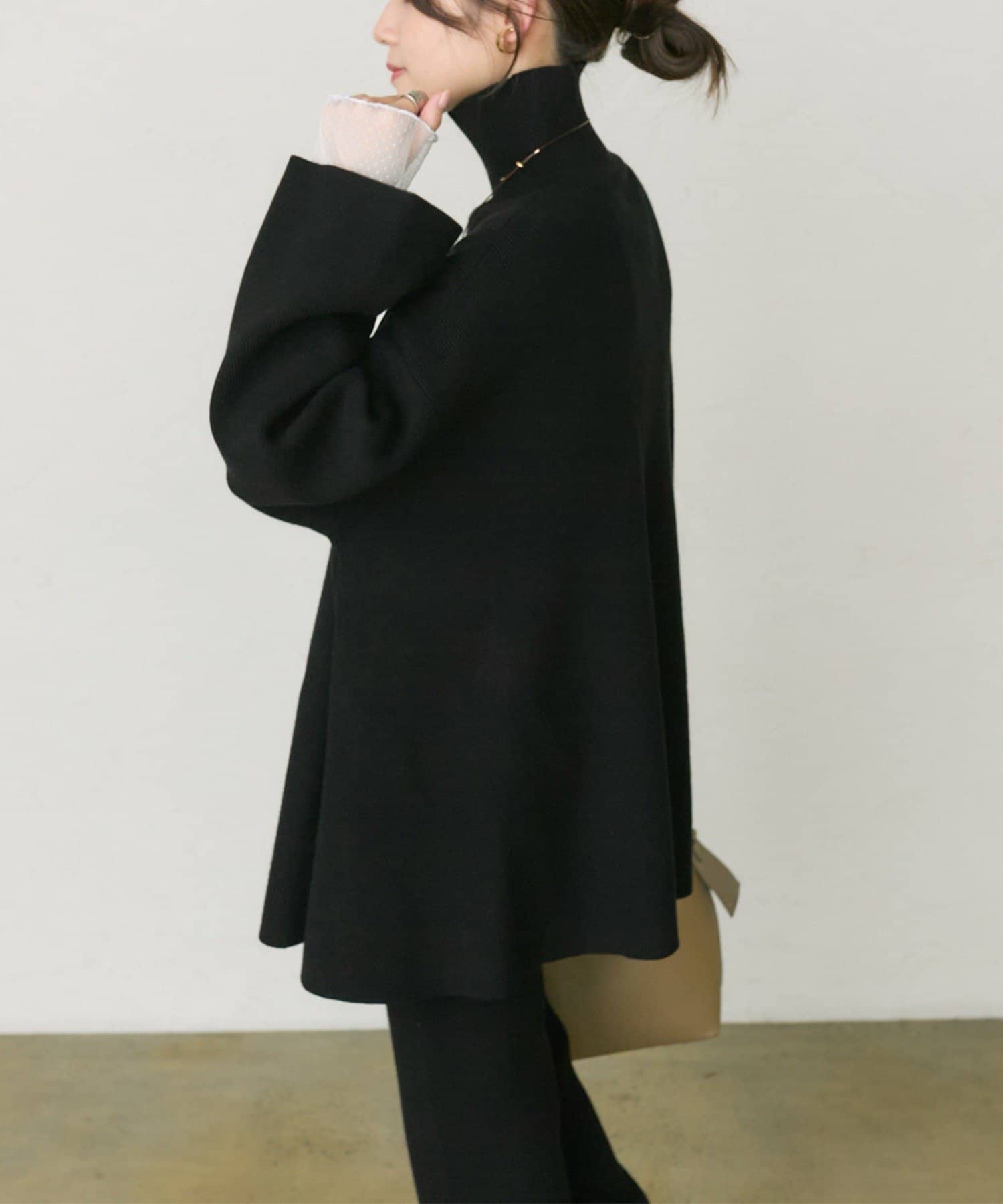【セットアップ対応】ハイネックフレアニットプルオーバー