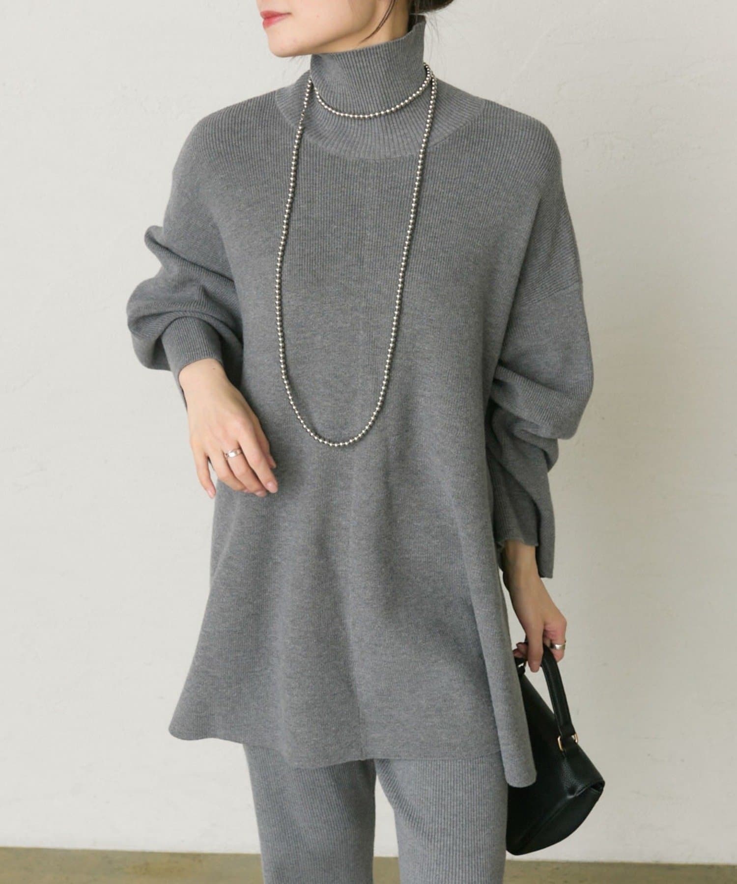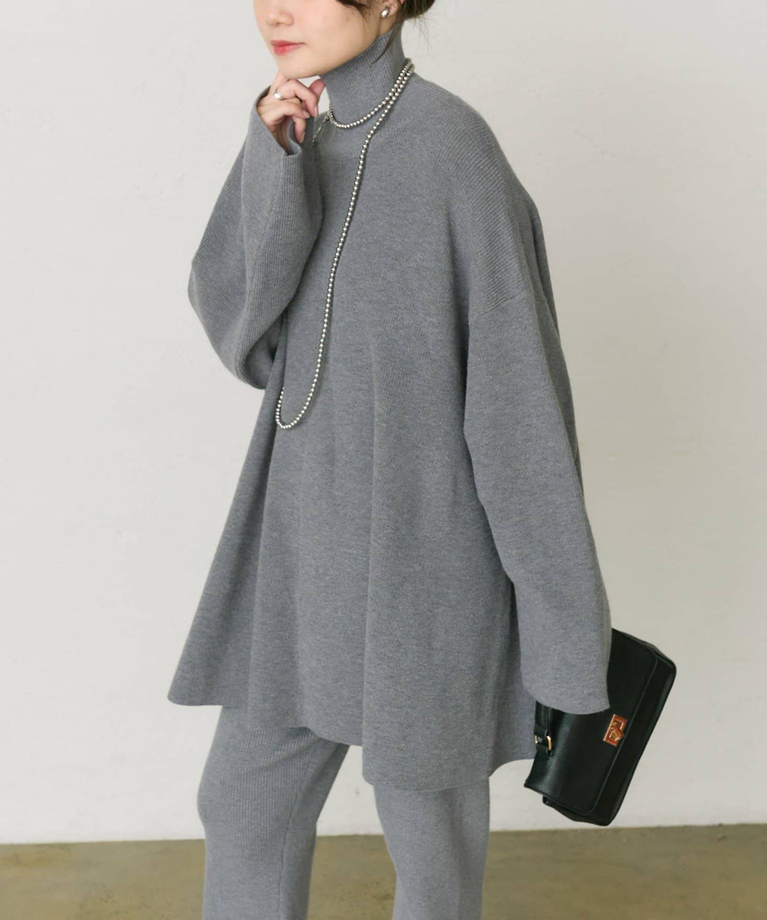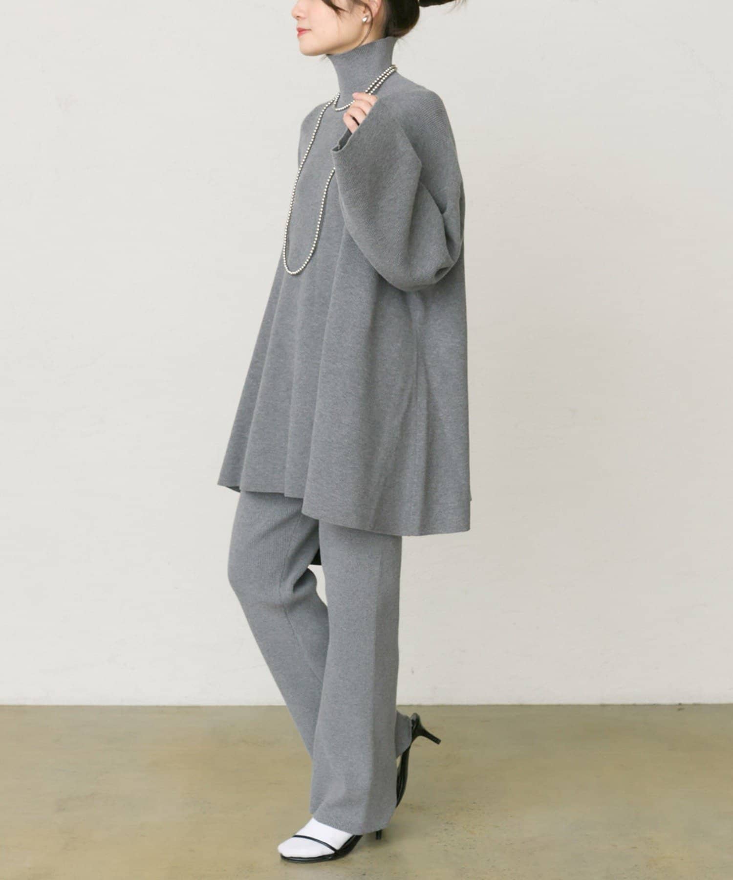 【セットアップ対応】ハイネックフレアニットプルオーバー
