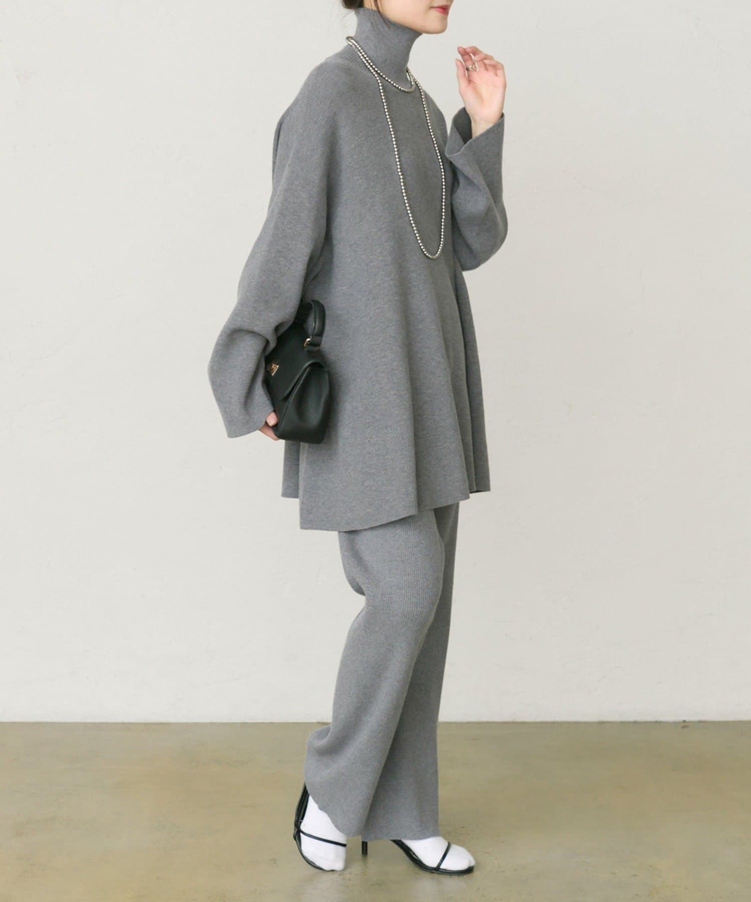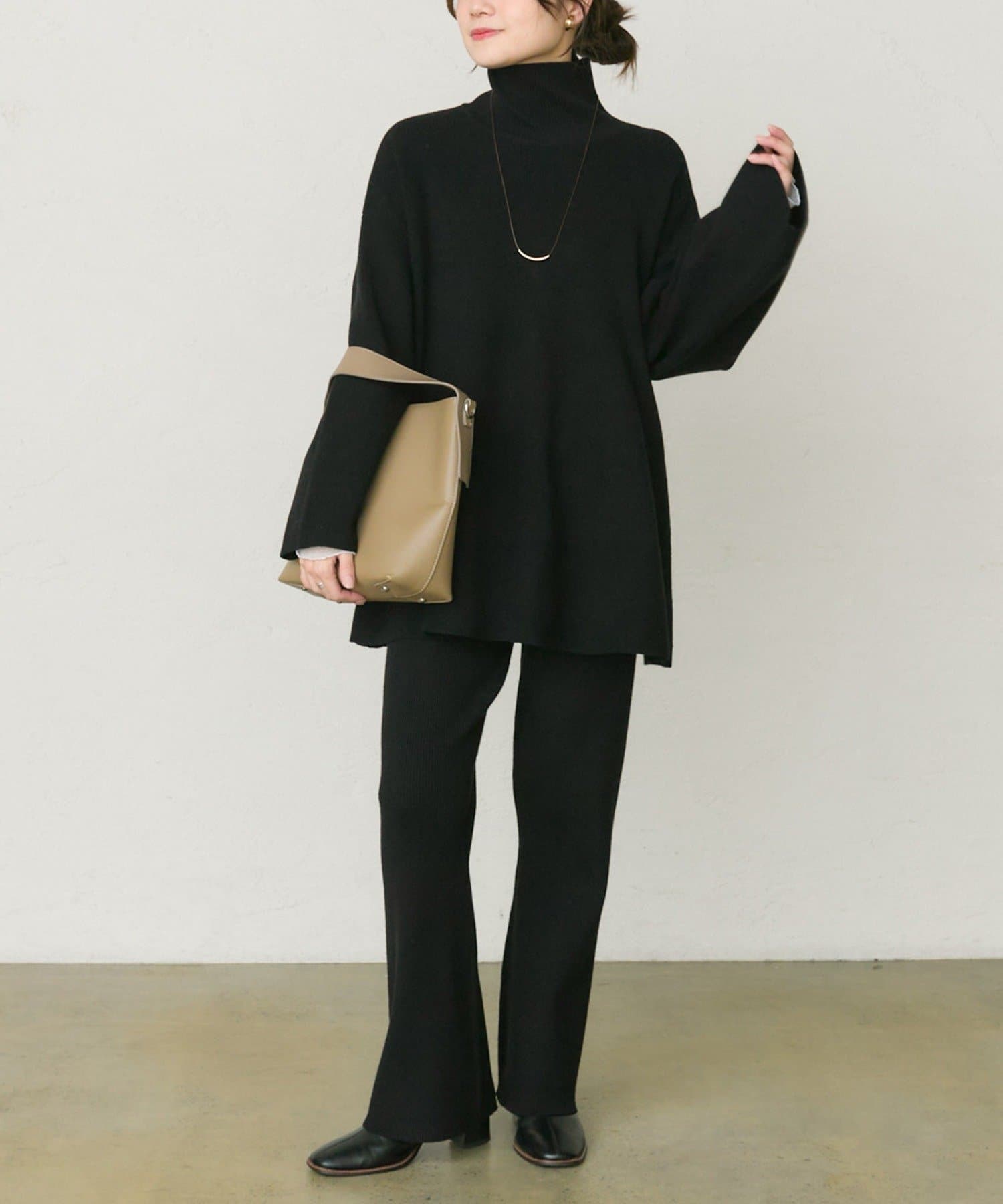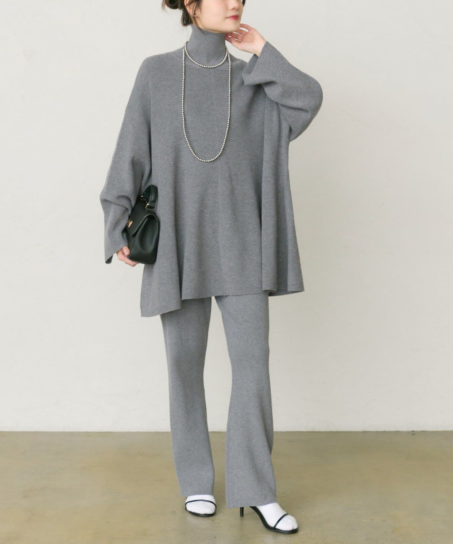 同素材を使用したニットパンツ(NO.0252020310)とセットアップの着こなしが上品な装いでオススメ。