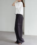 カーブパンツやスラックスなどワイドシルエットのボトムスにはタックインで、