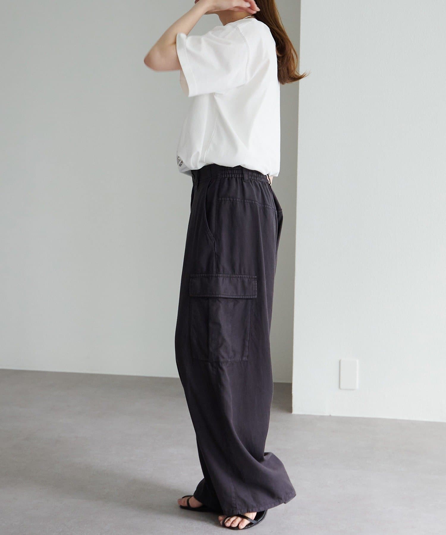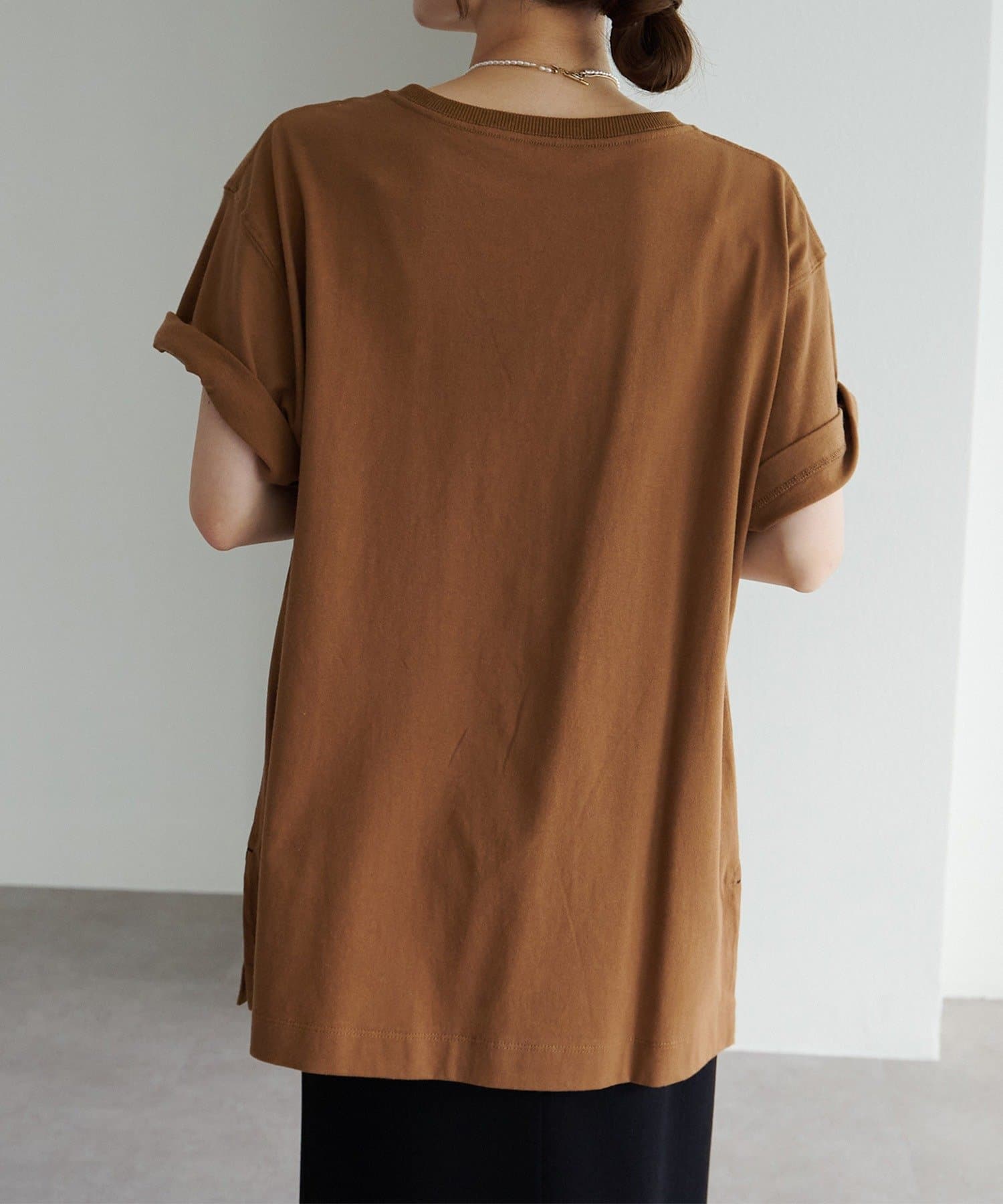 着用感:オーバーサイズのアウトスタイルもサイドスリットが入り動きやすかったです。