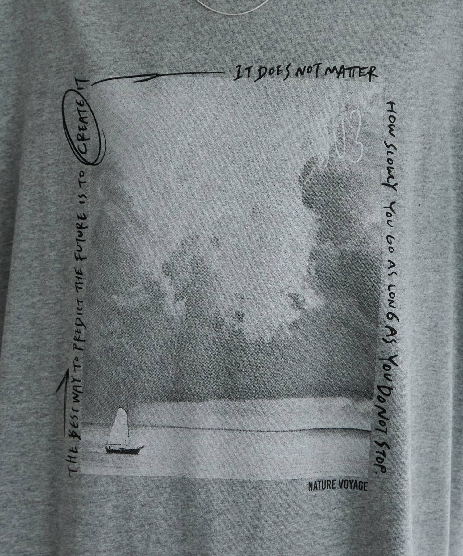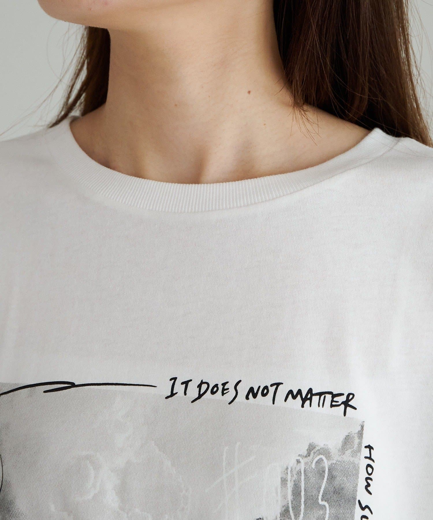 生地に馴染む優しいモノクロカラーのフォトプリントに、