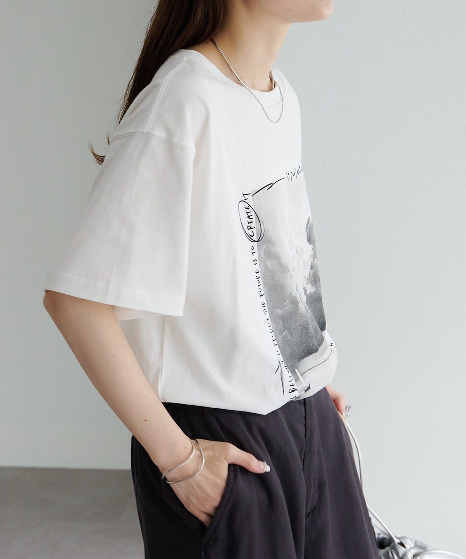 ベーシックなカラーの配色がコーディネートに取り入れやすく、大人の女性にオススメしたいフォトプリントTシャツです。