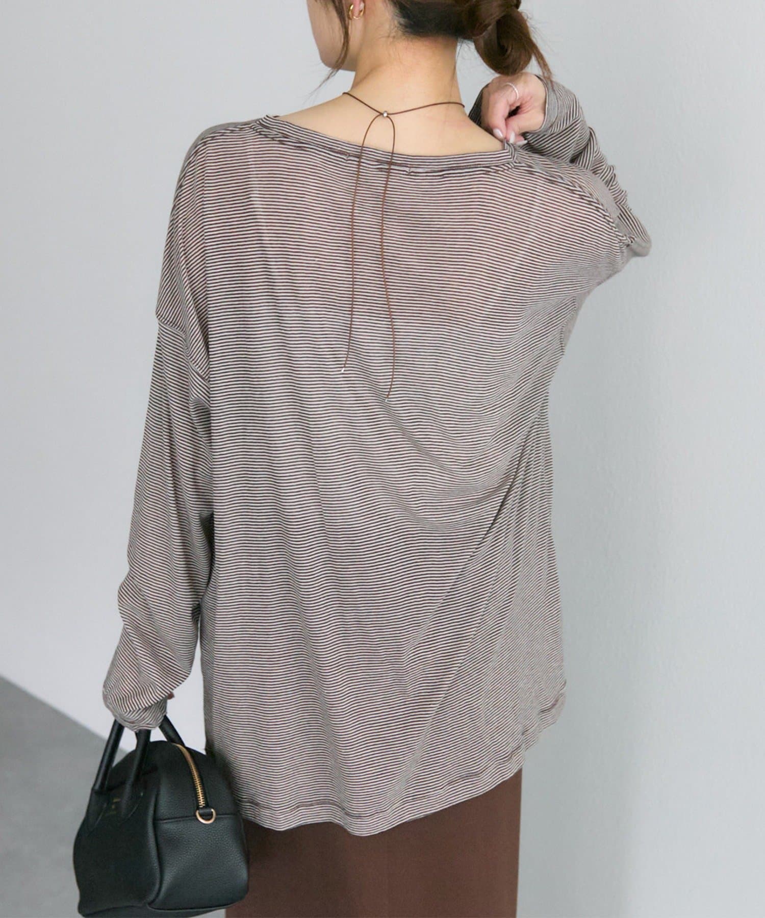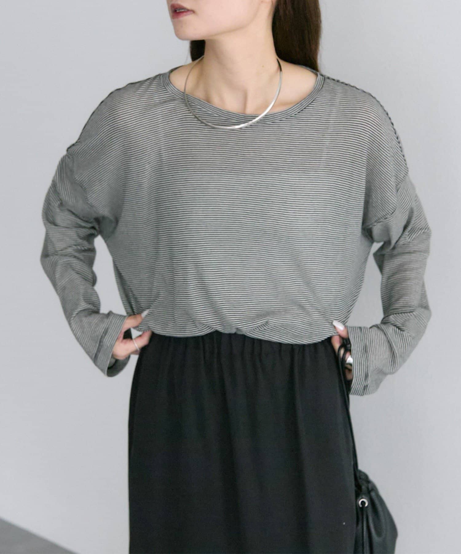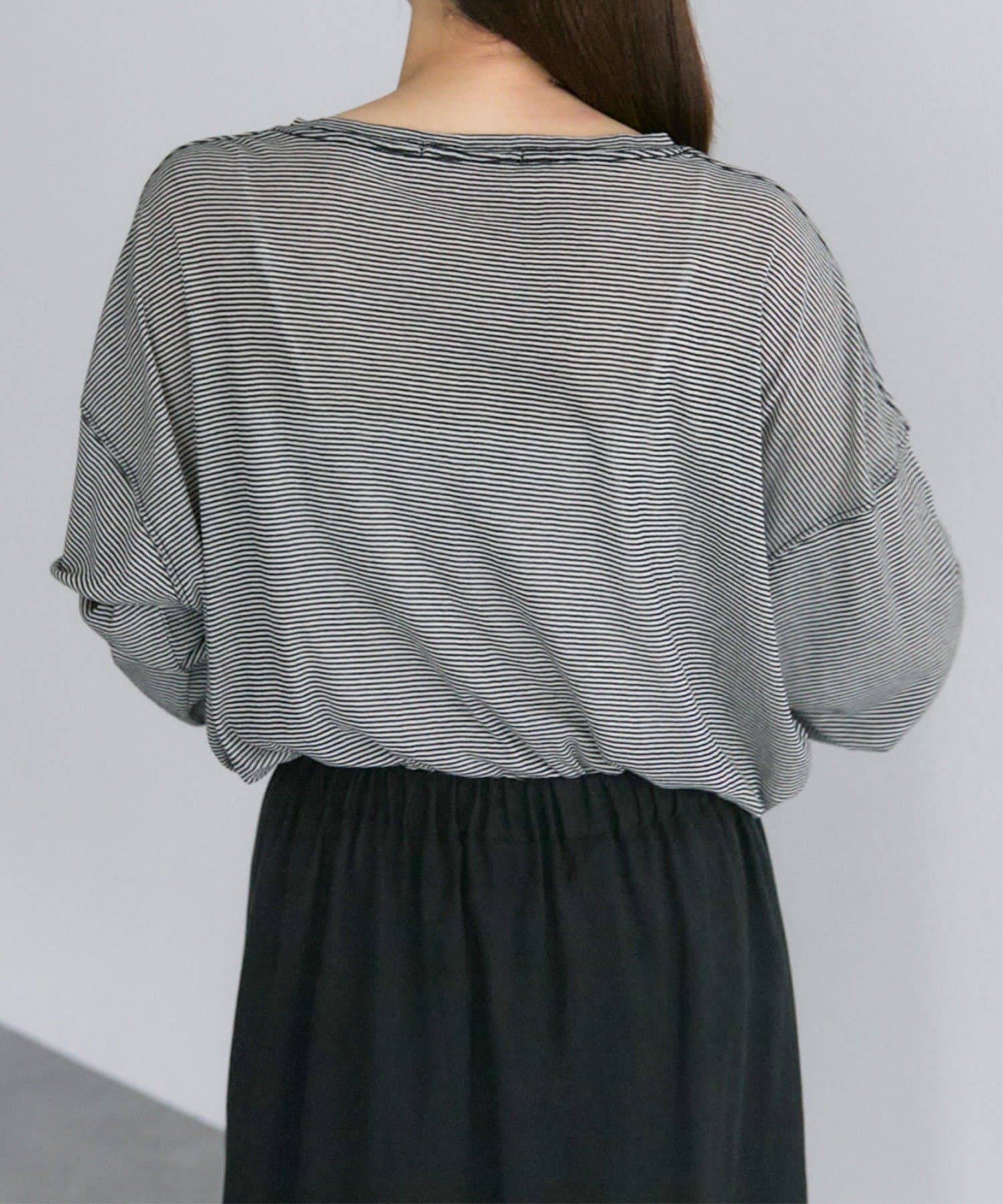 着用感:細かいボーダーでシアー感ある生地の透け感が控えめに感じました。