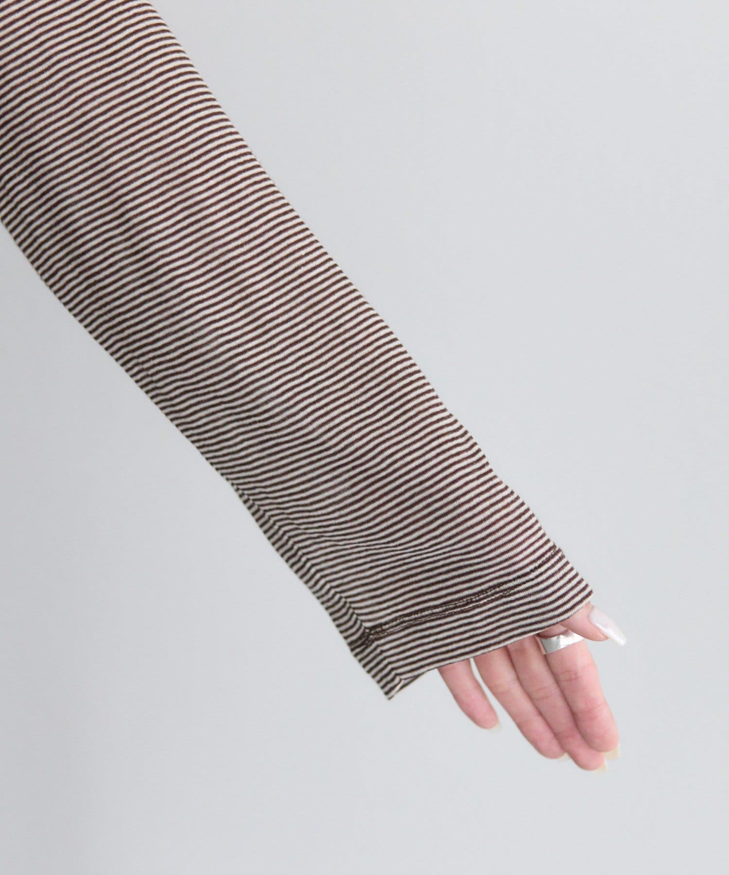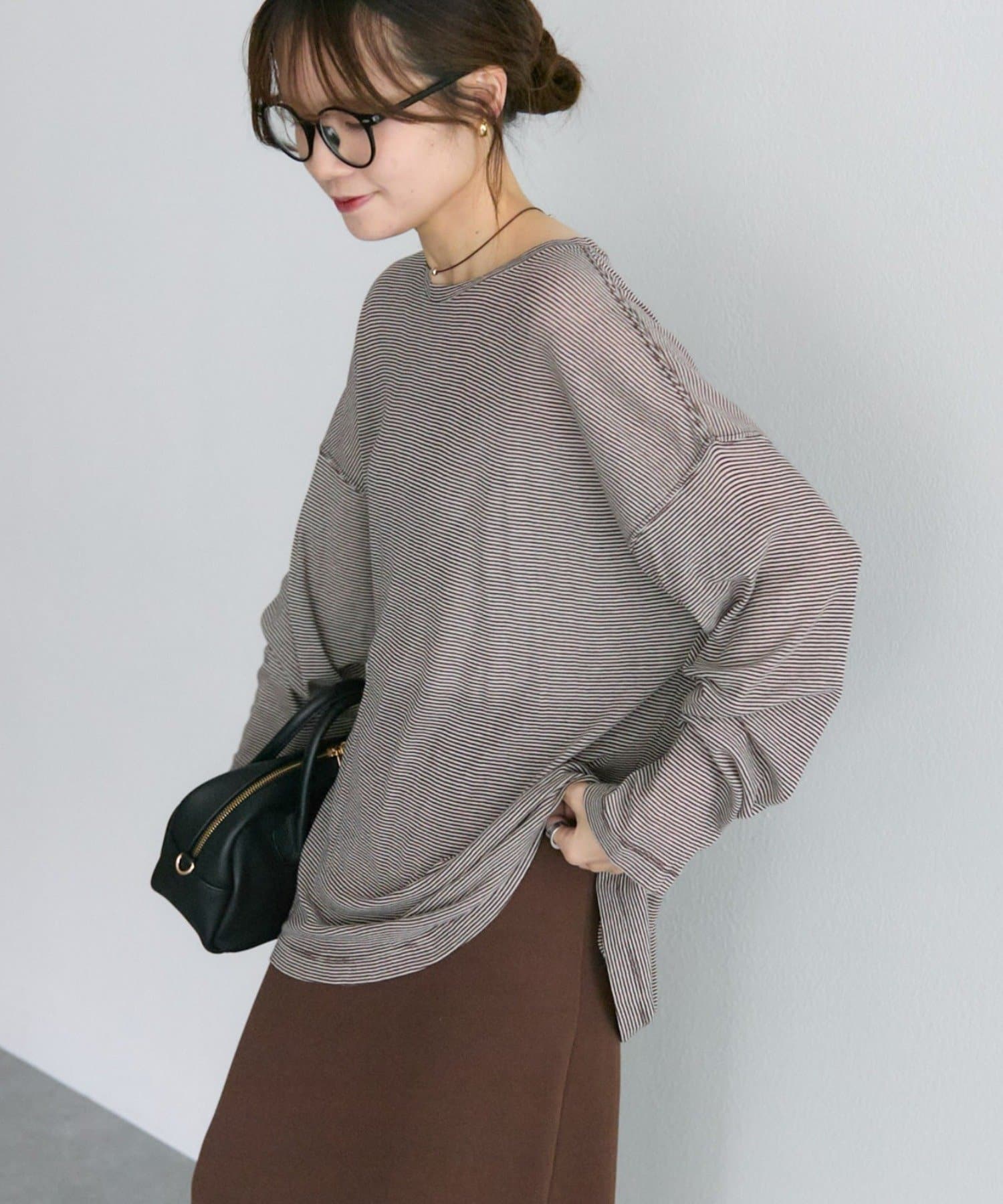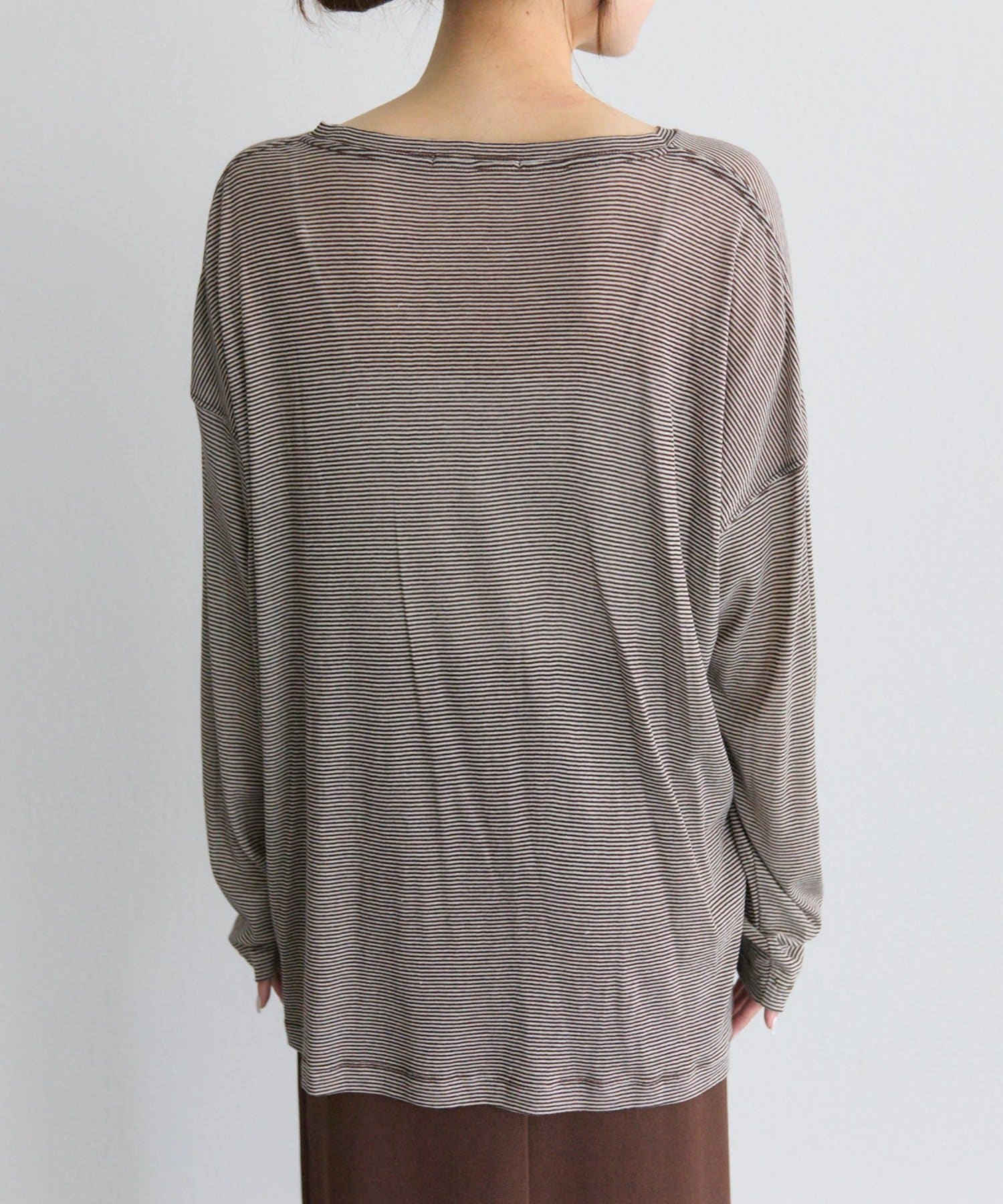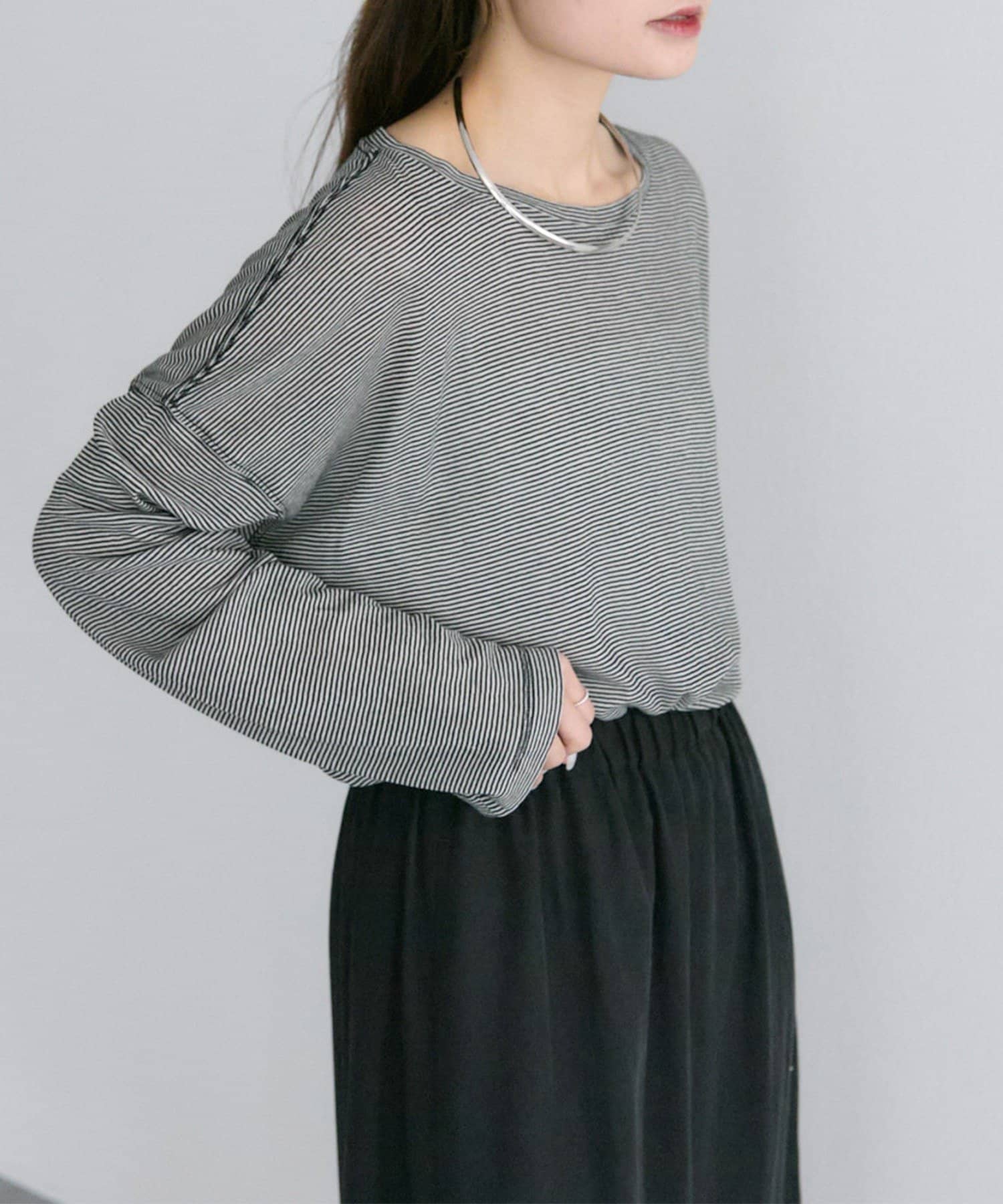 着用感:細かいボーダーでシアー感ある生地の透け感が控えめに感じました。