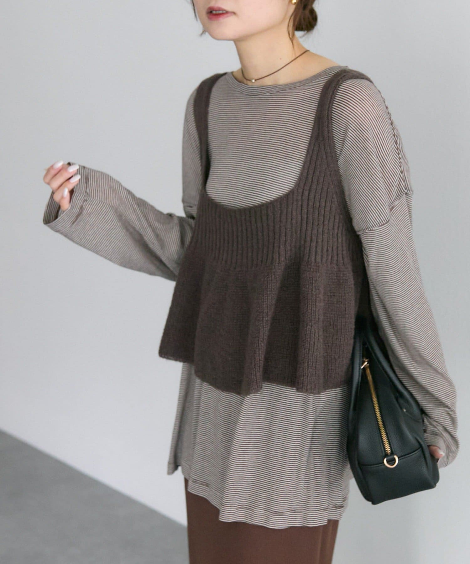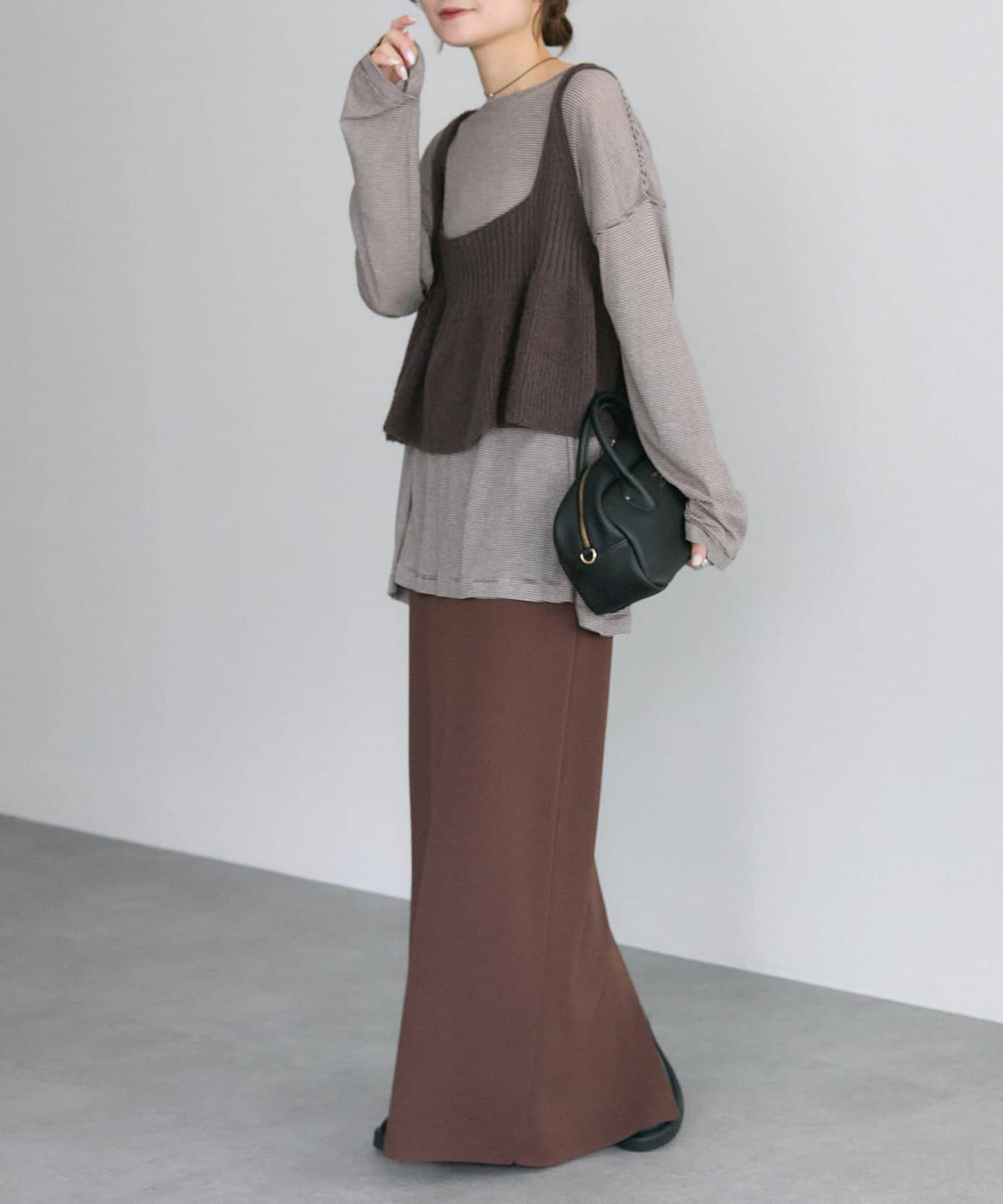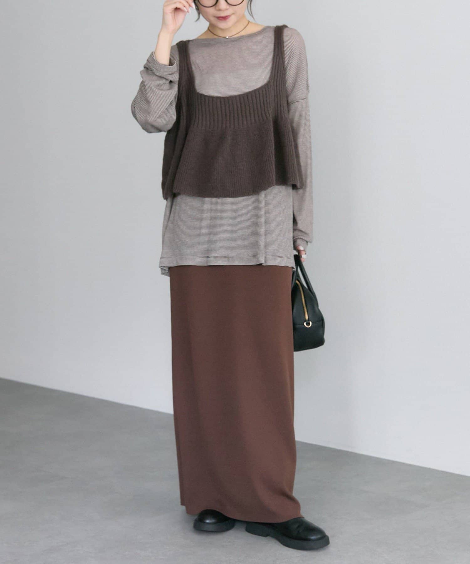 薄手のアイテムなので、初秋には1枚着として、気温が下がる時期にはニットなどとの