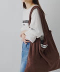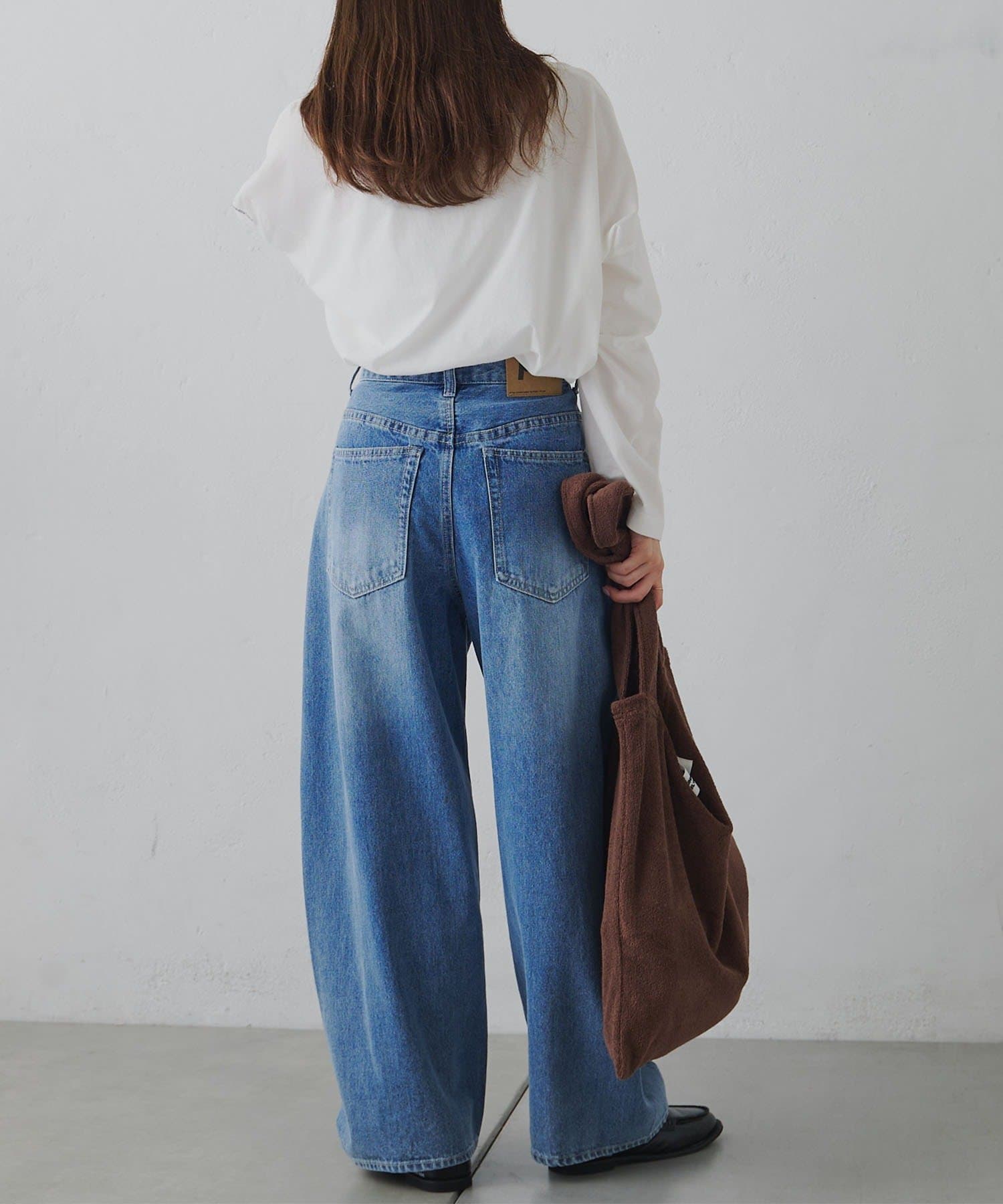 身幅が広く、肩を落としたトレンド感あるシルエットがラフで余裕のある大人カジュアル感をプラス。