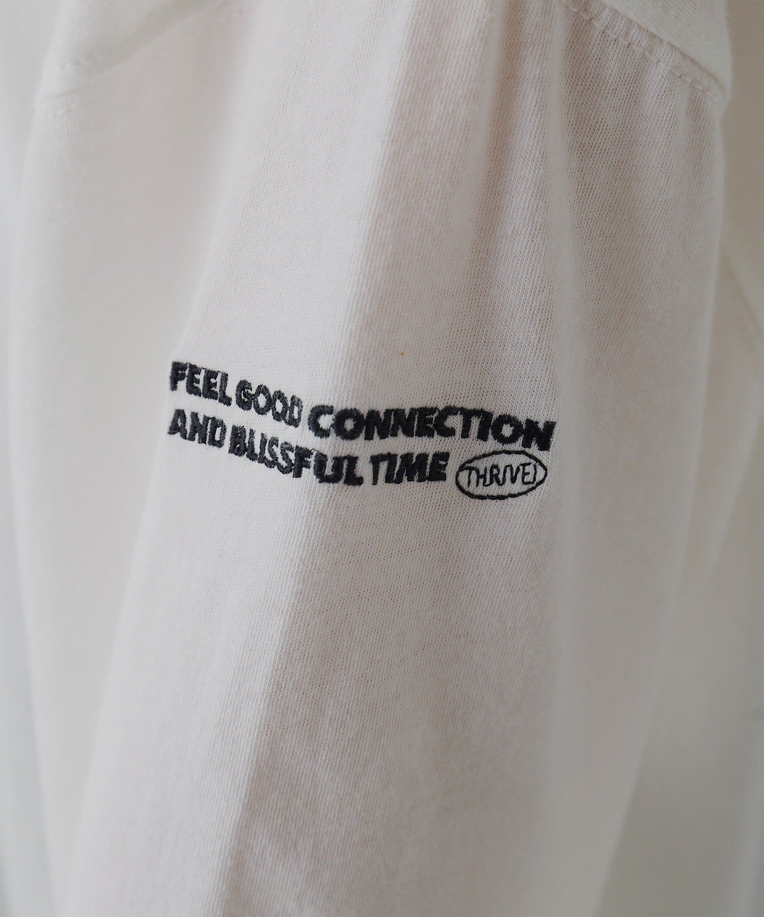 フロントのロゴプリントと左腕の刺繍が主張しすぎないアクセントに。