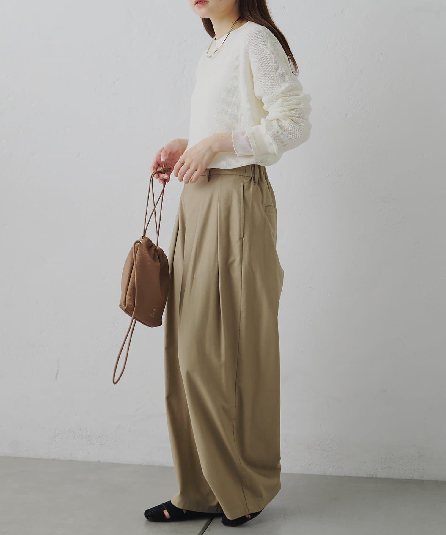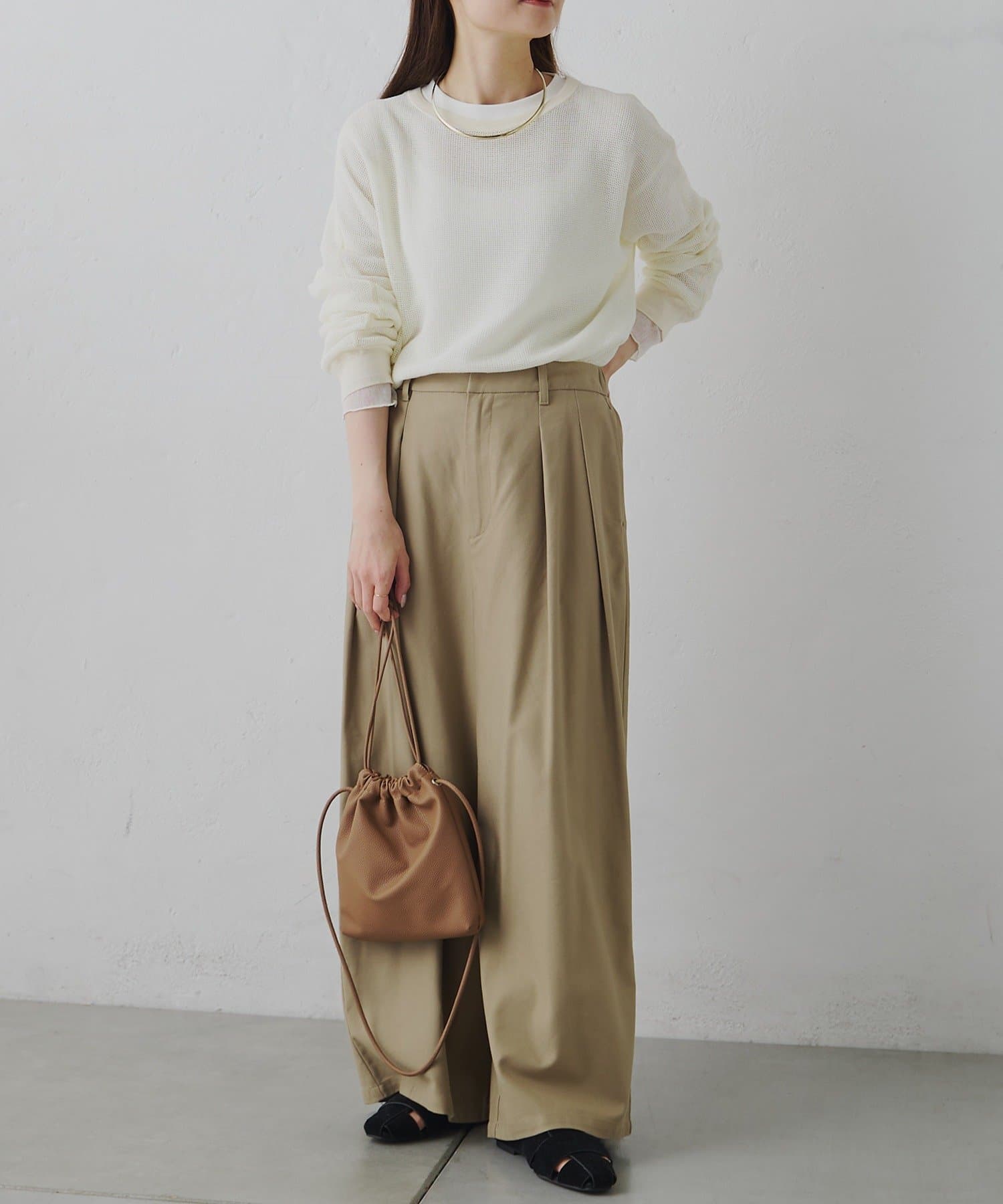 やや詰まった首元は、カットソーなどとレイヤードした時にチラ見えする重ね着も楽しめるサイズ感に。
