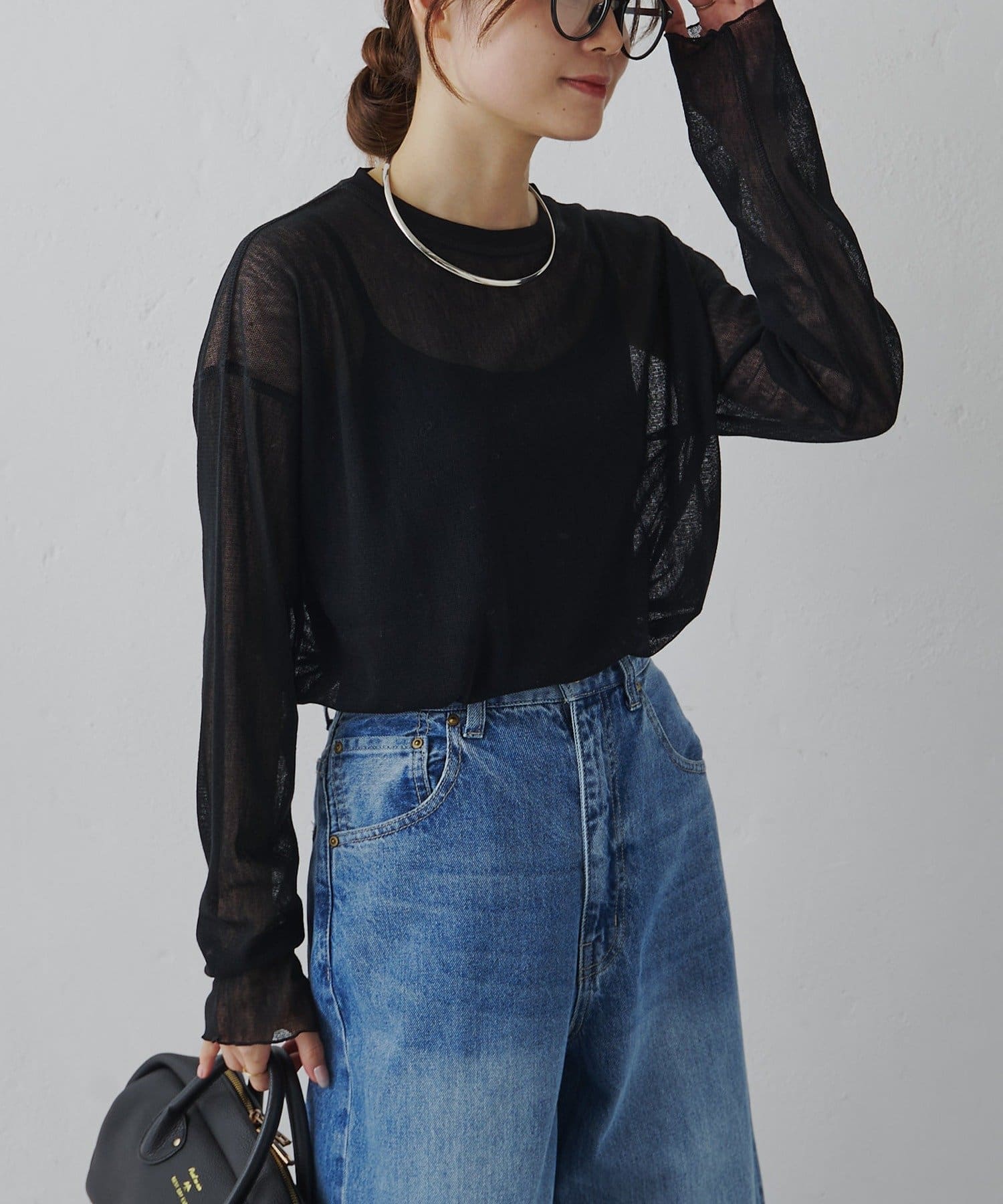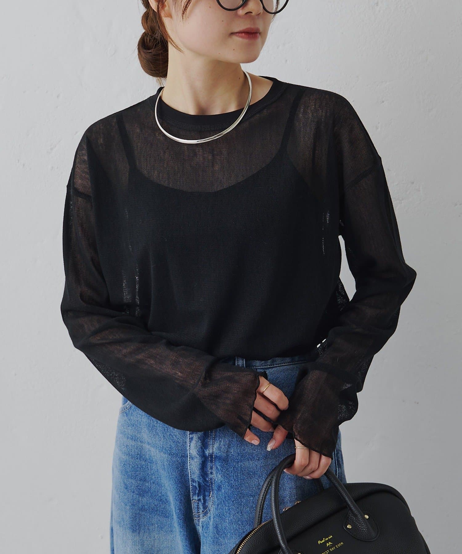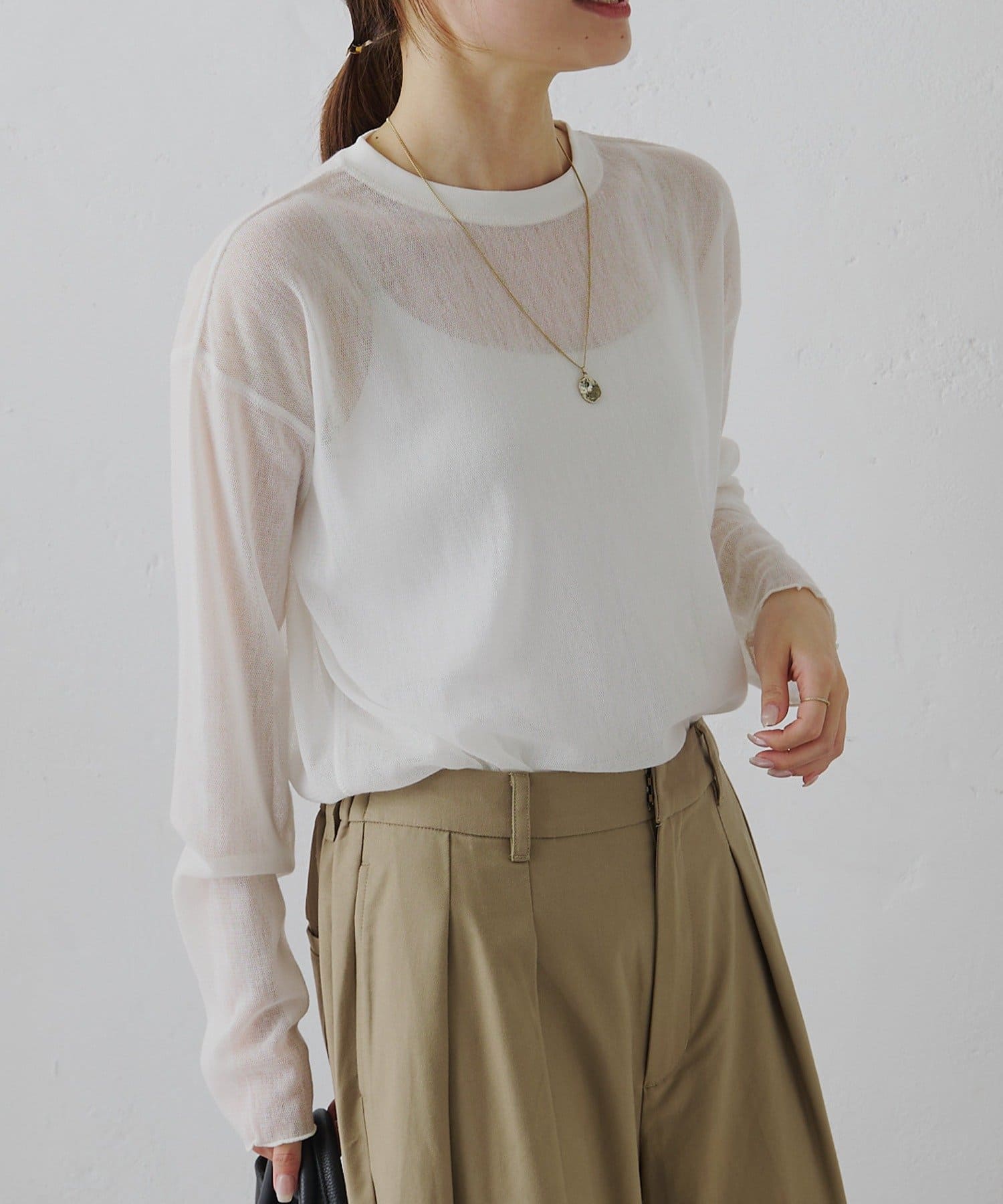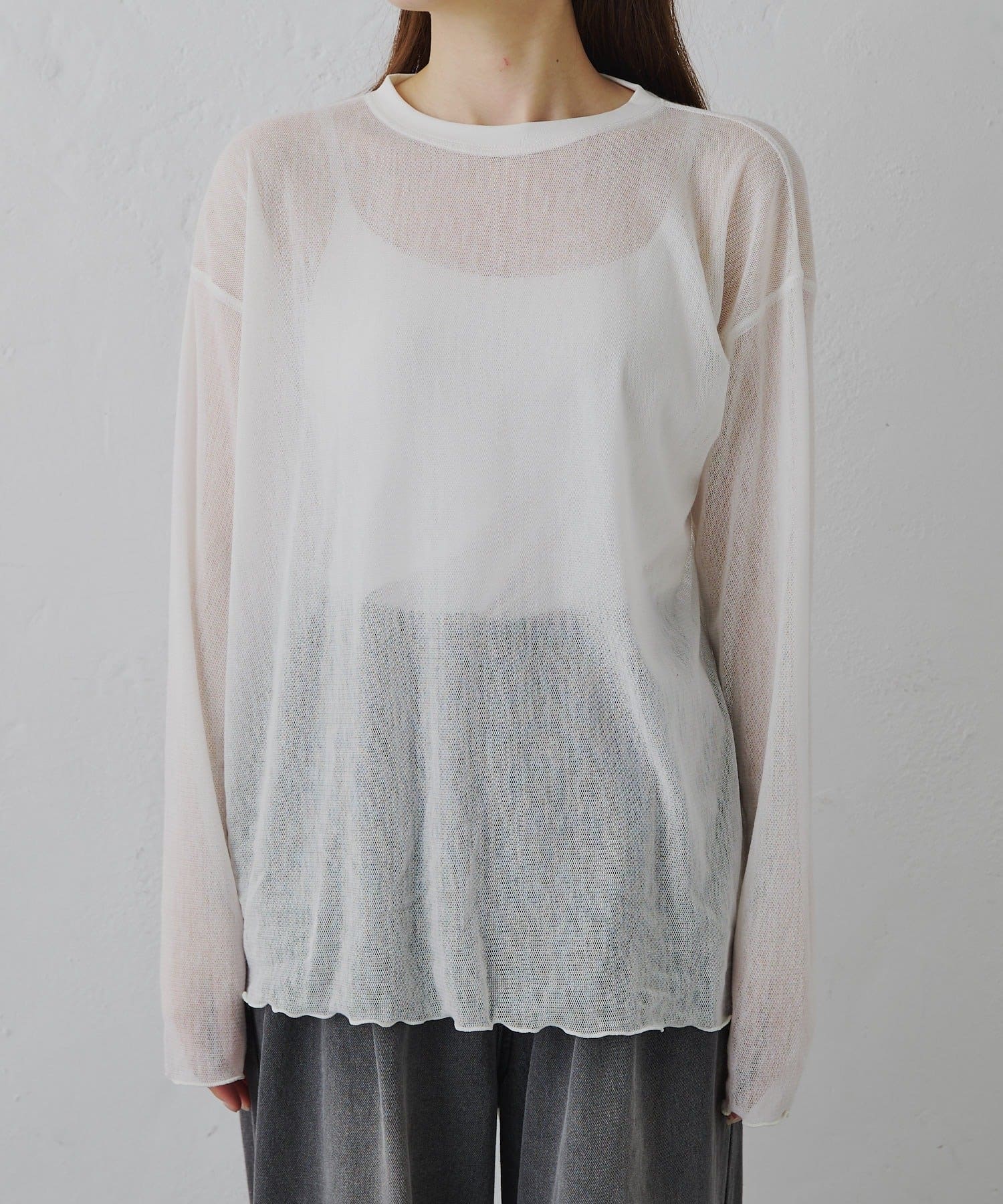 繊細なシアーメッシュが魅力のプルオーバーカットソー。