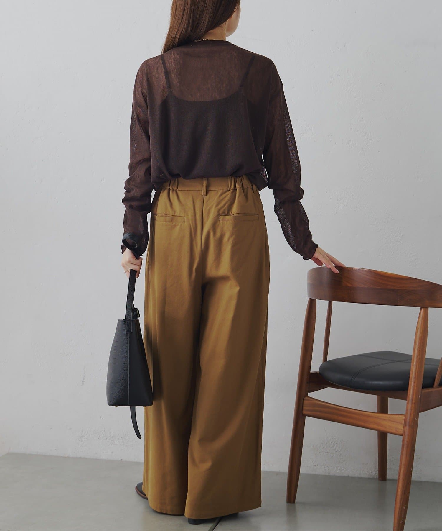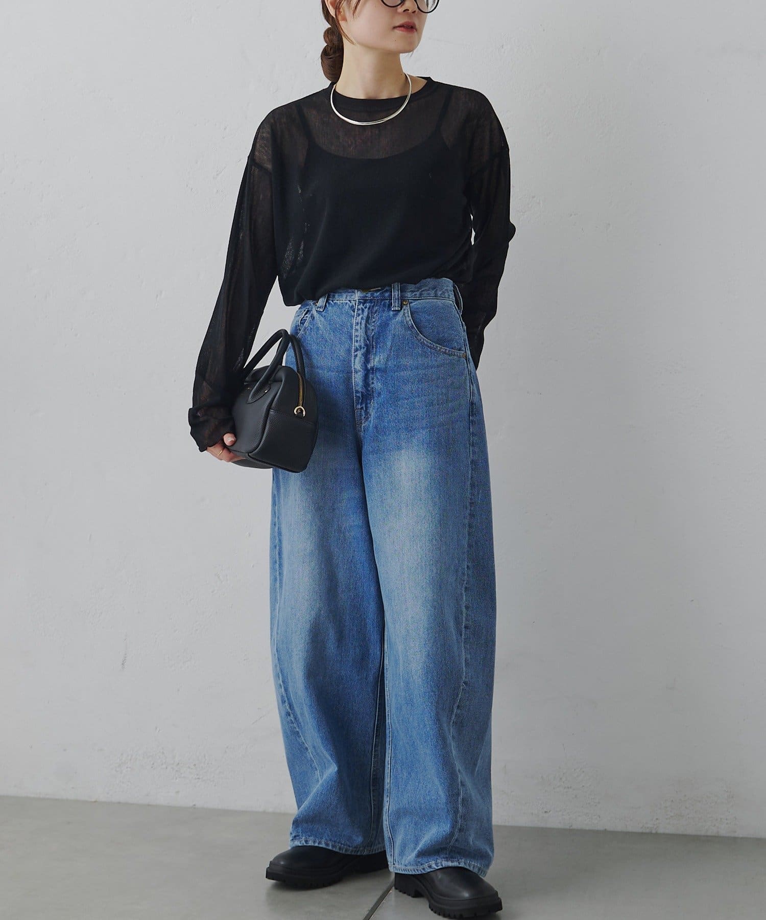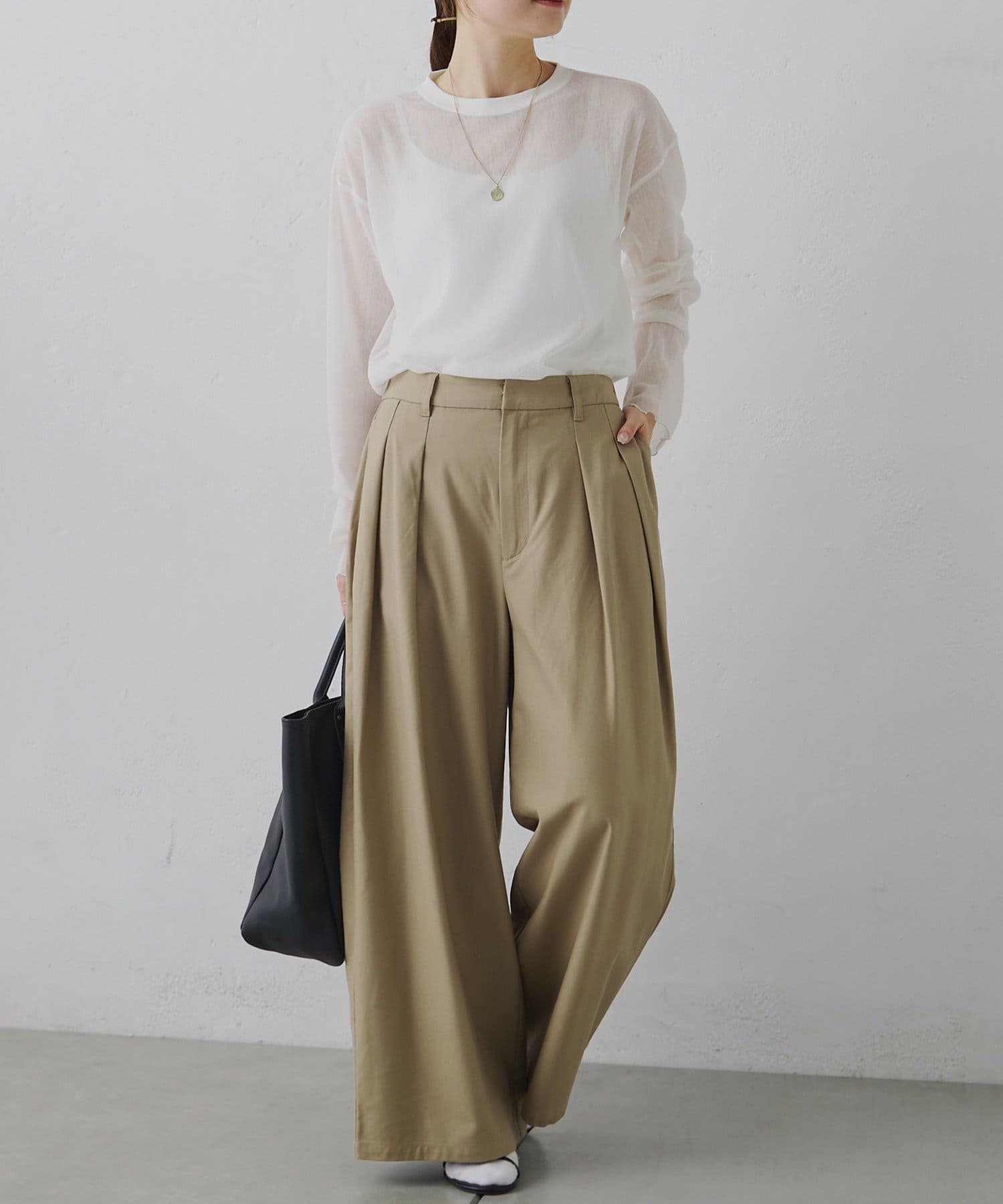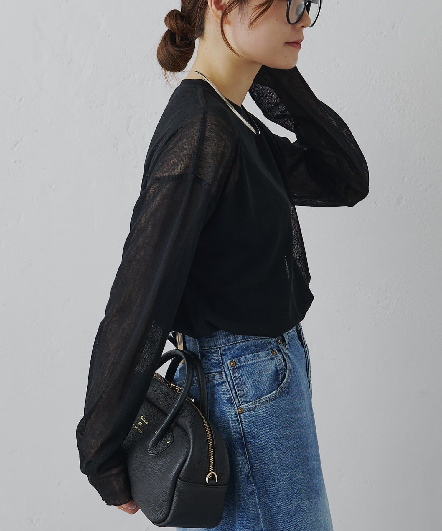 着用感:首元のリブがしっかりとしているので、薄手の生地ながら安心感のある着心地。