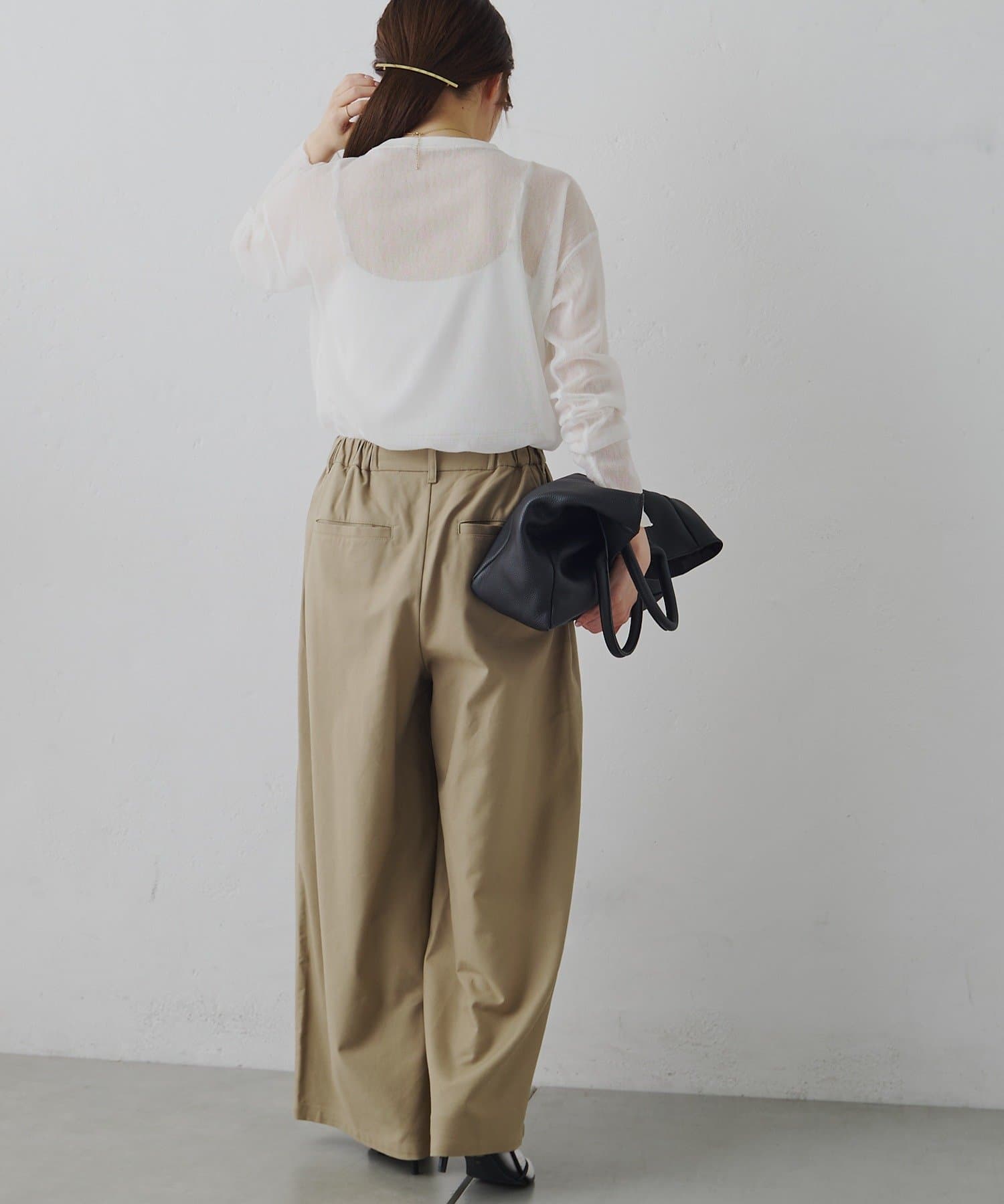 スタイリッシュな細見えを叶えつつ、ボディラインを拾いすぎないゆとりがあるのは嬉しいポイント。