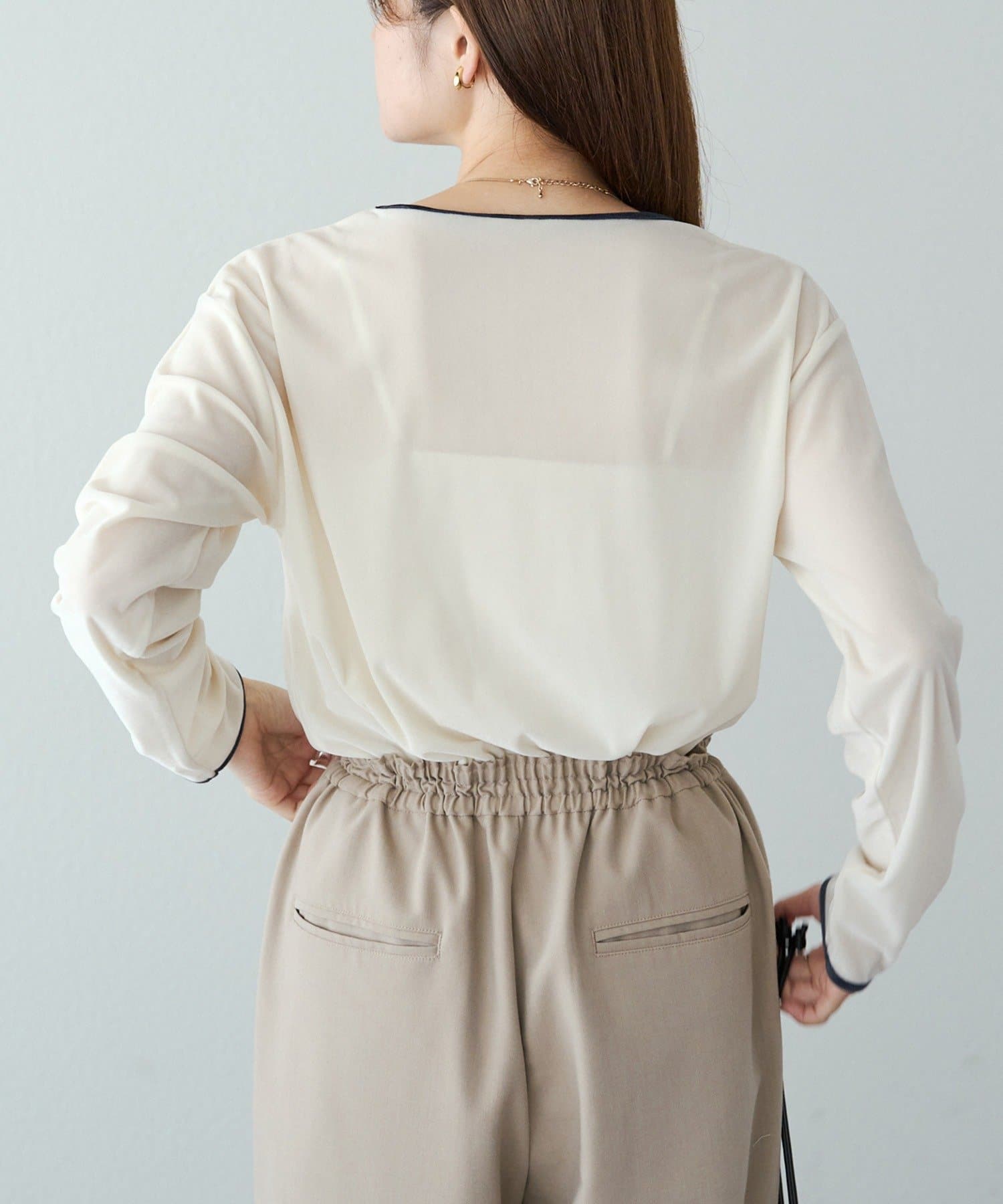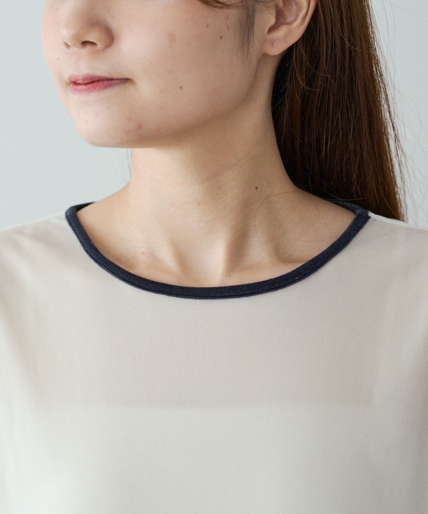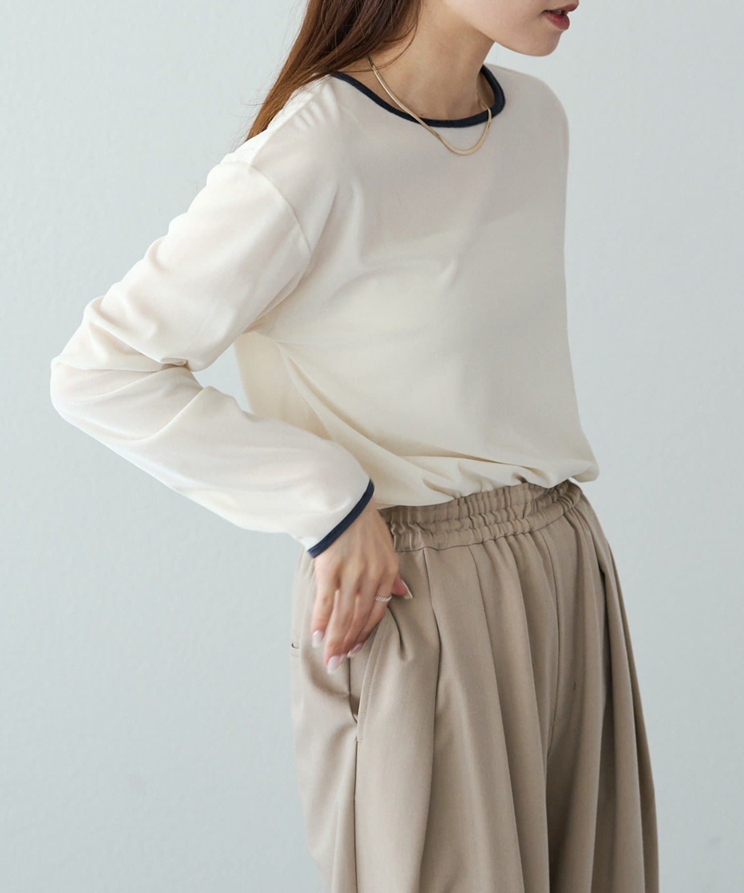 ネックラインと袖口に配色のパイピングを施し、コーディネートのアクセントになるデザインに仕上げました。