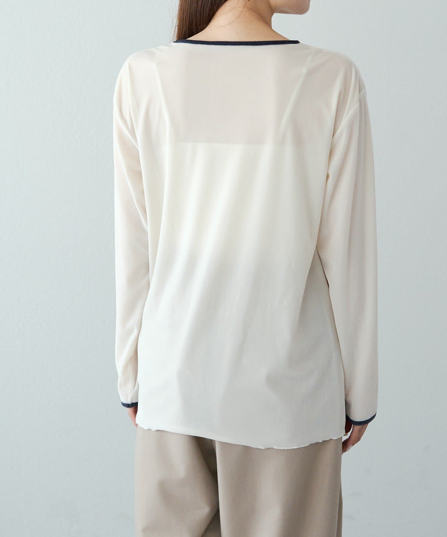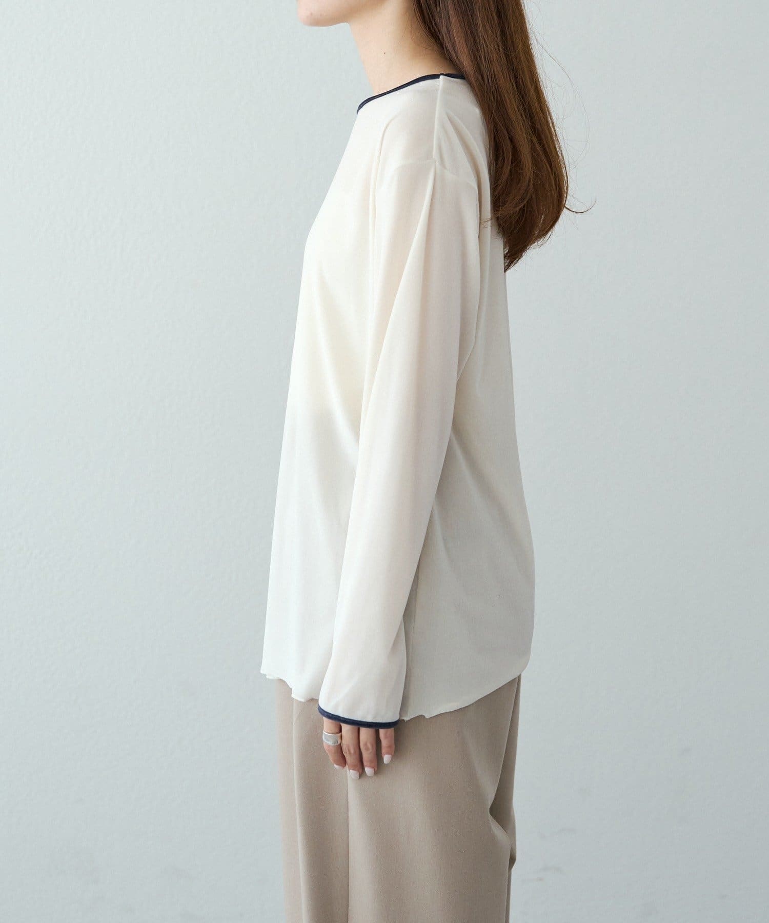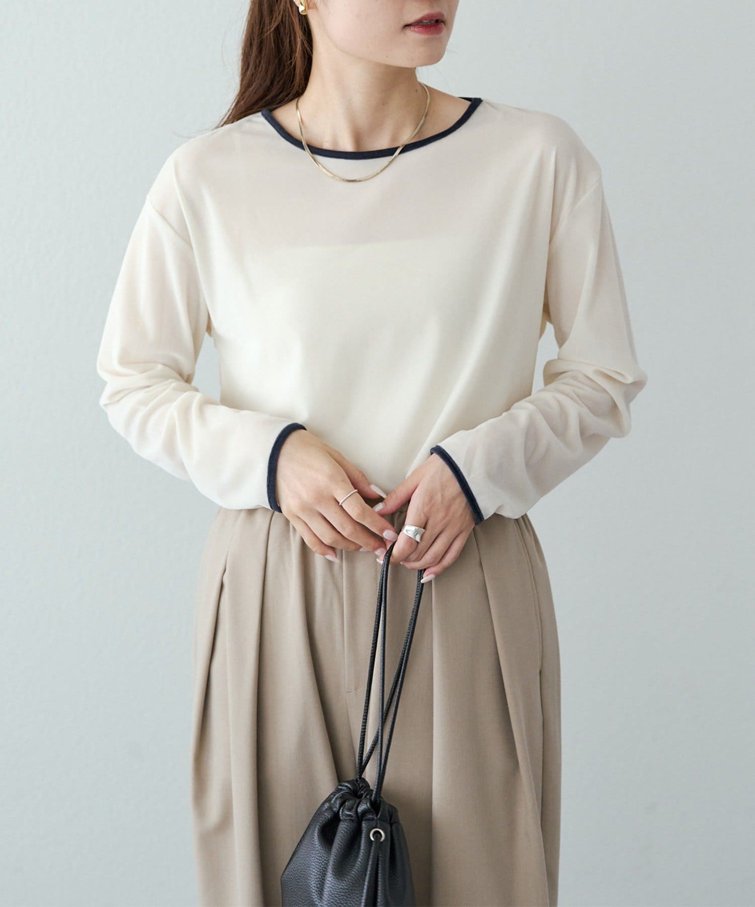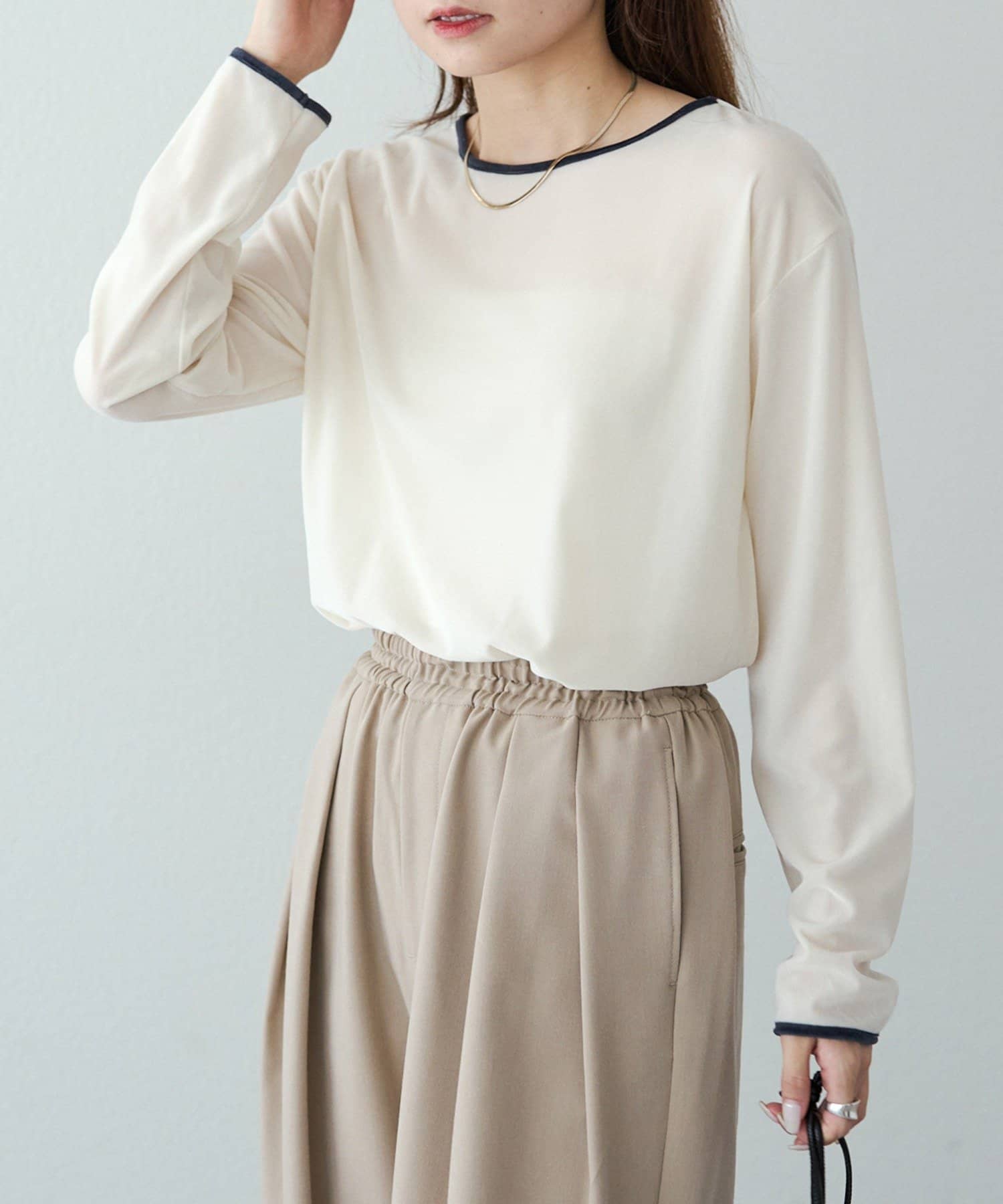 ネックラインと袖口に配色のパイピングを施し、コーディネートのアクセントになるデザインに仕上げました。