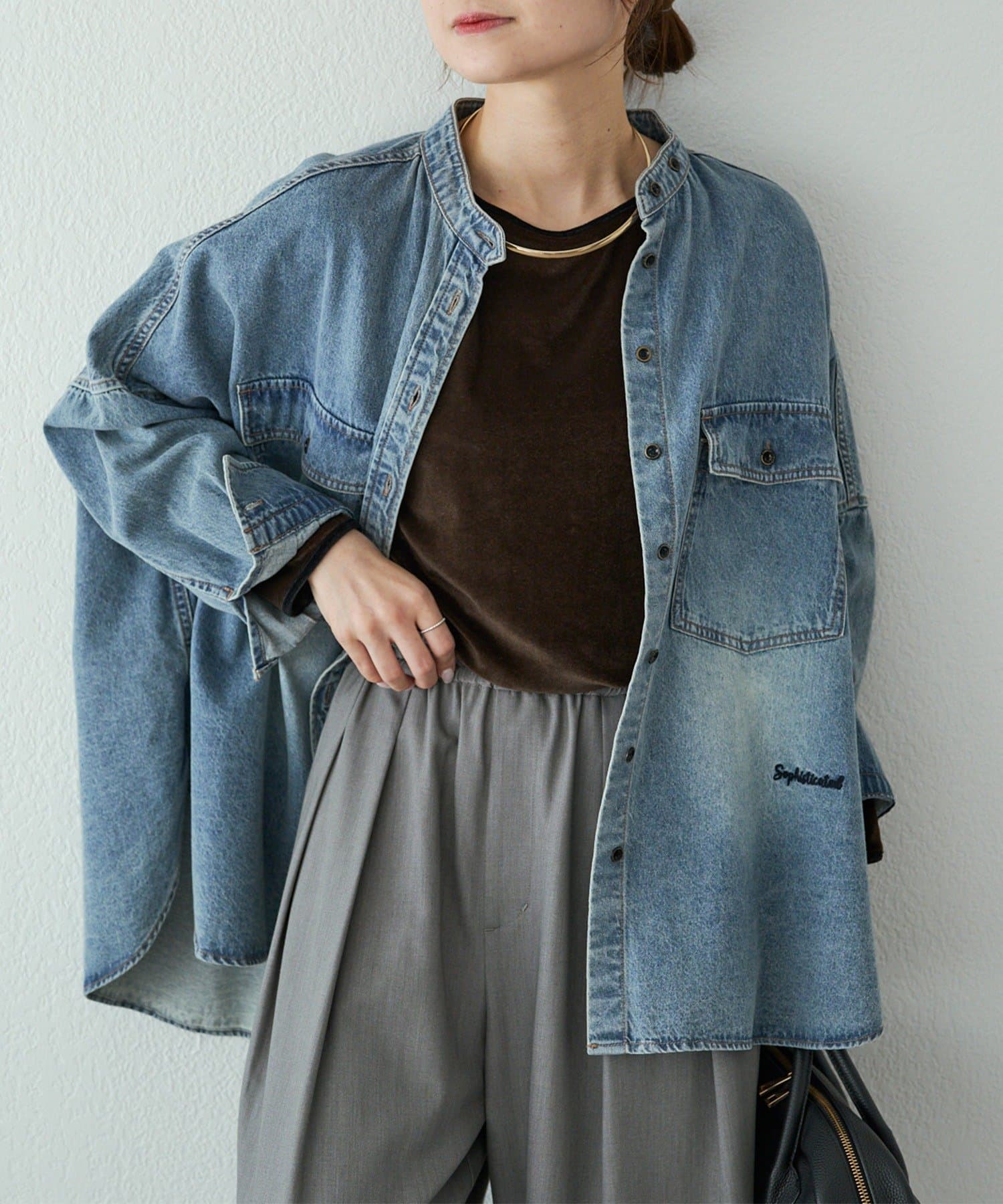デニムパンツなどと合わせたシンプルな一枚着のコーディネートも、