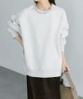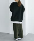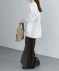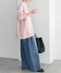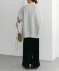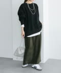 オーバーサイズなので、身体のラインにフィットするニットパンツや細身のデニムパンツなどが好相性◎