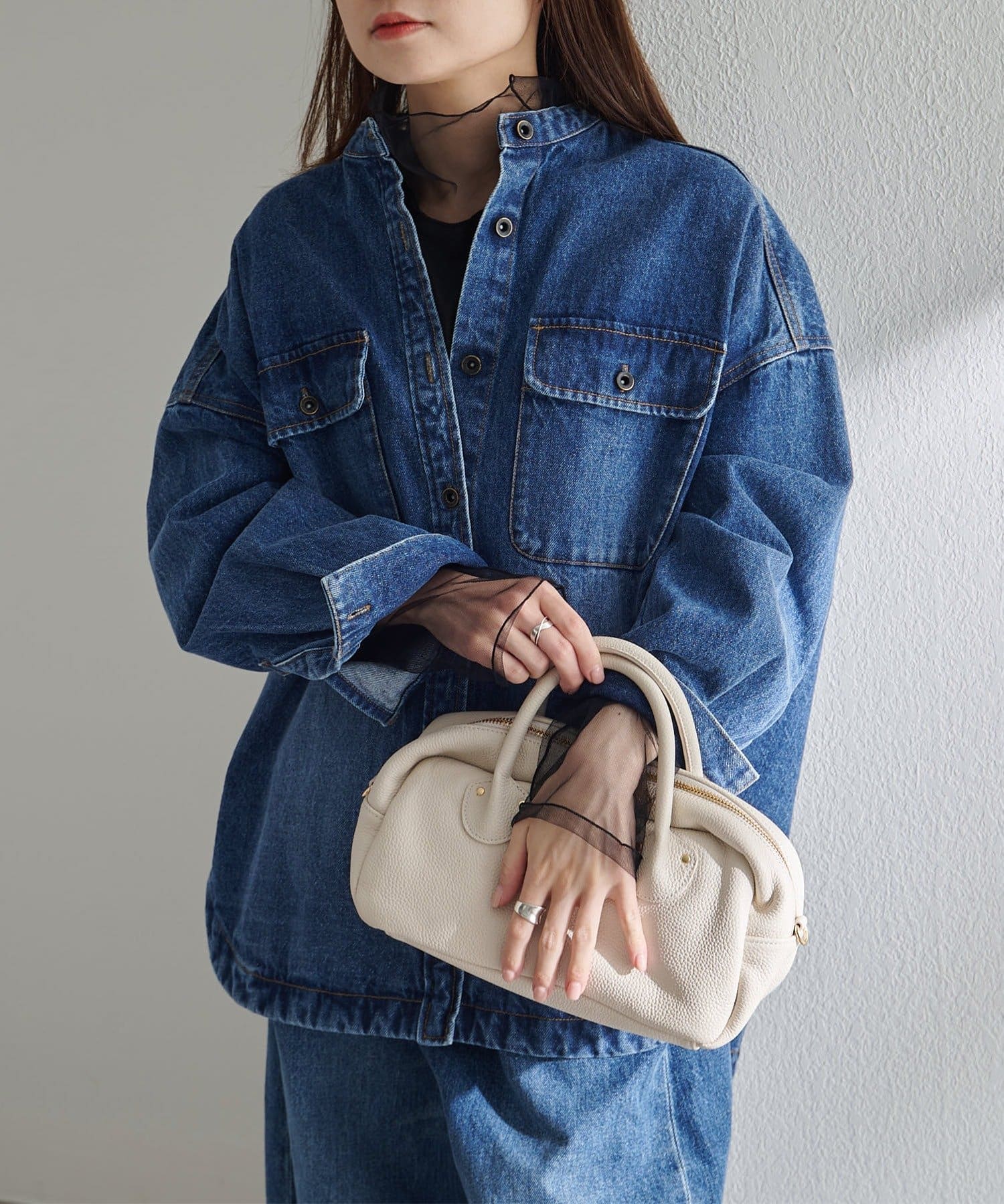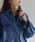 デニムシャツやスウェットなどカジュアルなアイテムに、ちょっぴり甘さをプラスした
