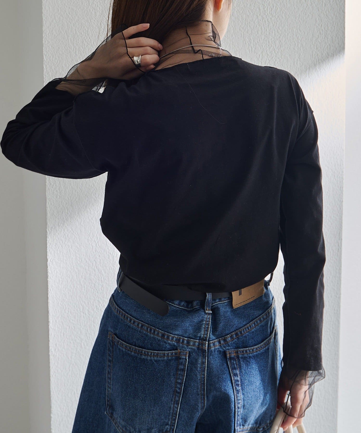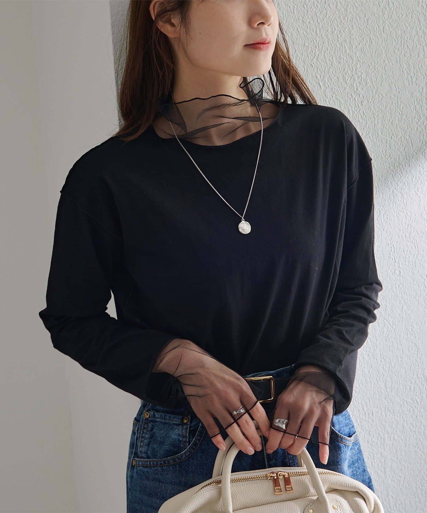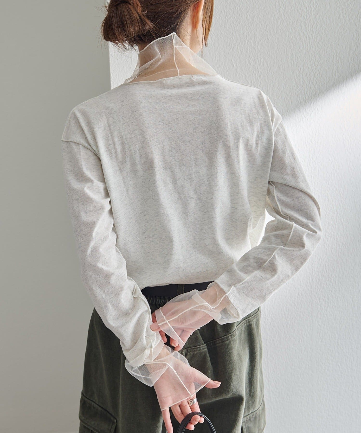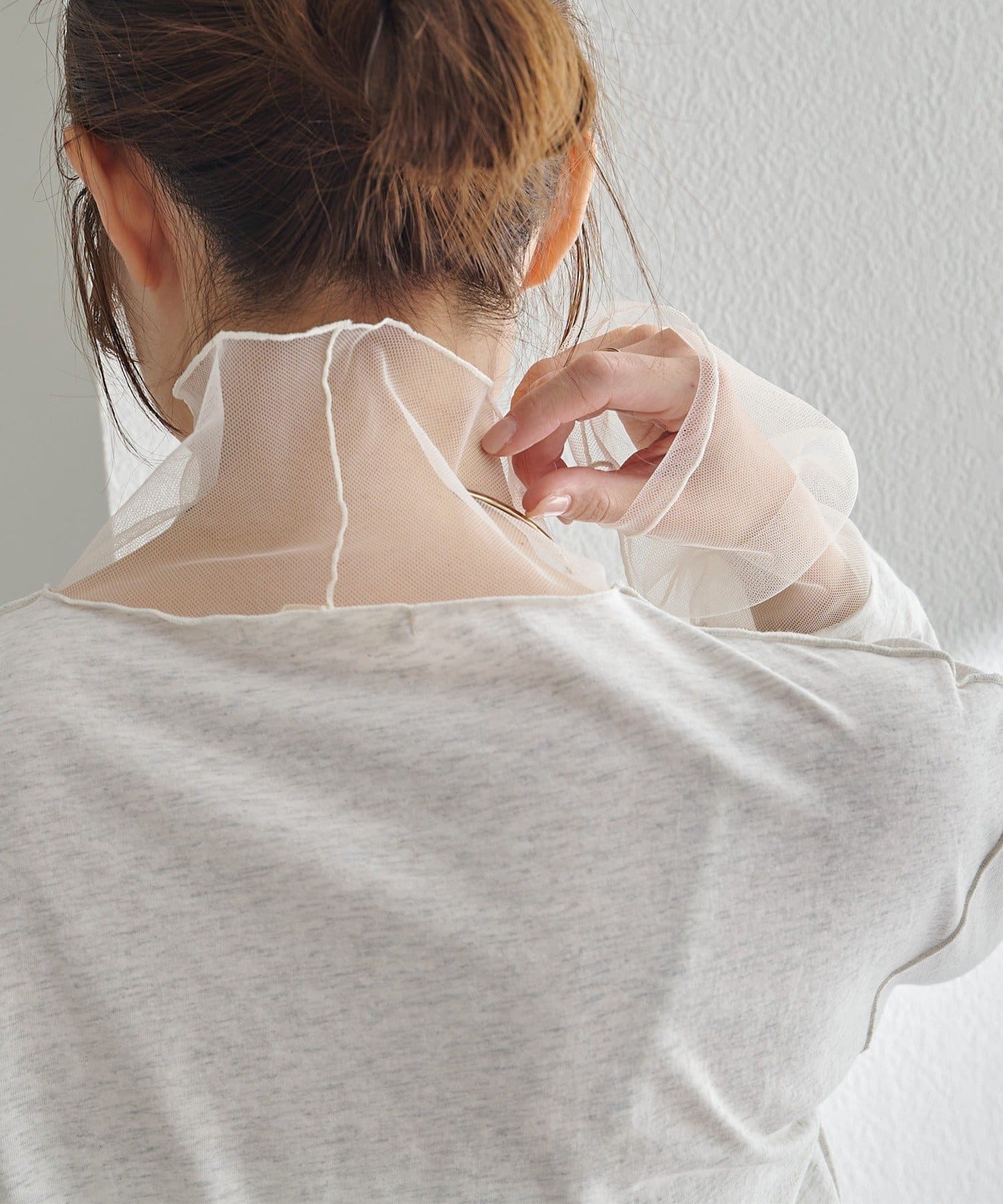 首元・袖は透け感のあるチュール素材。ボディ部分は滑らかなカットソー素材。
