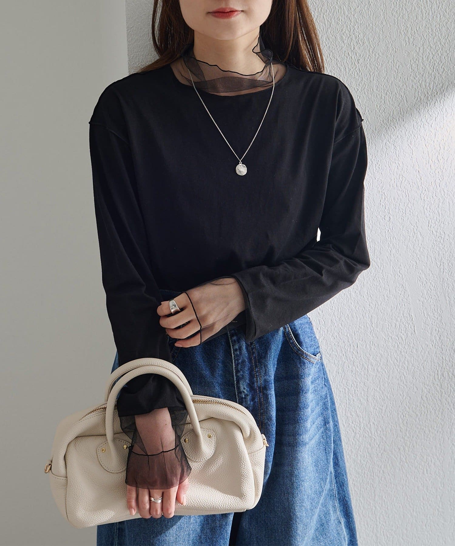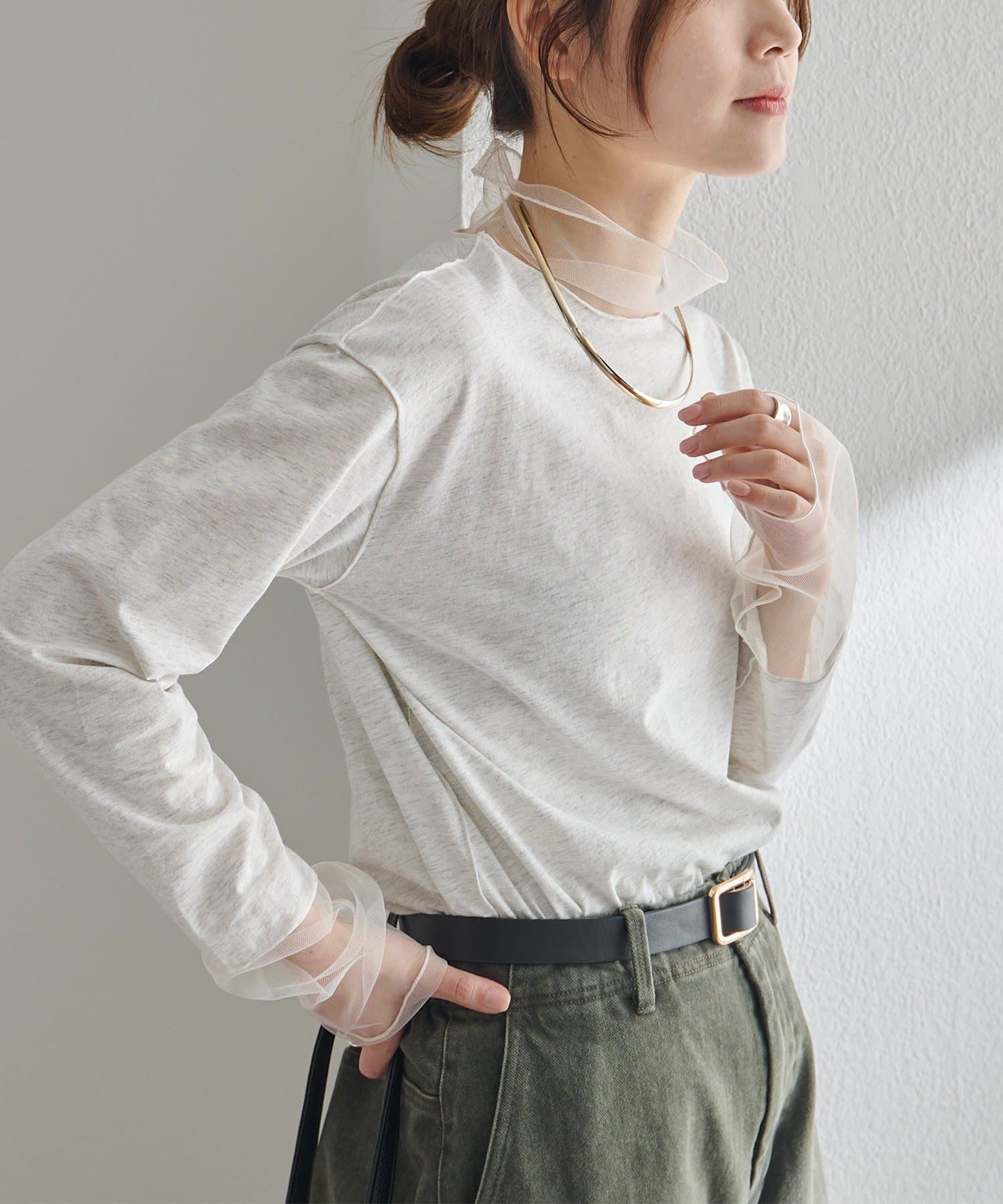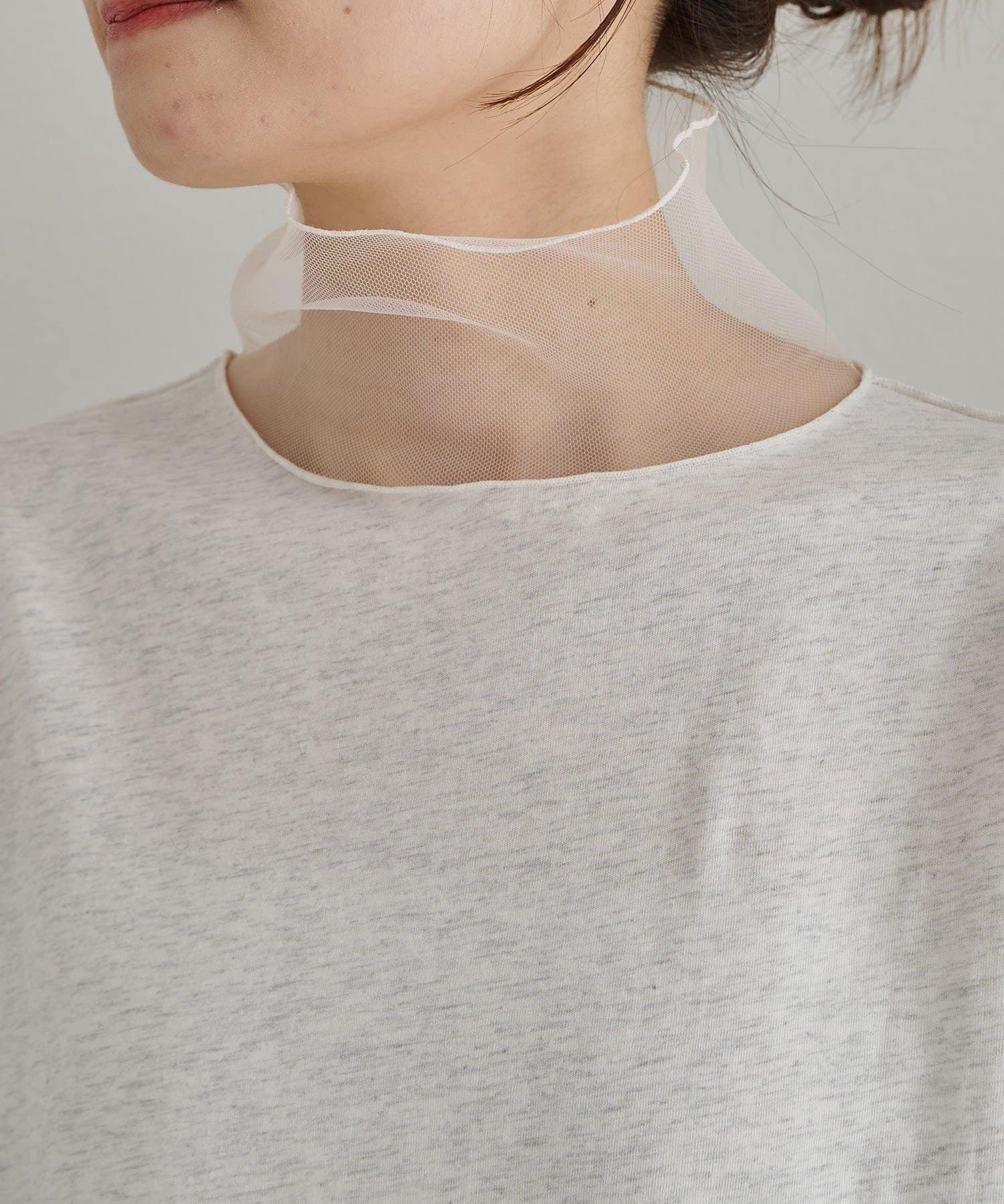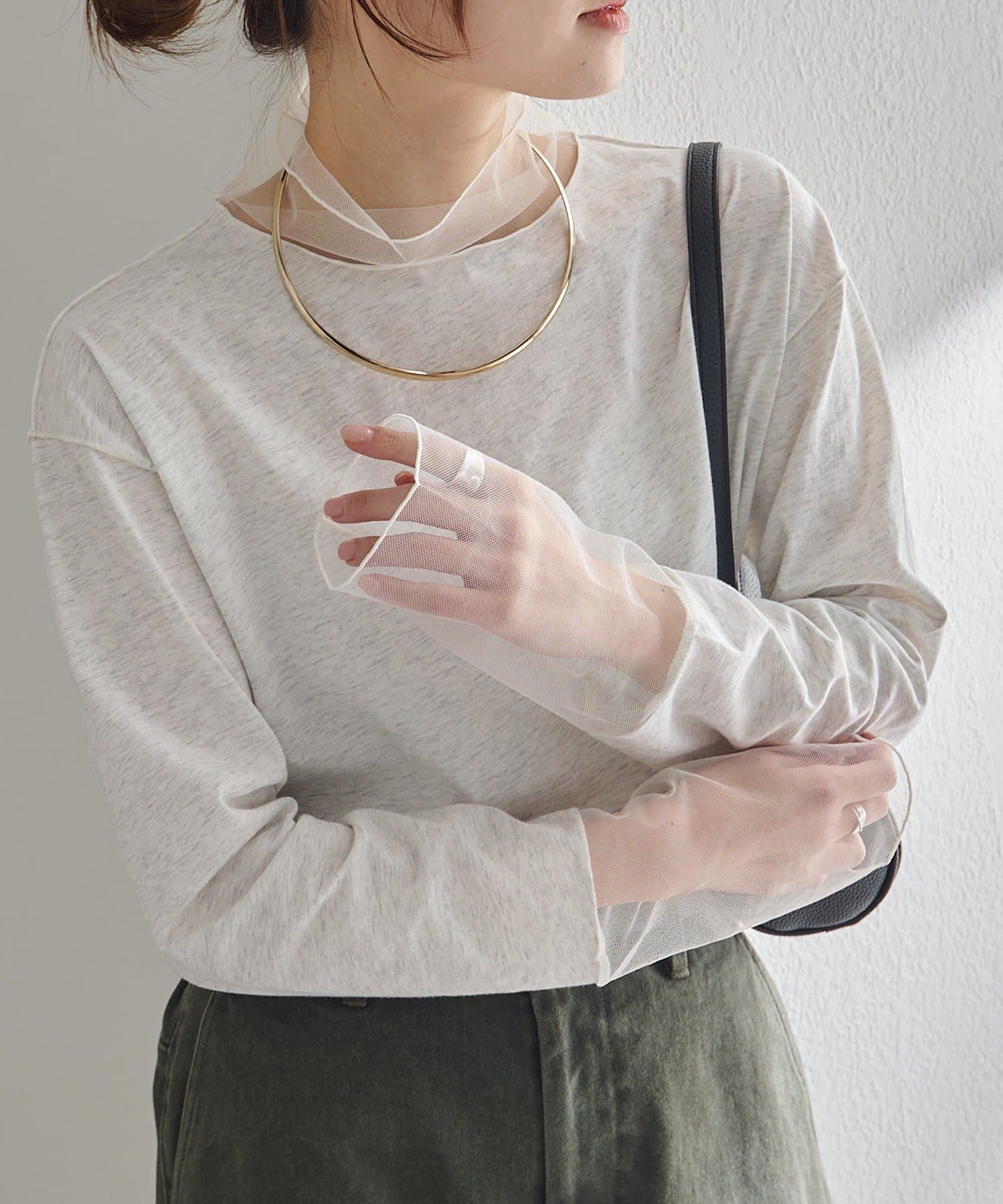 首元・袖は透け感のあるチュール素材。ボディ部分は滑らかなカットソー素材。