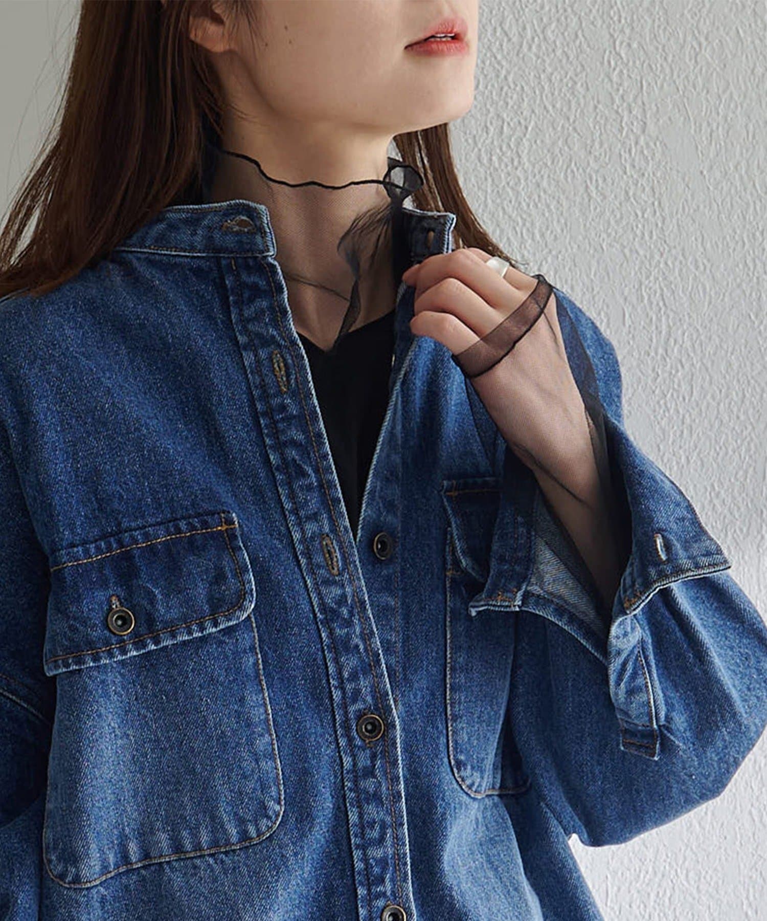 チュールの厚さが絶妙で、首元、袖からちらっと見えてるだけでオシャレ見えします。