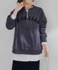 PUAL CE CIN(ピュアルセシン) フロッキープリントハーフジップ裏起毛スウェット