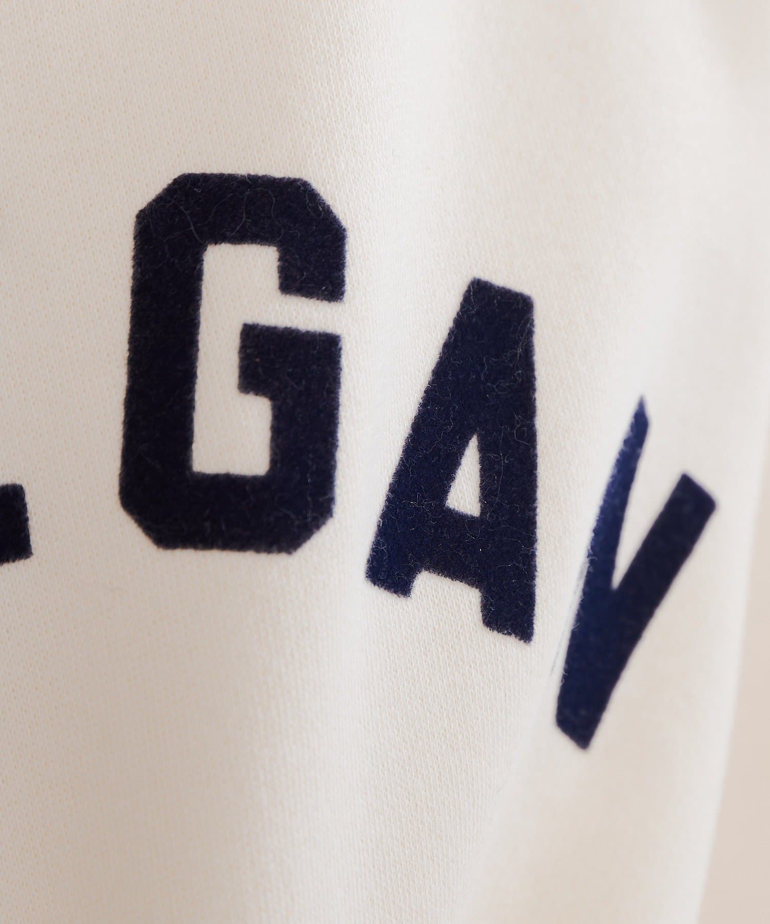 フロッキープリントなのでラフなスウェットアイテムに上品さをプラスします。