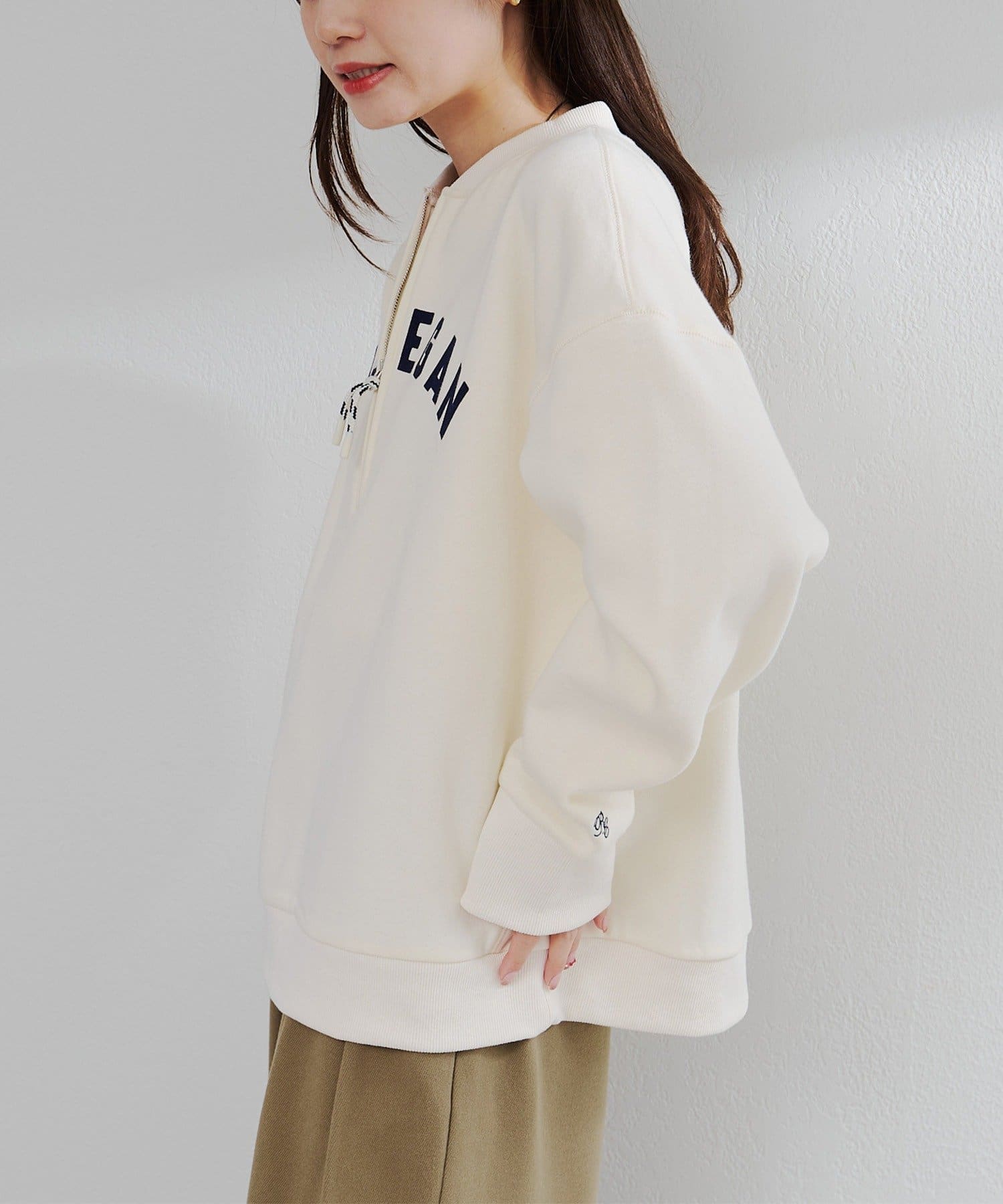 TOP > PUAL CE CIN > レディース > トップス > スウェット/ポンチ > フロッキープリントハーフジップ裏起毛スウェット