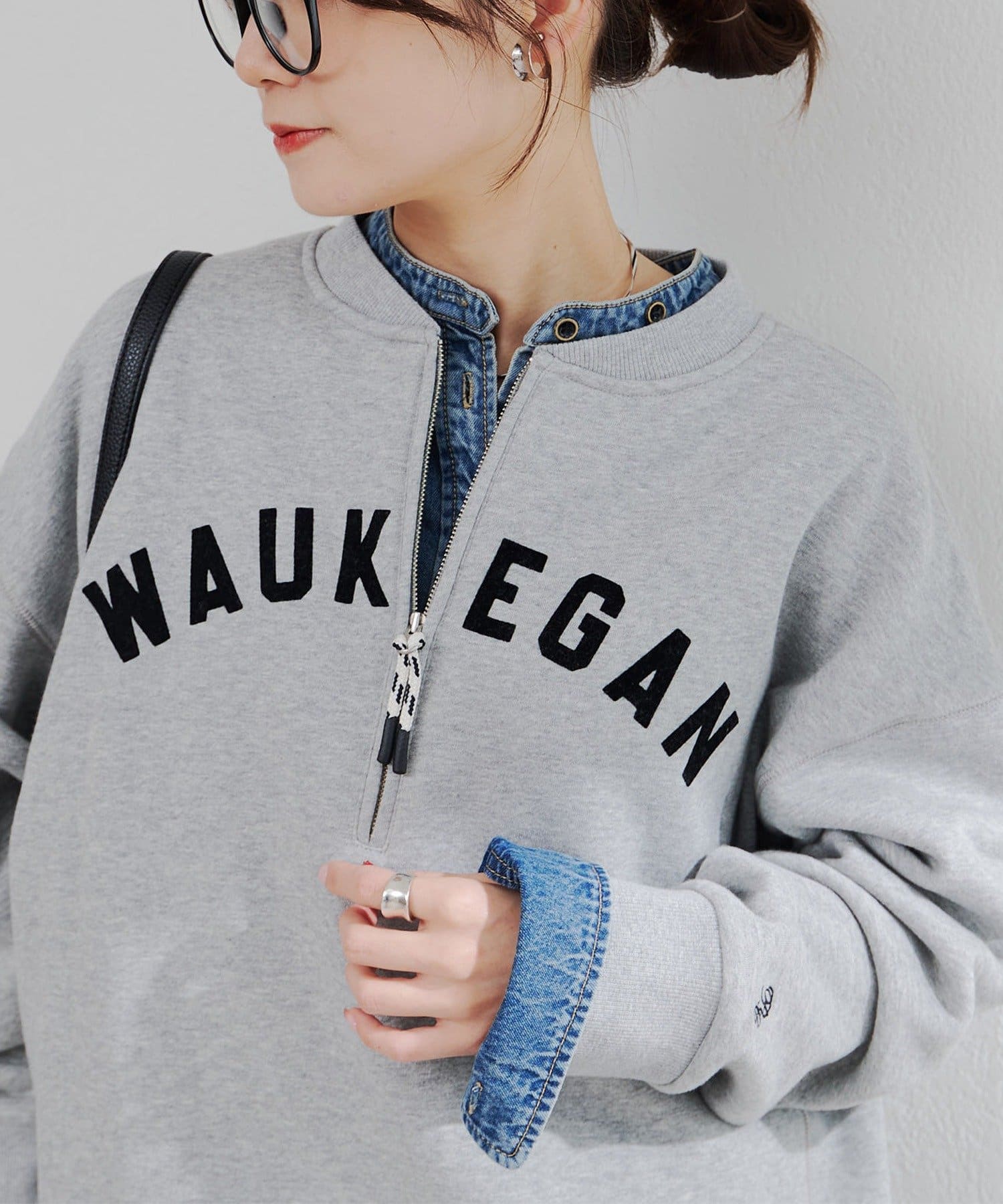 ハーフジップデザイン+やや短めな着丈なので、レイヤードスタイルも簡単にサマになりオススメ。