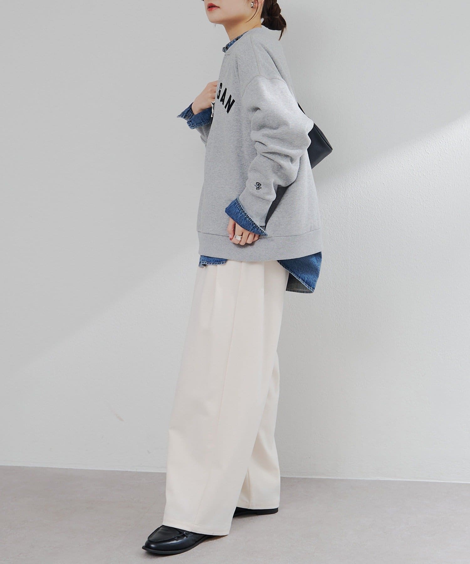 スラックスやロングスカートとのスタイリングは、きれいめ要素をMIXさせた大人カジュアルコーデに仕上がります。