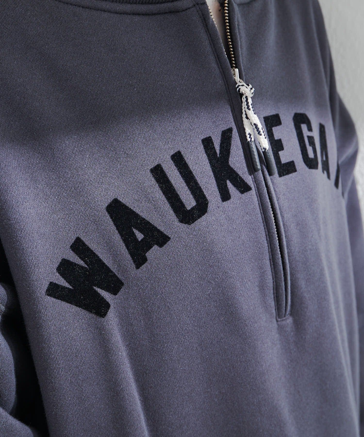 ハーフジップの旬顔スウェットを胸元のフロッキープリントでグレードアップさせた1着。