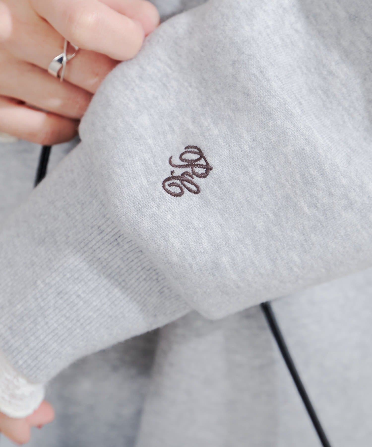 袖にはブランドロゴの刺繍を入れ、シンプルながらもさり気ないアクセントをプラスします。