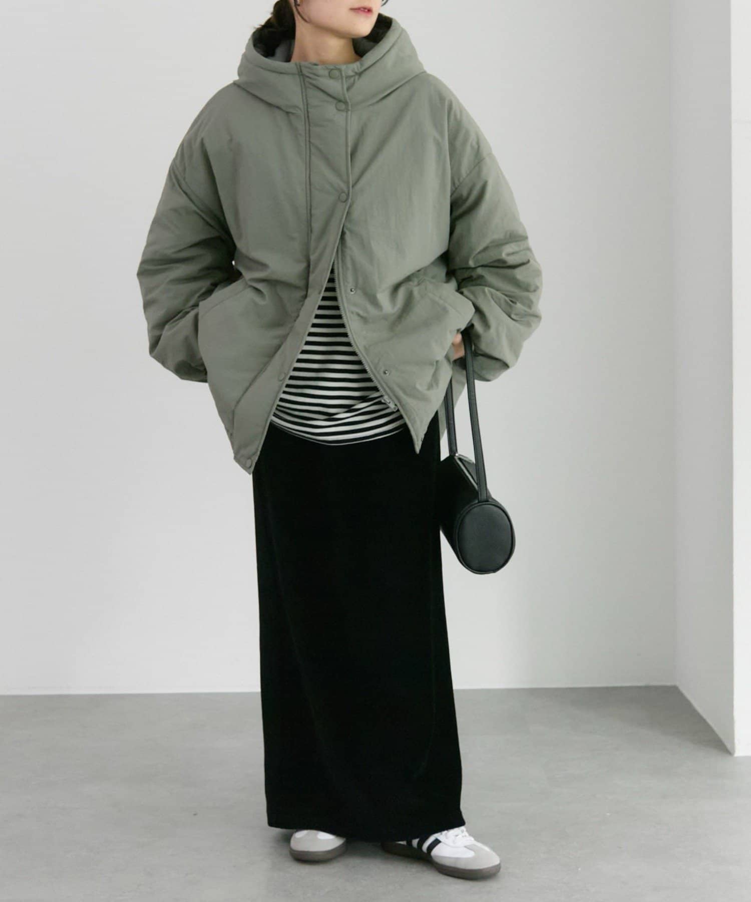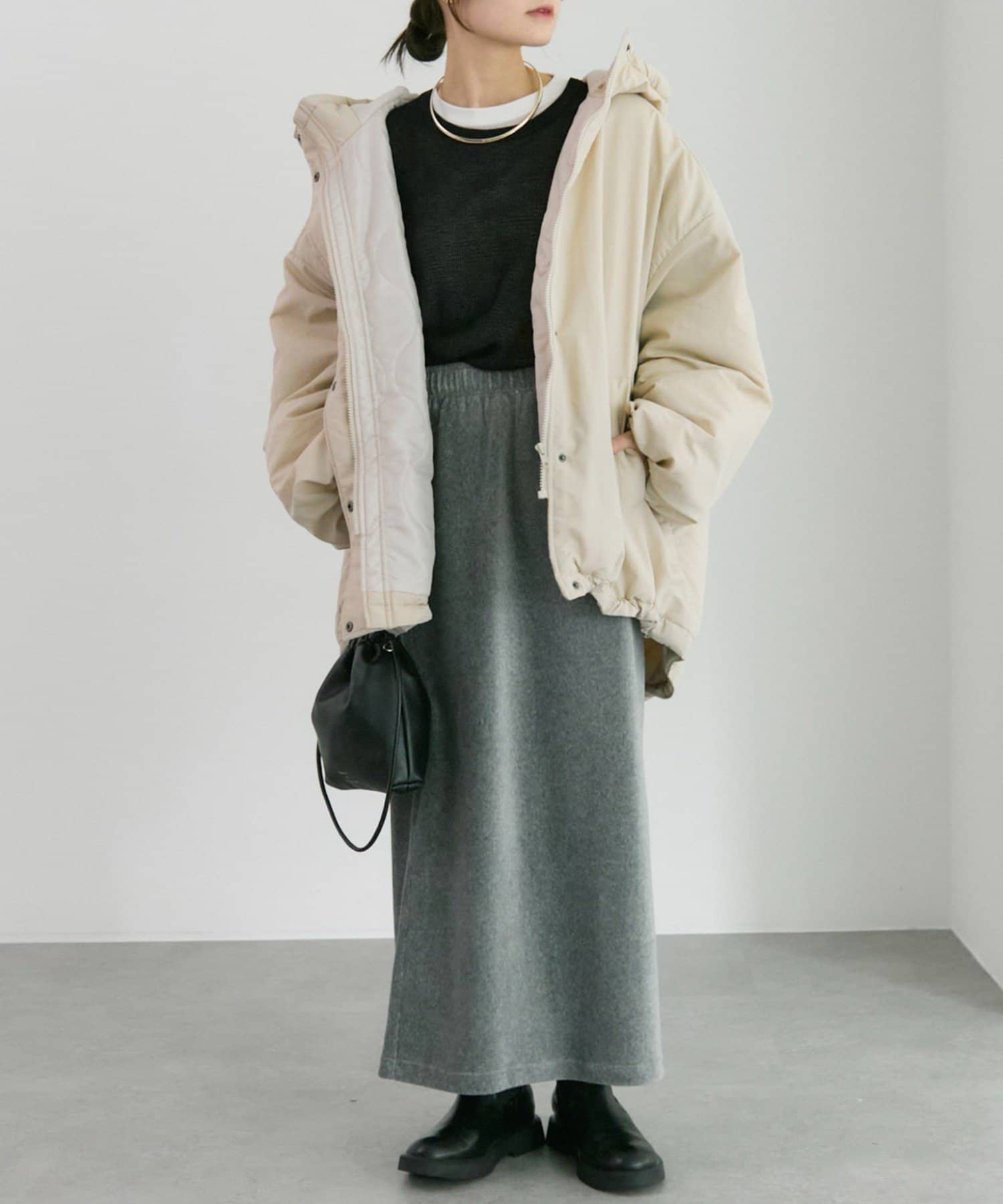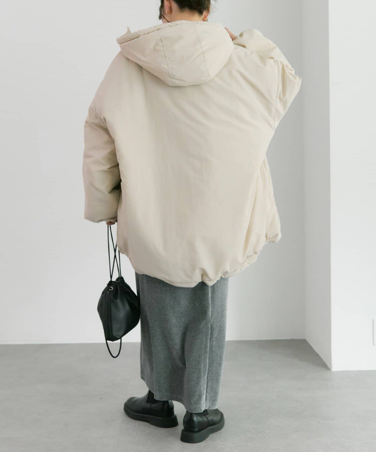 モンスター級のボリューム感が冬の主役アウターとして活躍しつつ、装いにトレンド感をプラスします。